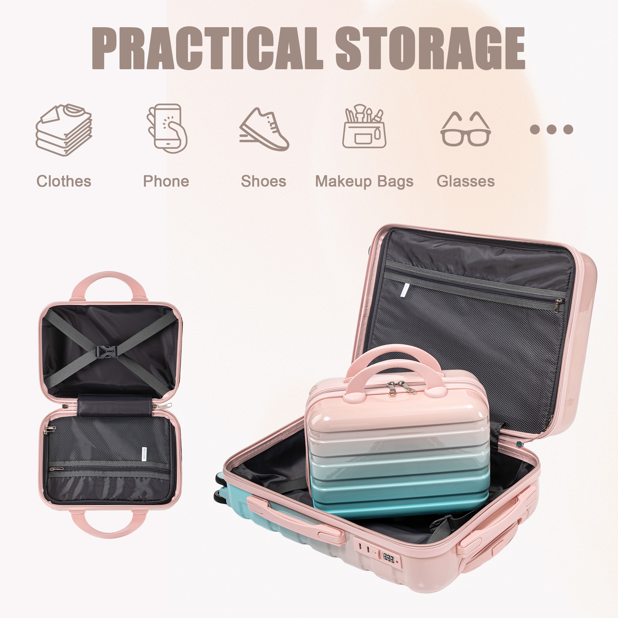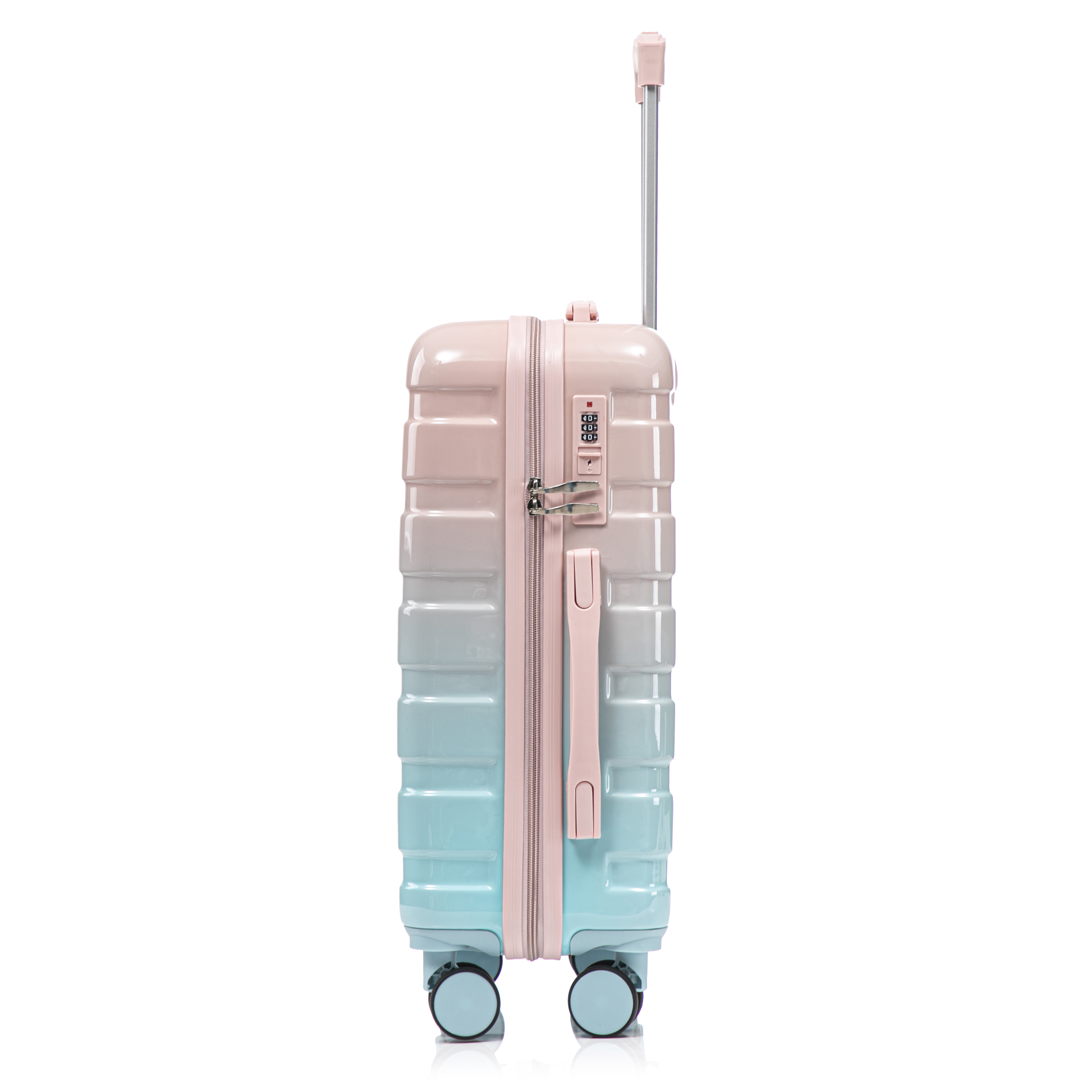 Product Name:14"/20" 2 pcs/set in PC Spinner Wheel Luggage, Carry on Suitcase, With Gradient Color and Combination Lock(Blue+Pink)