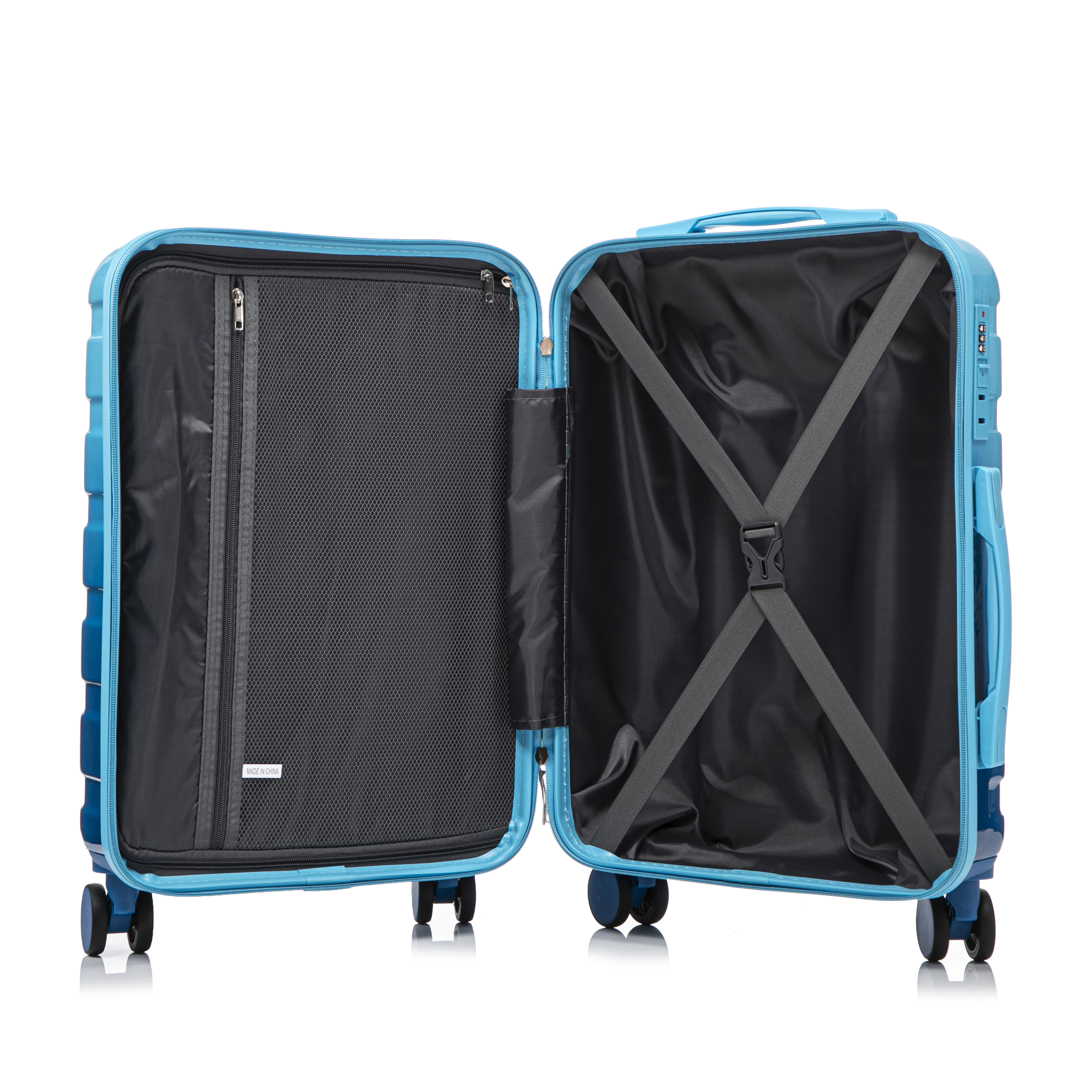 Product Name:14"/20" 2 pcs/set in PC Spinner Wheel Luggage, Carry on Suitcase, With Gradient Color and Combination Lock(Navy+Light Blue)