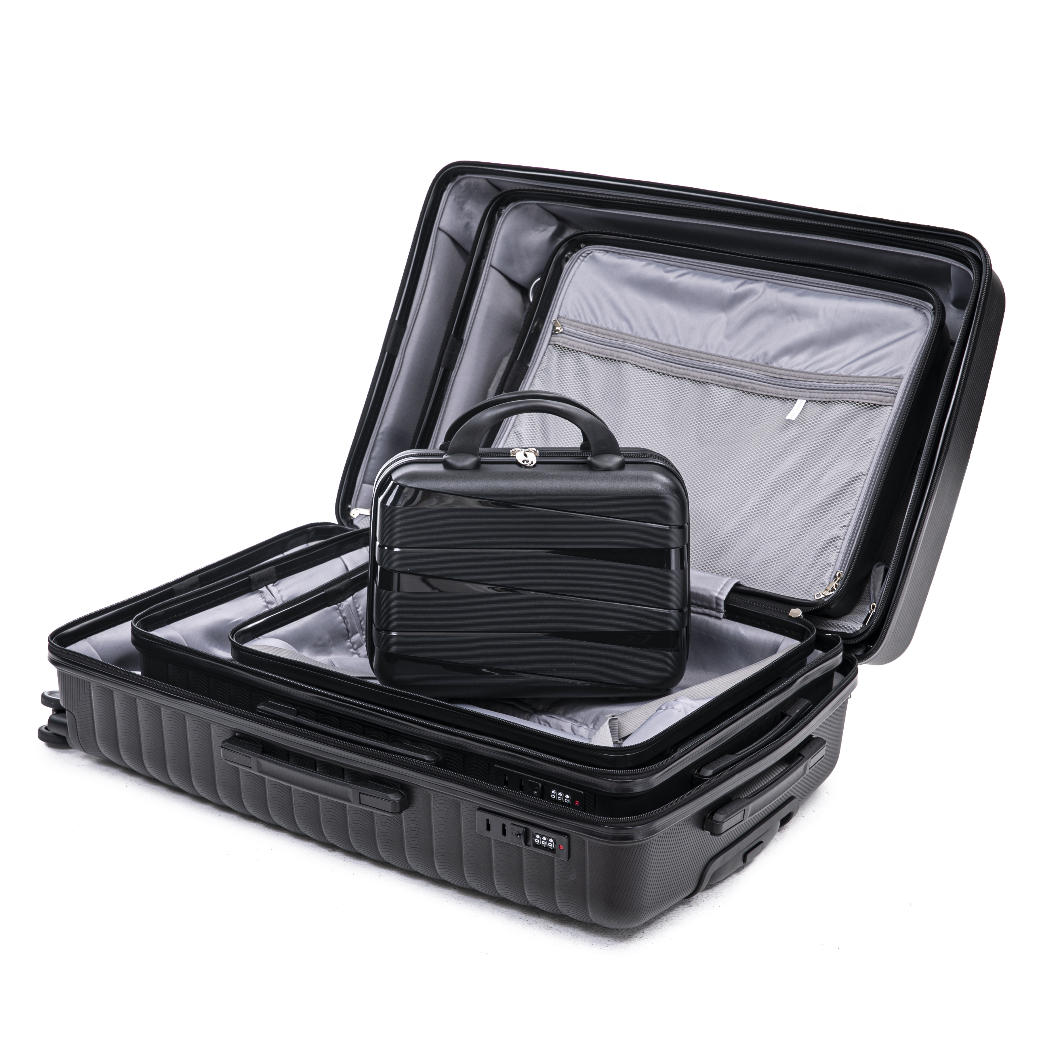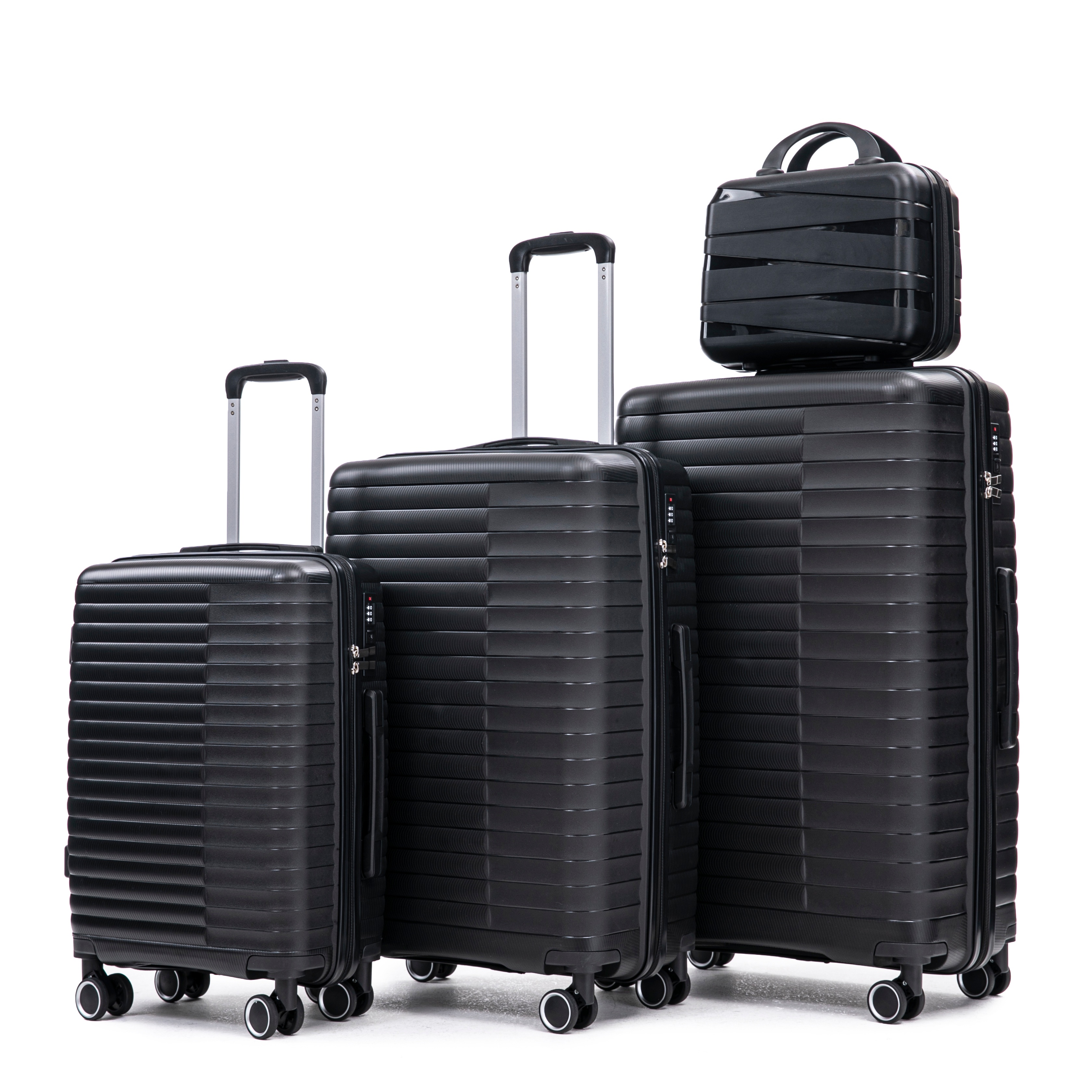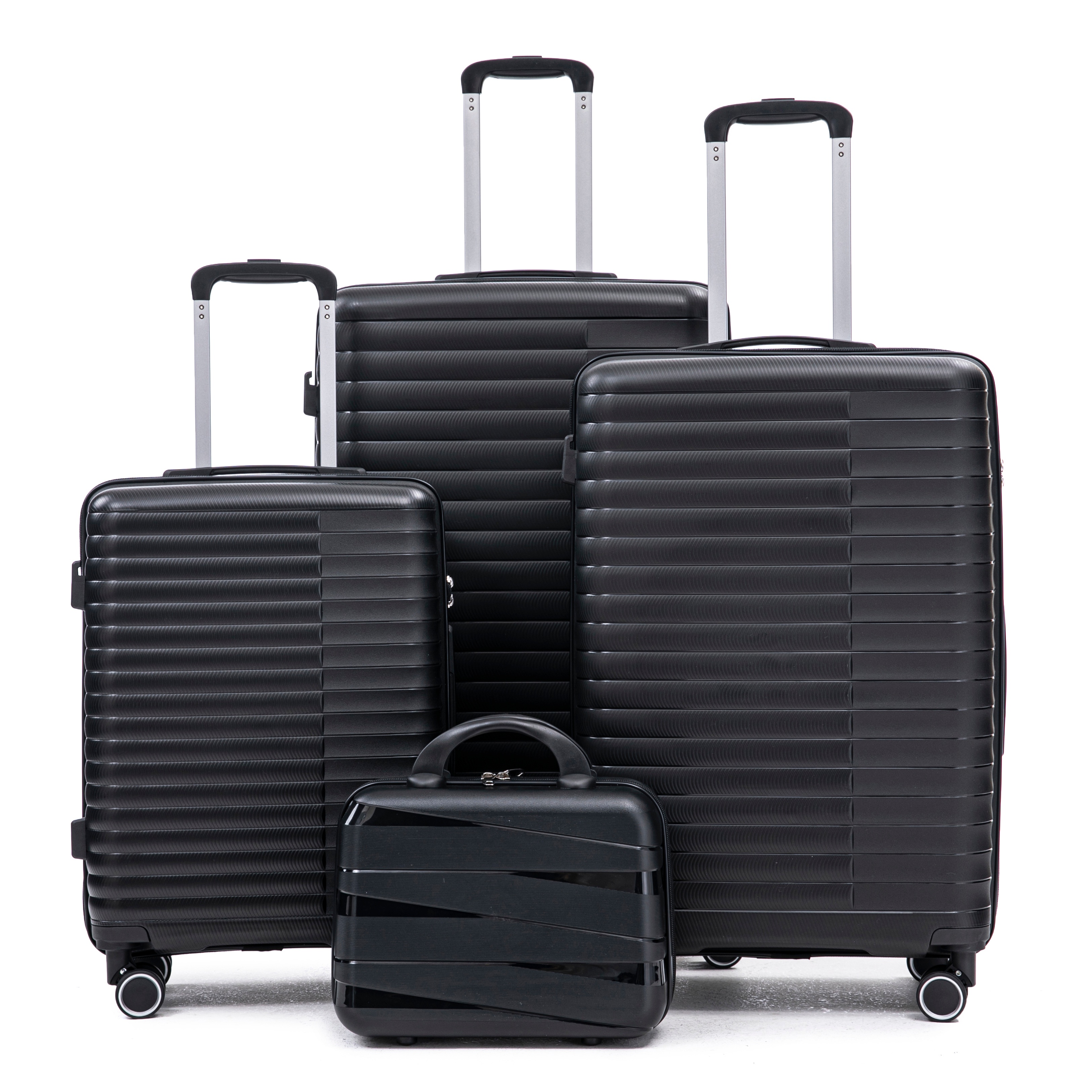 Product Name:14"/20"/24"/28" 4 pcs/set in PP Spinner Wheel Luggage, Carry on Suitcase, Iron Pull Rod, Combination Password Lock, 14" Cosmetic Case (Black)