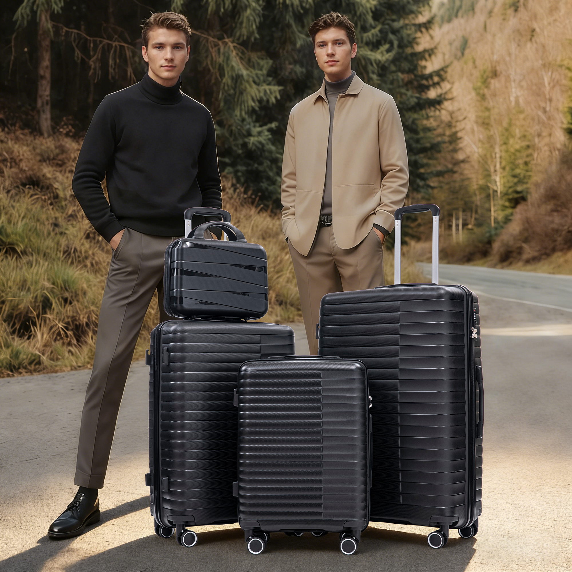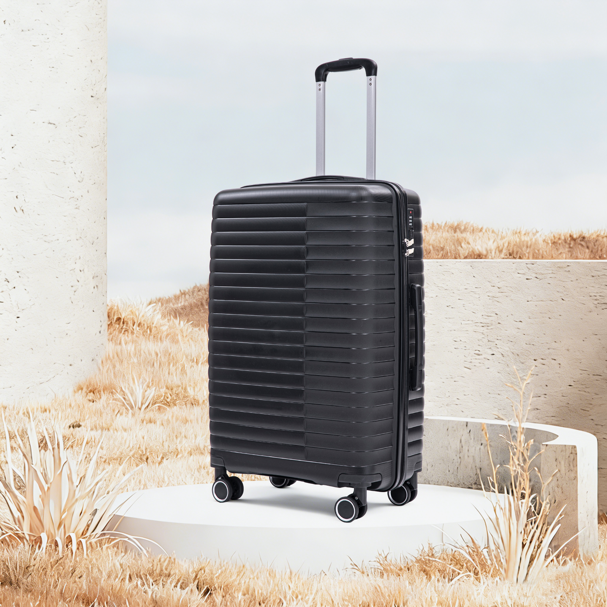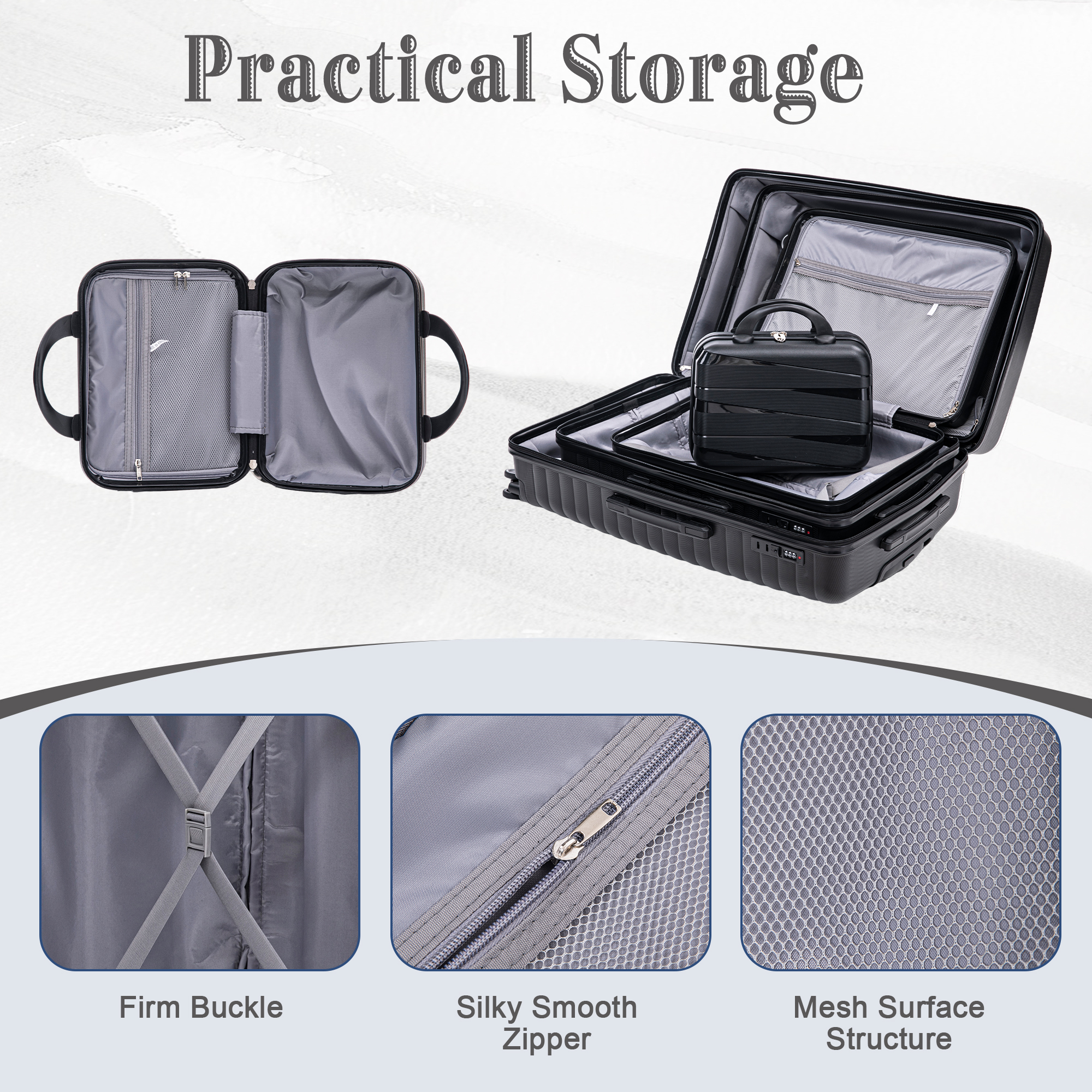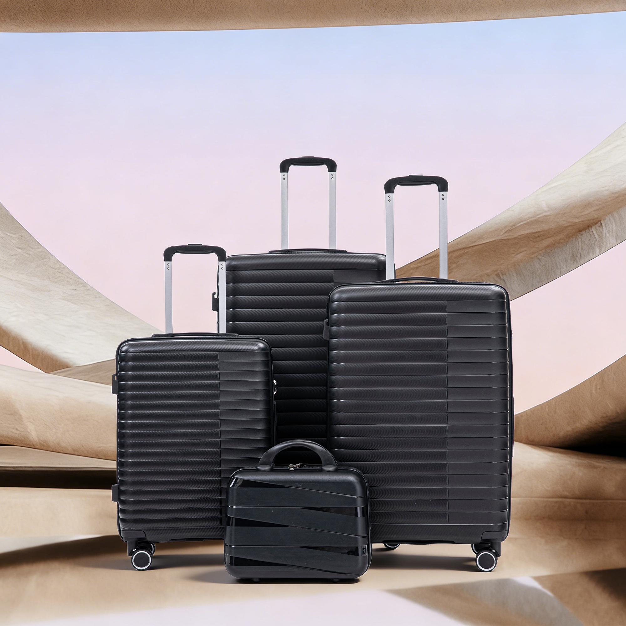Product Name:14"/20"/24"/28" 4 pcs/set in PP Spinner Wheel Luggage, Carry on Suitcase, Iron Pull Rod, Combination Password Lock, 14" Cosmetic Case (Black)
