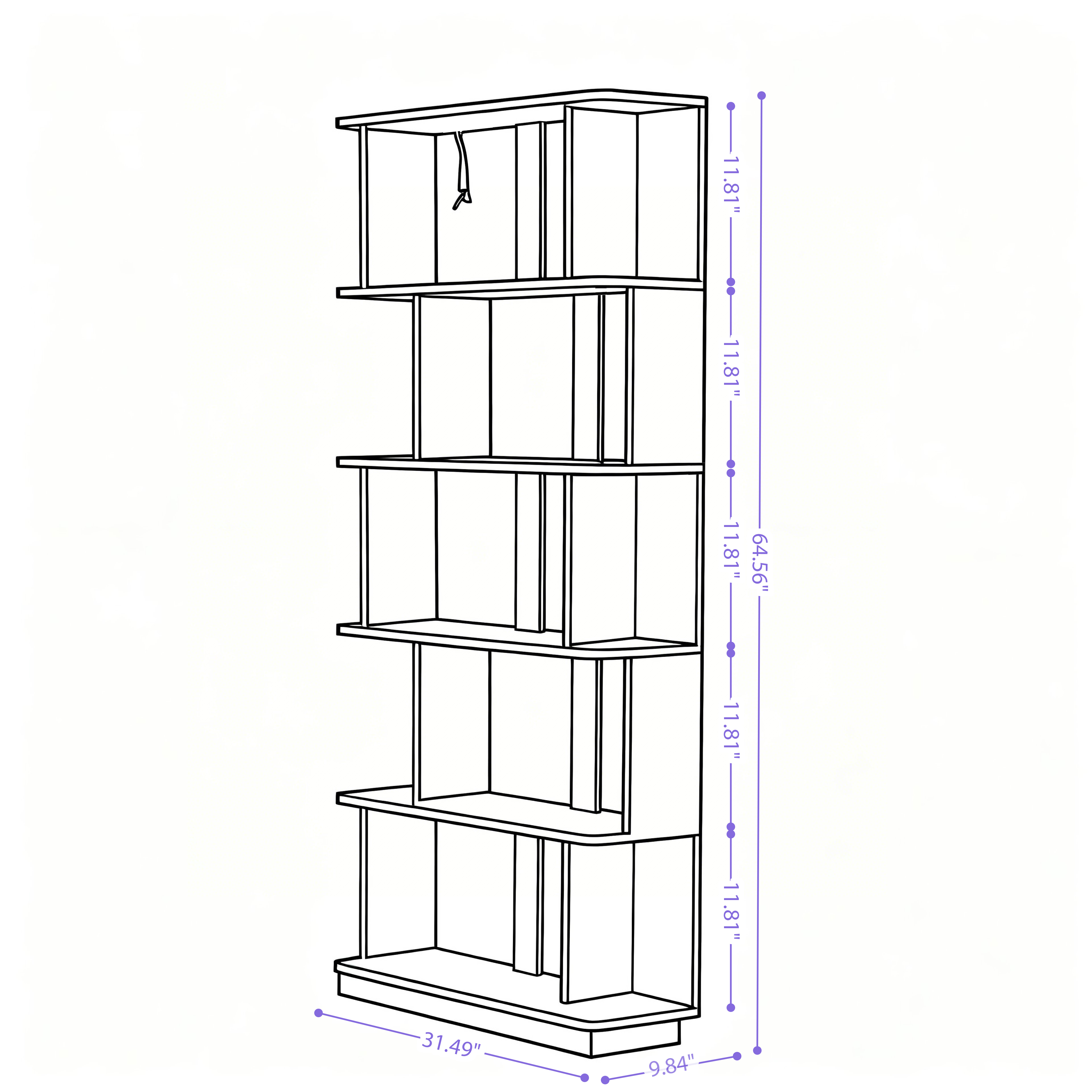 - This modern 5-tier 64.56'' H bookcase is an eye-catching piece of modern furniture that can be coordinated with your other home decorations, offering ample storage and display space. Its vertical design features five shelves crafted from engineered wood, providing a contemporary touch that complements any decor.