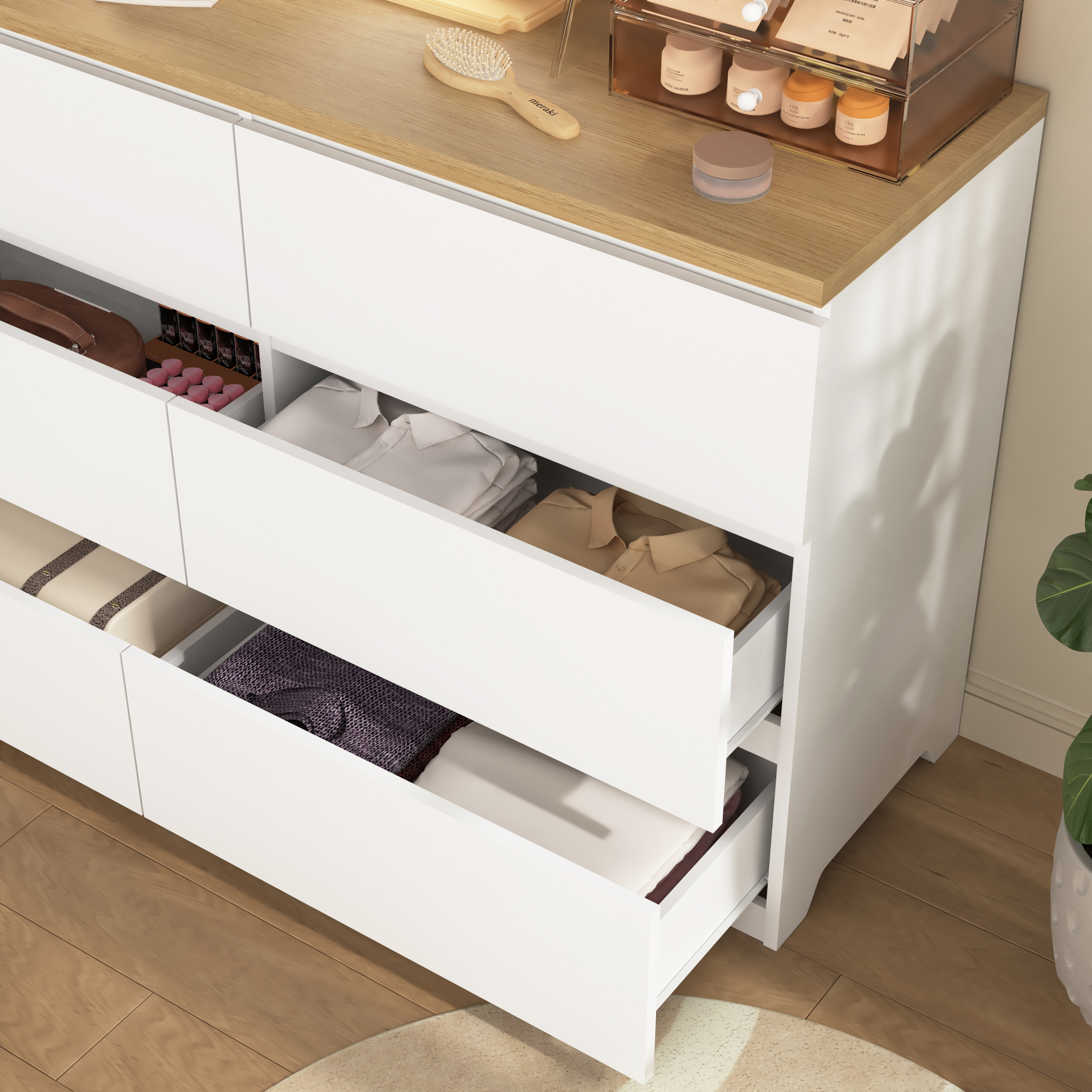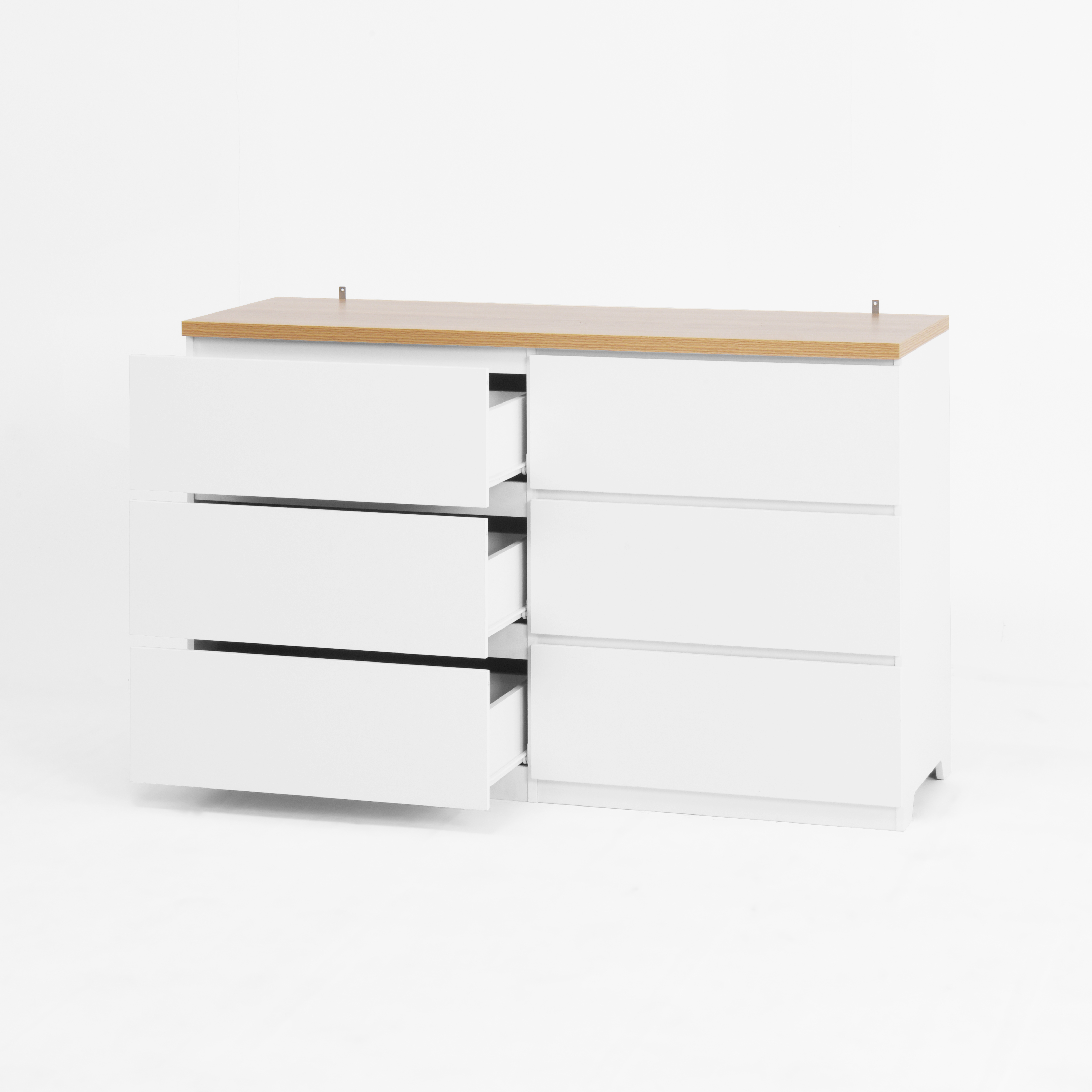 • High Quality and Safety: 6 drawer dresser has a unique base design that makes it very sturdy. Made of high-quality particle board,The handless design gives this locker a simple, atmospheric look. Satisfy your pursuit of quality and safety.