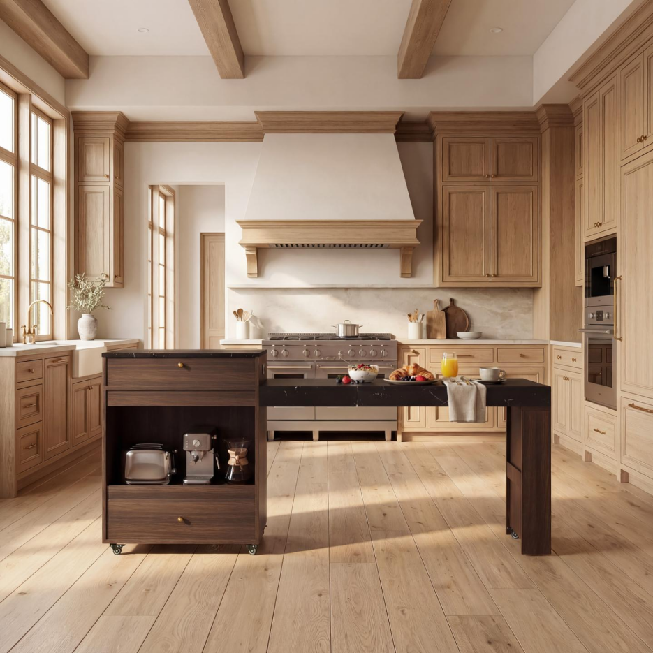 • 6.【PREMIUM SOFT-CLOSE HINGES AND METAL HARDWARE ON ROLLING KITCHEN ISLAND】