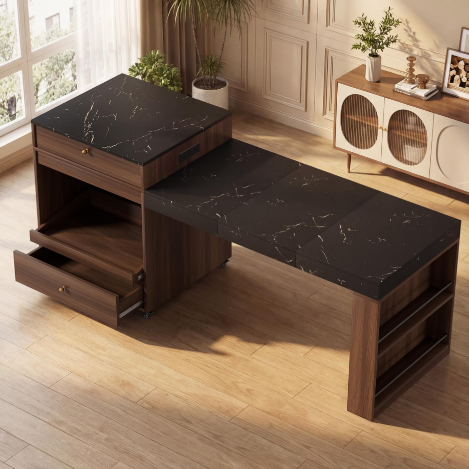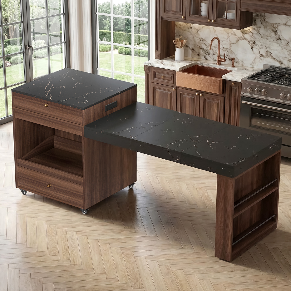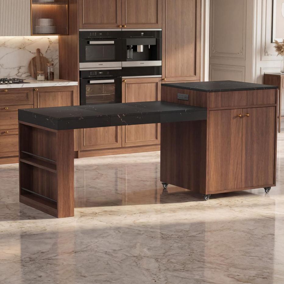 Product Name:78.8'' Rolling Kitchen Island with 3-Stage Extendable Dining Table (Seats 6-8),Built-in Power Outlet, Ample Storage Drawers & Cabinets,Mobile on Wheels - High-Density MDF,Easy Assembly(Walnut)