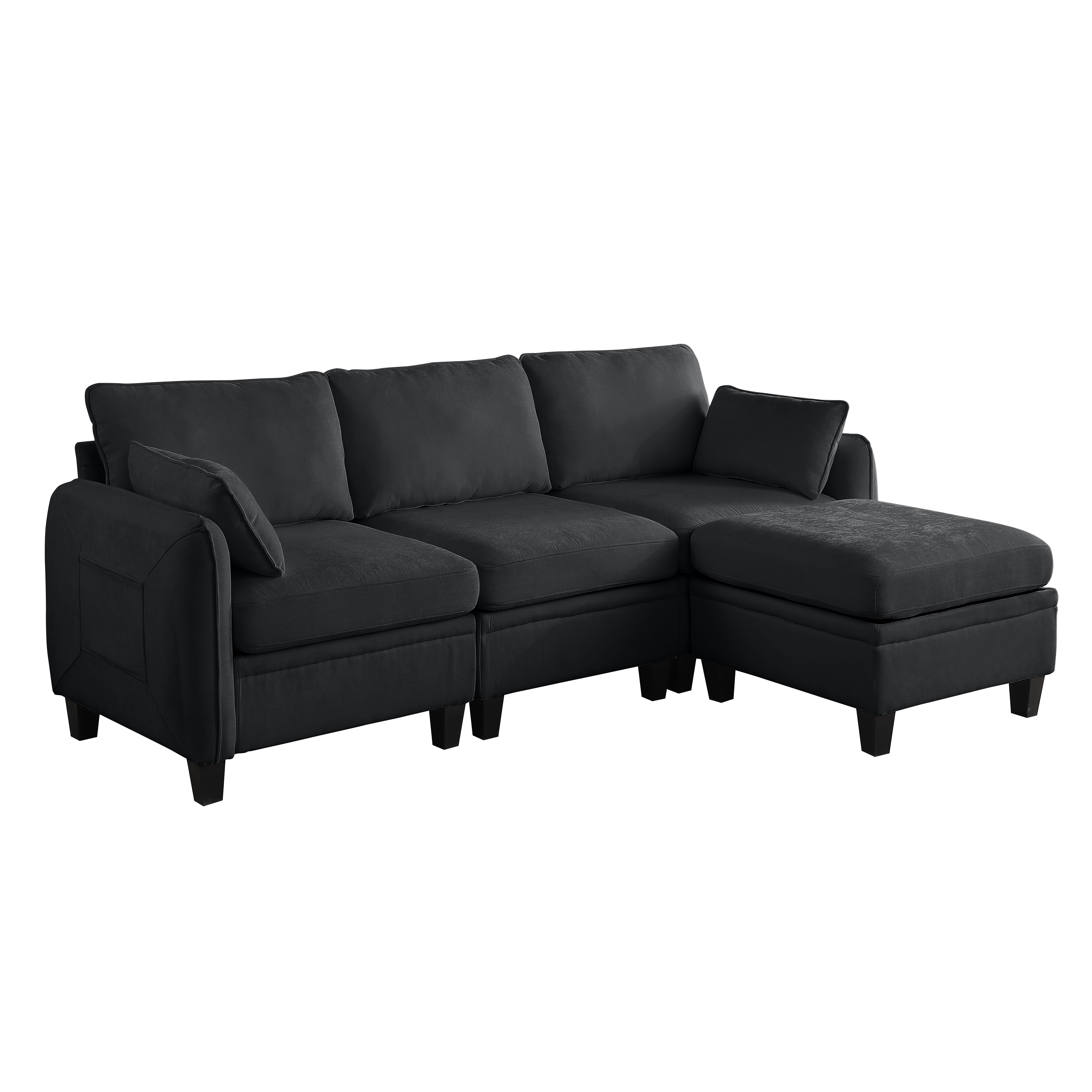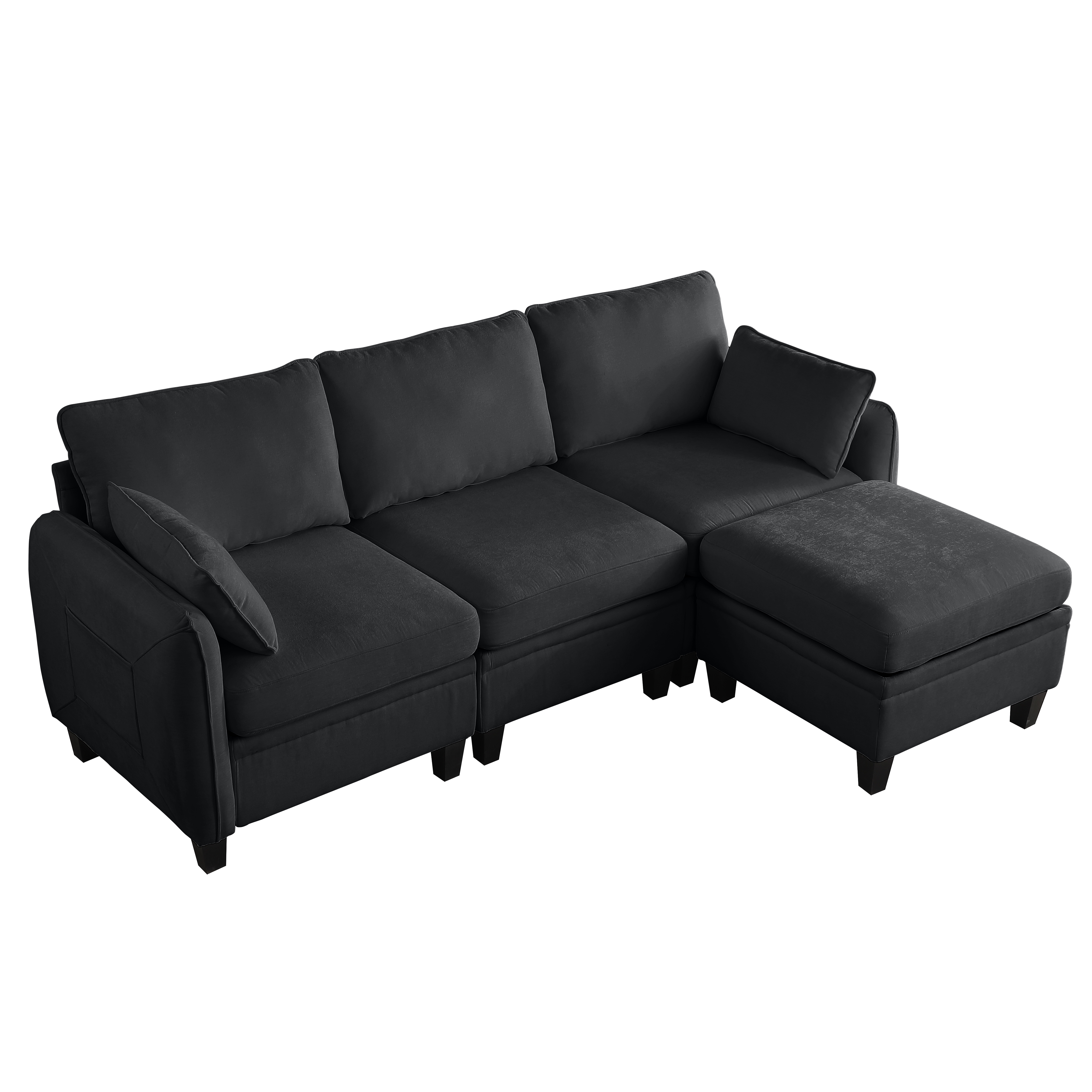 Product Name:85 Inch BLACK Chenille Modular Sectional Sofa, L-Shaped Cloud Couch with Storage Ottoman, DIY Combination for Living Room
