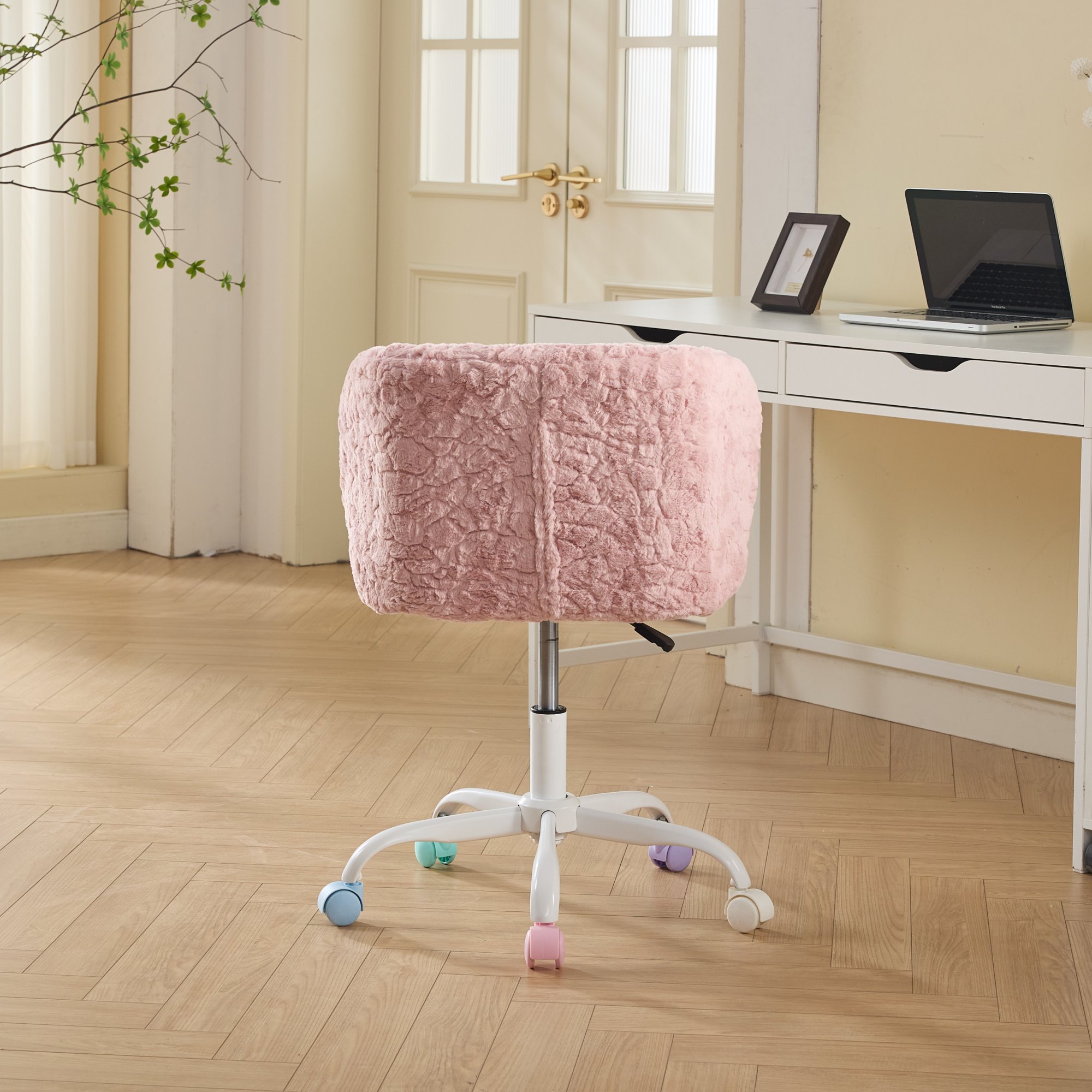 Product Name:A&A Furniture Office Chair,Artificial rabbit hair Home Office Chair with Metal Base,Adjustable Desk Chair Swivel Office Chair,Vanity Chair(Pink)