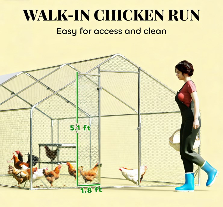 • - Spacious Living Area: This chicken coop run offers a generous 194 sq. ft. area, suitable for accommodating 18-24 chickens, ensuring they have ample space to roam and stay active