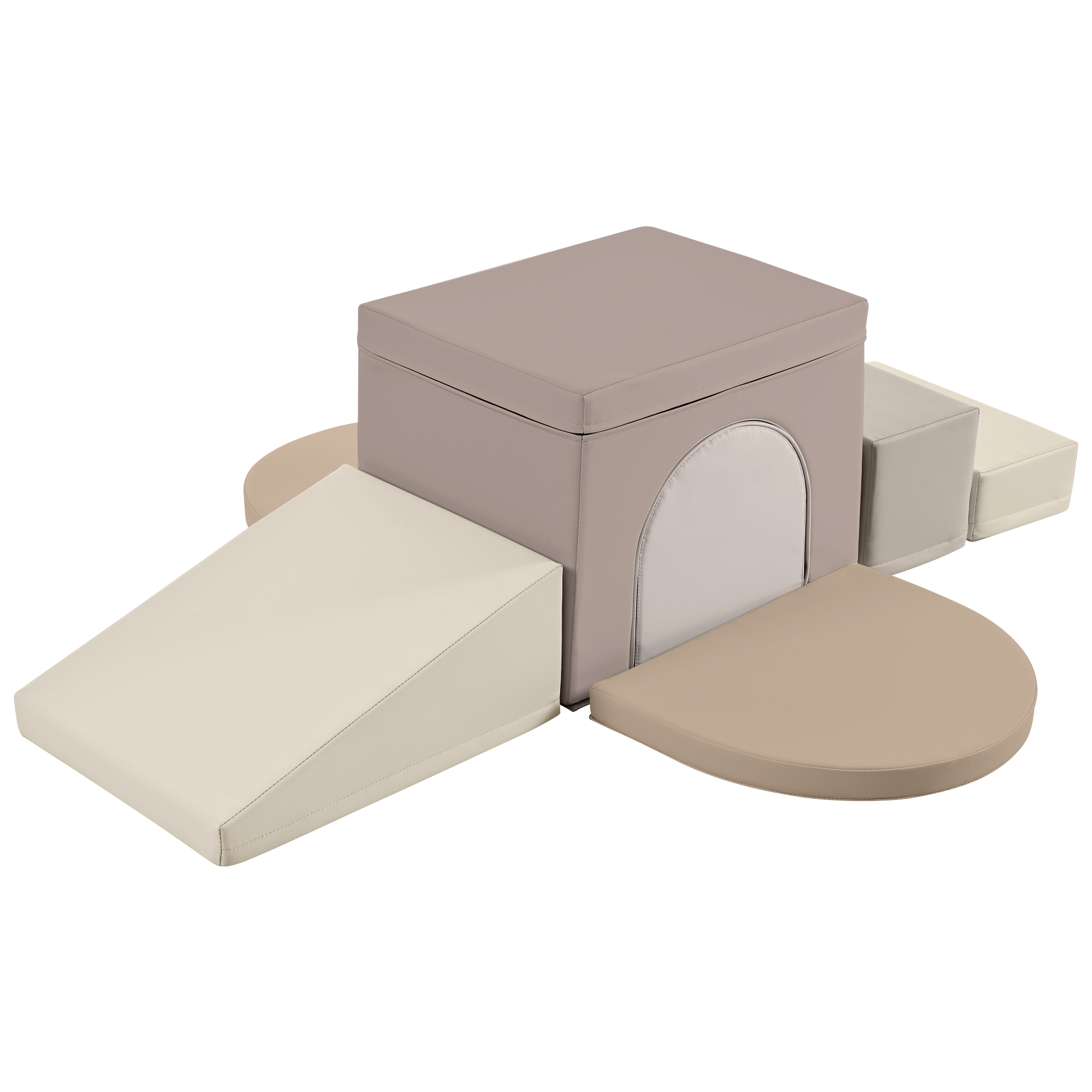 • [Complete Set]This crawling toy set consists of two pink tongue pads, two rectangular modules, a square arch hole, a climbing ramp and a half cylinder. The set comes with complete game and exercise options, so children can rearrange and set them freely.