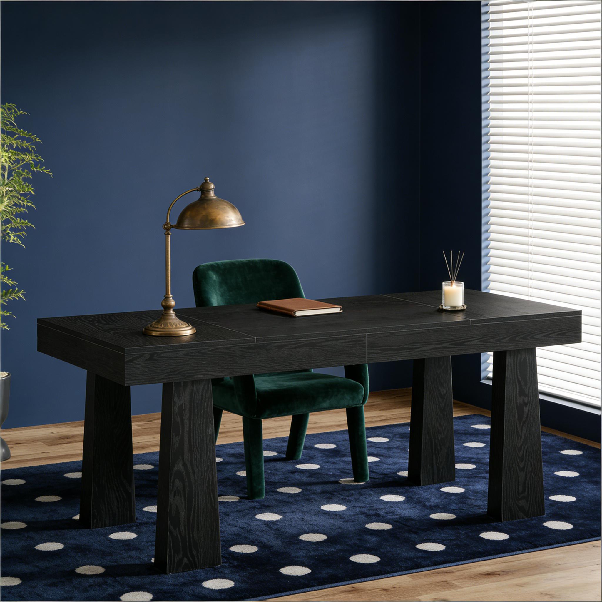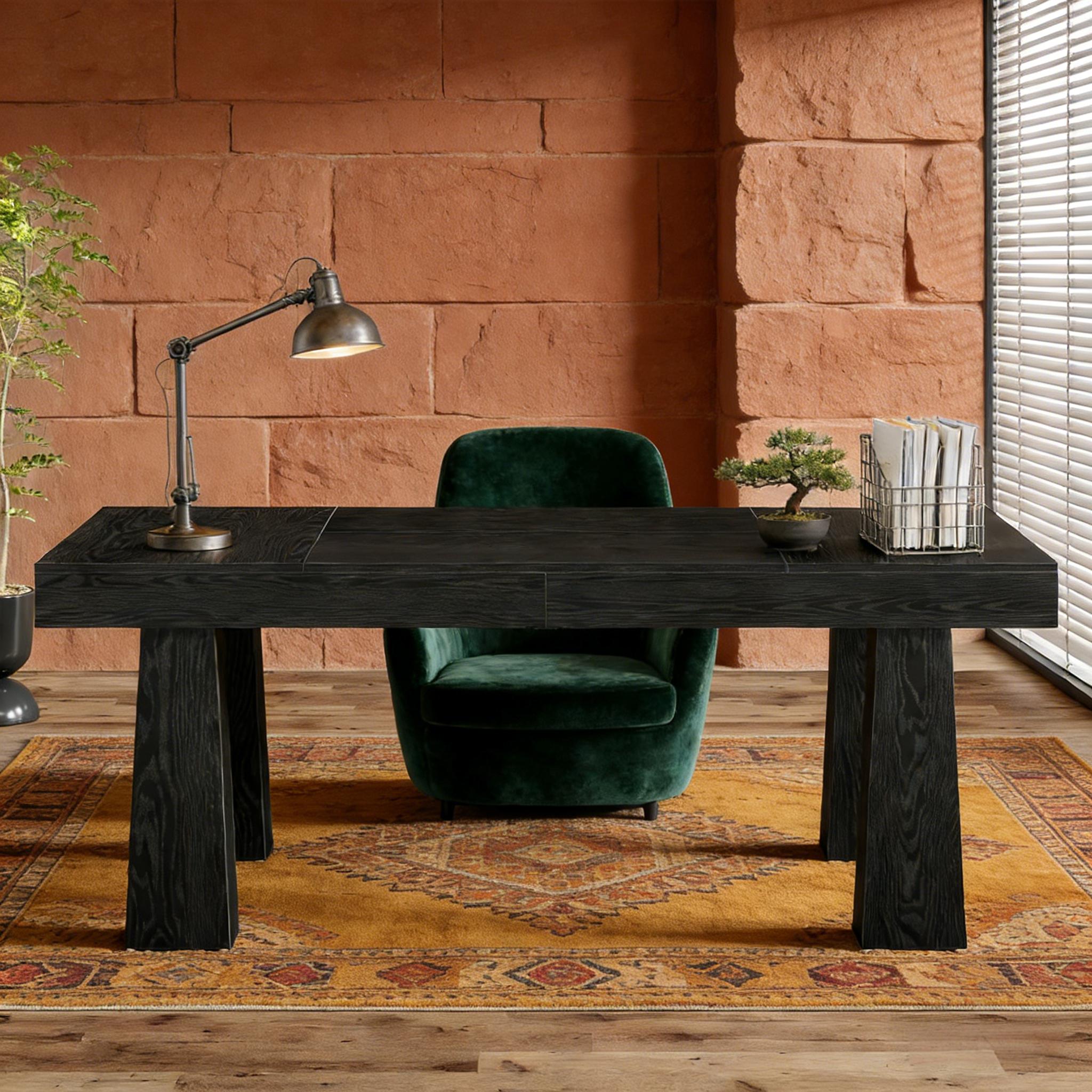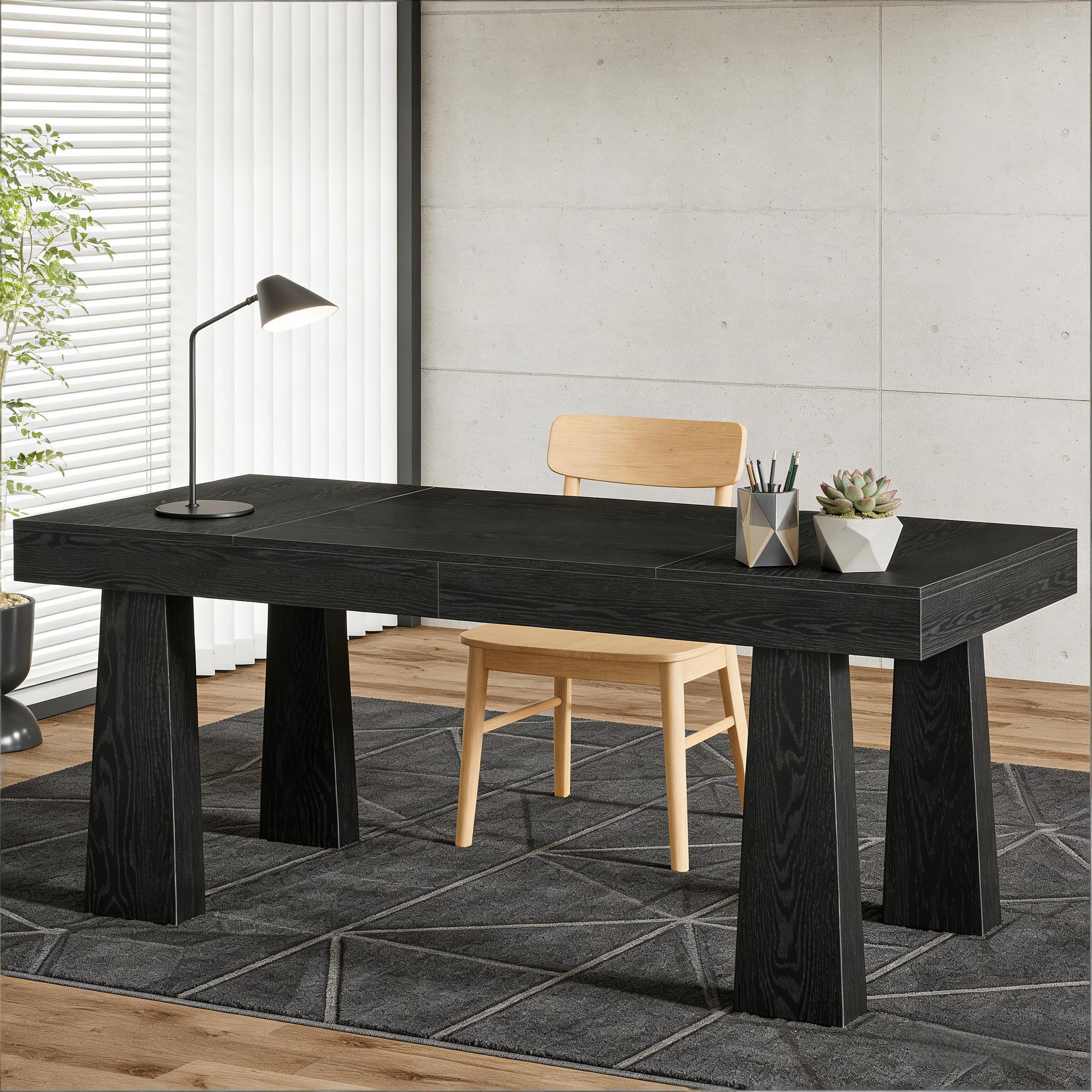 Important Reminder!!! 1) Attention: All products in our store do not support Canada self pickup ordering. Please do not create shipping labels for Canada. Our American products do not support self pickup to Canada 2)We do not ship to Alaska, Hawaii, US protectorates (e.g., Puerto Rico), P.O. boxes, or APO/FPO addresse 3)We don’t accept non-defective remorse returns Generous 63-Inch Workspace - Designed for professionals and multitaskers, this executive desk provides a spacious 63" W x 31.5" D surface, ideal for dual monitors, paperwork, or collaborative projects. Whether used as a two-person desk or a home office workstation, it delivers both functionality and sleek modern-industrial style. Rock-Solid Construction - Built with four reinforced tapered legs and a thick 4.53-inch MDF desktop, this office desk supports up to 300 lbs without wobbling or sagging. Its heavy-duty design ensures stability for all your work essentials. Sleek Industrial Style - The clean black finish and minimalist lines blend mid-century modern charm with contemporary appeal. Perfect for offices, studios, or even gaming setups, this desk elevates any space into a professional and stylish hub. Flexible Placement Options - Compact yet spacious, this 63-inch desk fits effortlessly in small apartments or large offices. Use it as a study table, home workstation, or even a farmhouse-inspired computer desk—versatility meets modern design. Quick and Easy Setup - Includes clear step-by-step instructions and pre-drilled holes for fast assembly. Designed for a hassle-free experience so you can start working right away, without struggling with complicated tools.