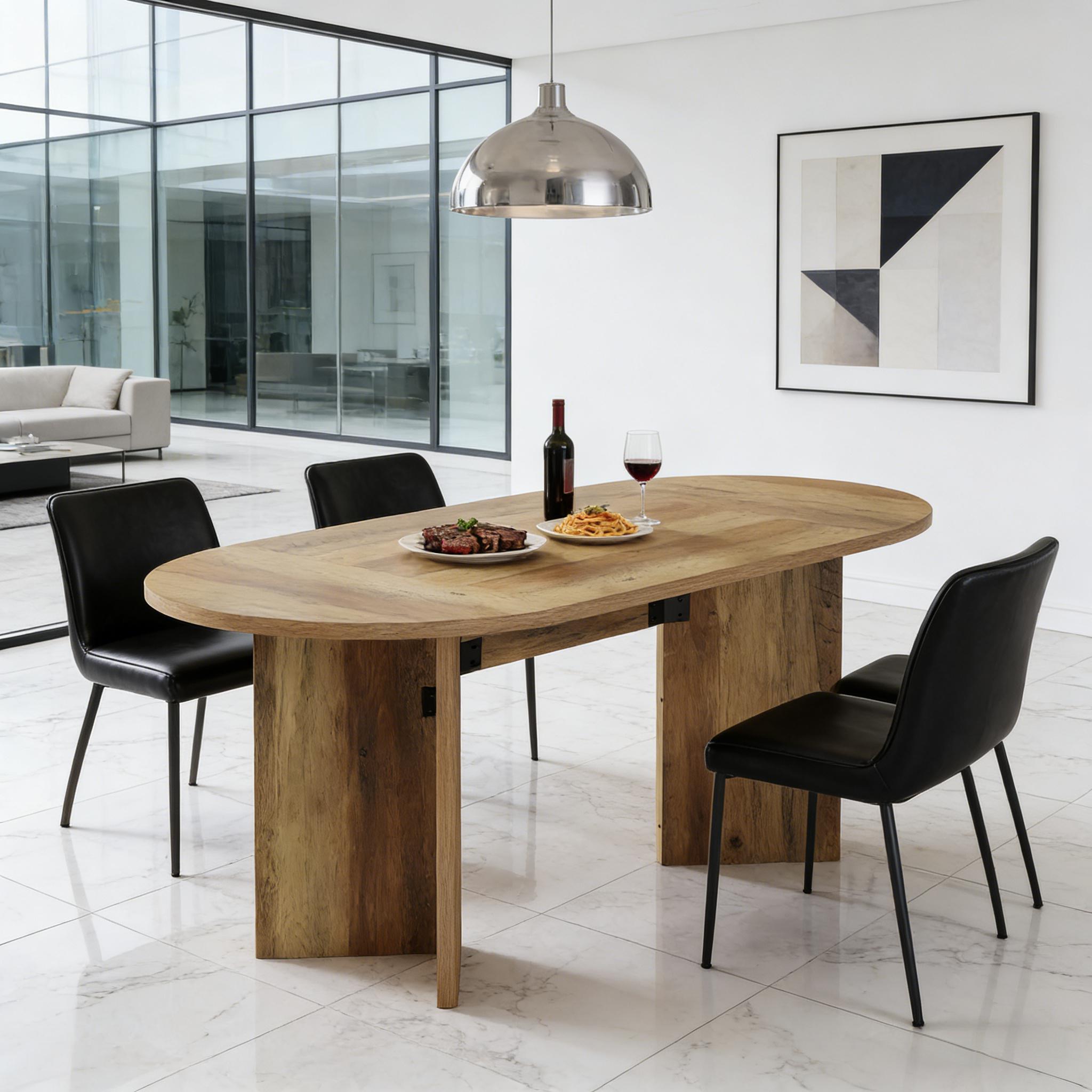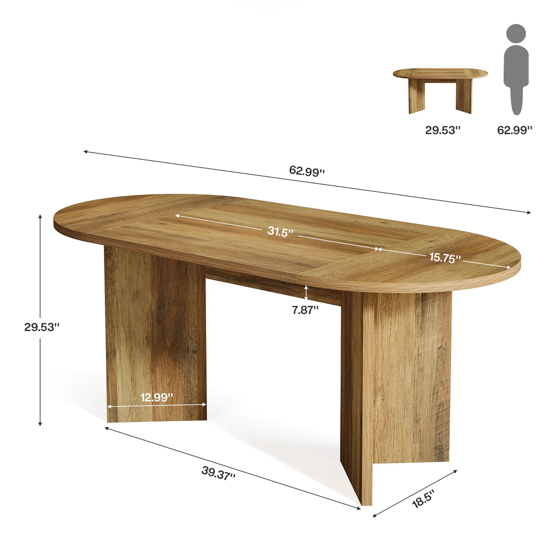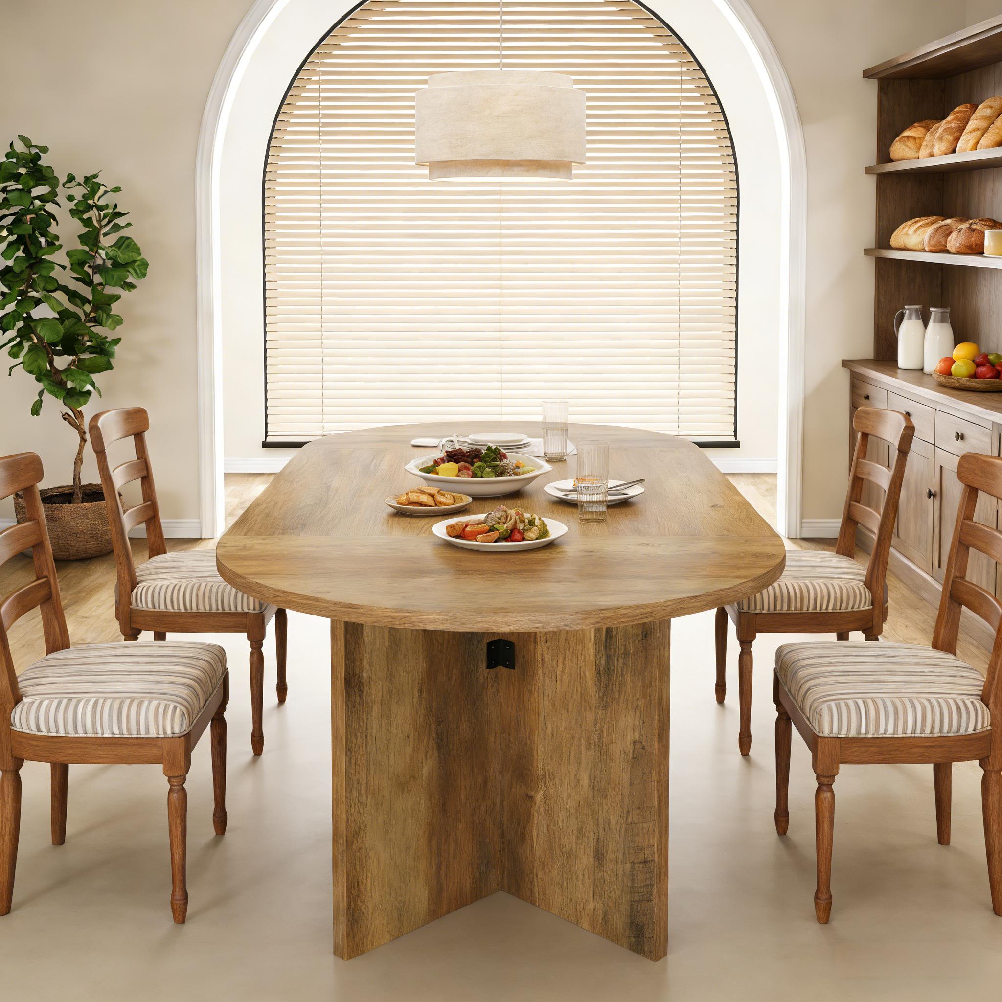 Important Reminder!!! 1) Attention: All products in our store do not support Canada self pickup ordering. Please do not create shipping labels for Canada. Our American products do not support self pickup to Canada 2)We do not ship to Alaska, Hawaii, US protectorates (e.g., Puerto Rico), P.O. boxes, or APO/FPO addresse 3)We don’t accept non-defective remorse returns Farmhouse-Inspired Design - This spacious oval kitchen table blends rustic charm with modern simplicity. Its sturdy metal base provides reliable support while enhancing your decor with a timeless look. Durable & Easy-Clean MDF - Built with water-withstandsant, scratch-proof MDF, this table marries style and practicality. Just wipe with a damp cloth to keep it looking pristine—ideal for everyday meals or entertaining. Generous Seating for 4-6 - At 63 inches long, this table comfortably accommodates family dinners or guest gatherings. The ergonomic height ensures relaxed conversations and meals. Multi-Functional for Any Space - More than a dining table, it works as a stylish office conference table, café workstation, or cozy breakfast spot. Its versatile brown finish suits farmhouse, industrial, or modern settings. Hassle-Free Assembly - Enjoy easy setup with clearly labeled parts and step-by-step instructions. All hardware is included—no tools or expertise required.