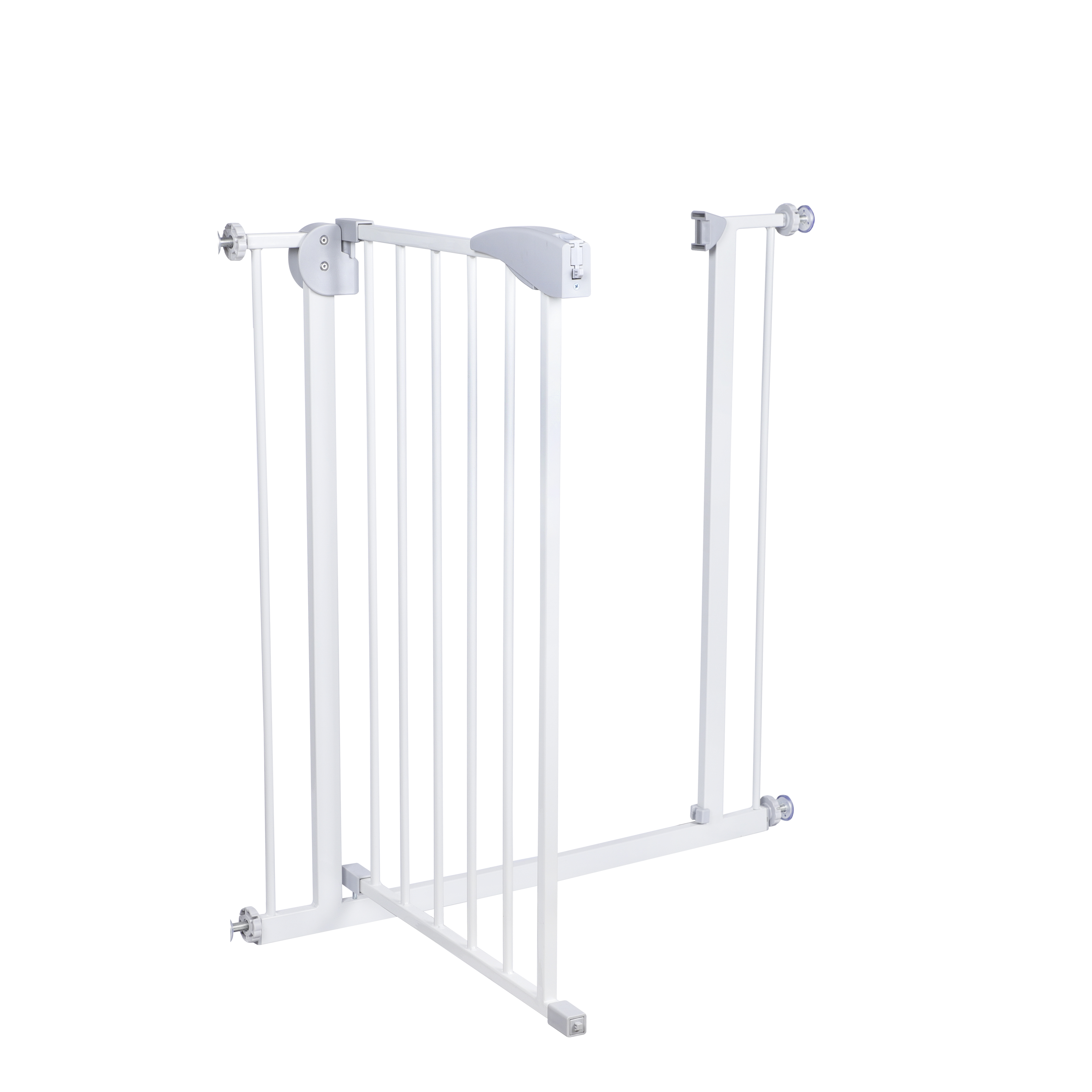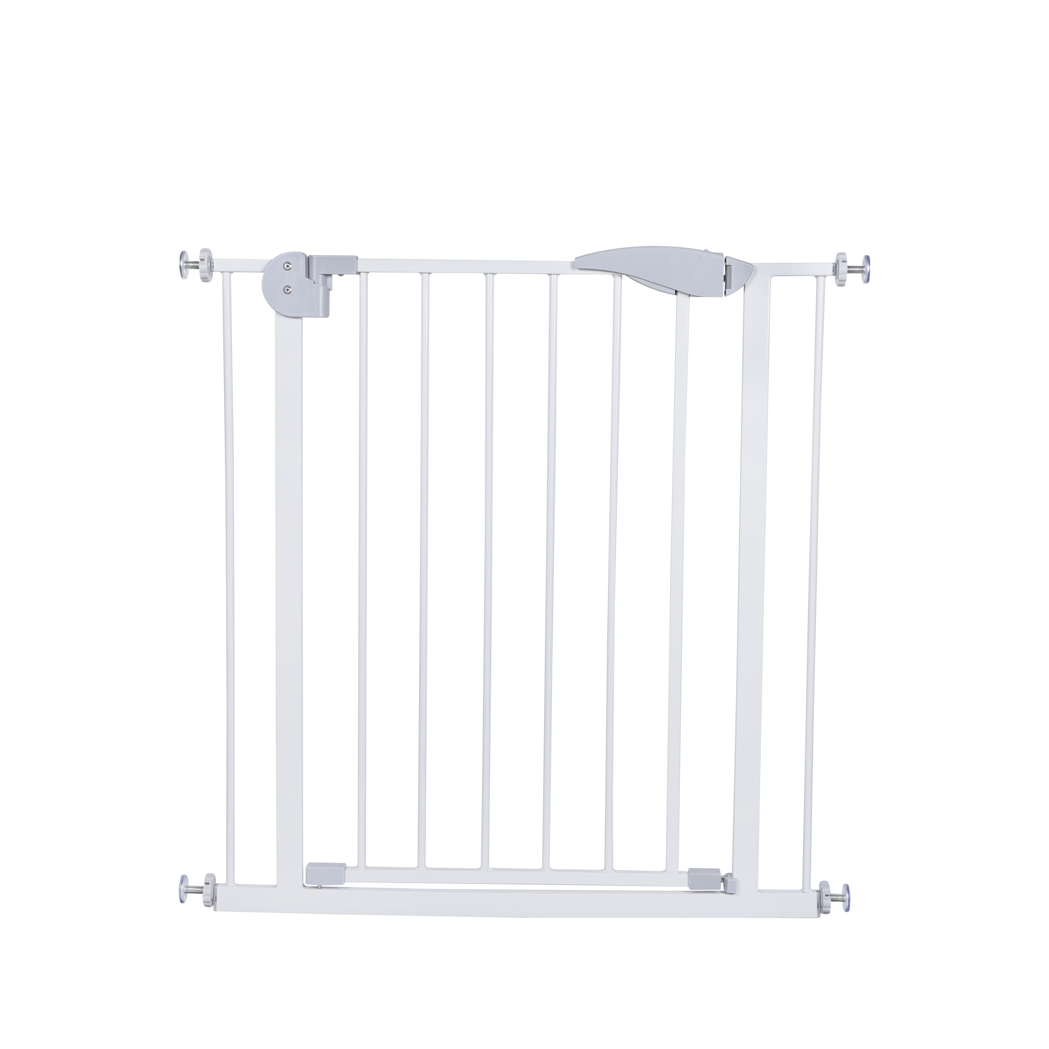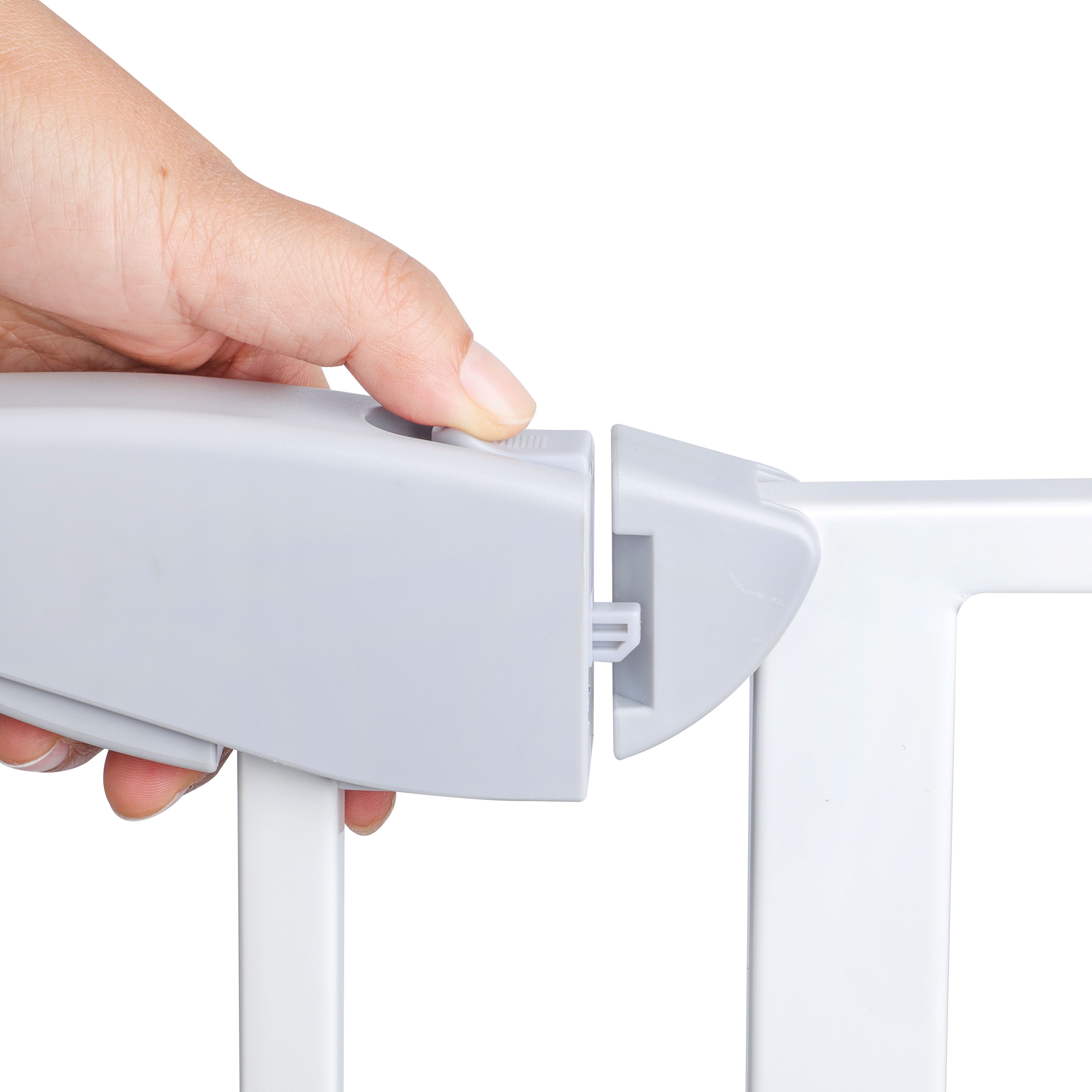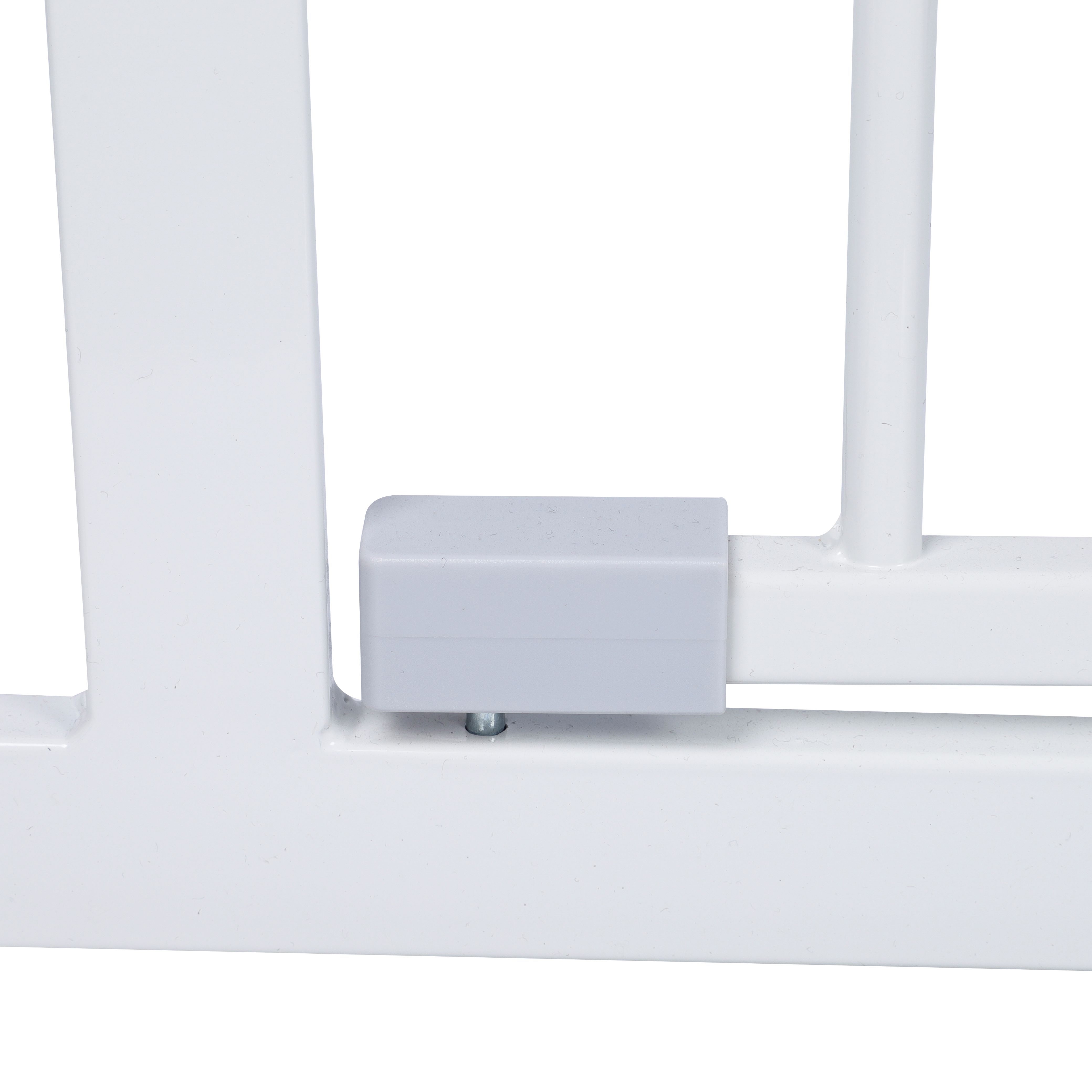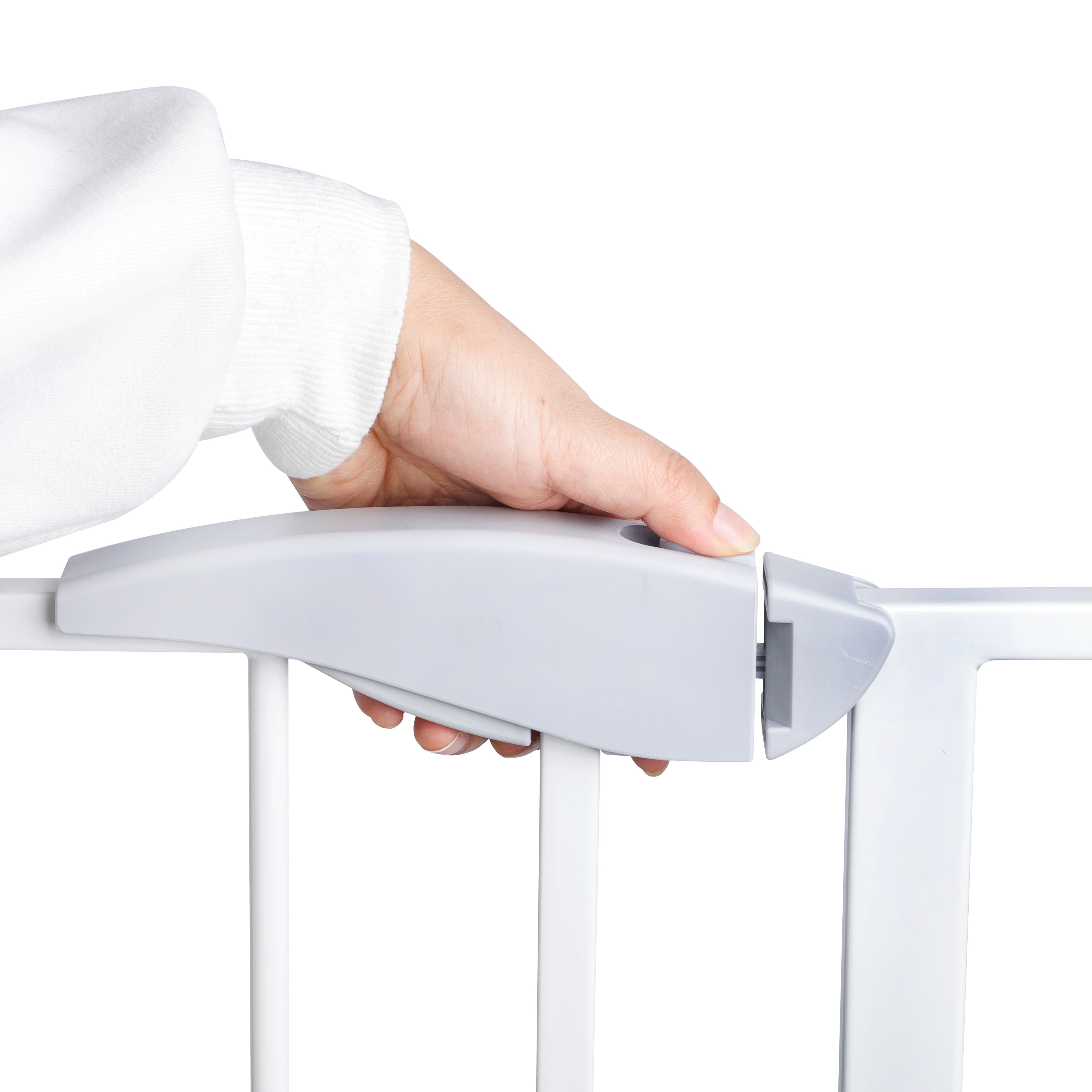 Product Name:Double door baby safe gate for stairs & doorways,adjustable 75-115 cm(29.53''-45.3''),walk through safety gate with extension kits,auto close,pressure mounted,white metal child & pet gate