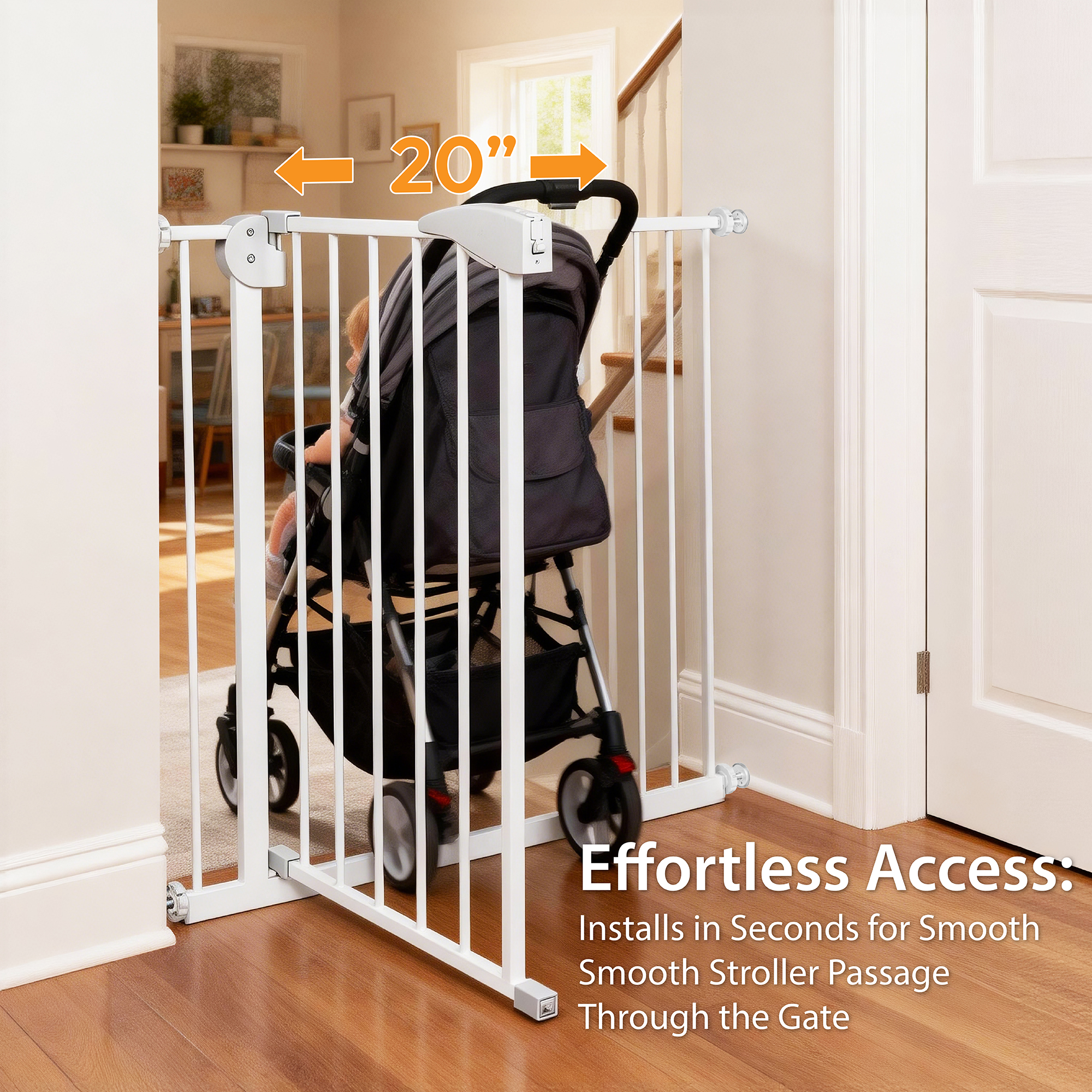 • 【Safe for kids and pets】Featuring a sturdy all-steel build, this gate withstands pushing and tipping to keep your children safe from injury. Its double-lock mechanism is hard for babies and pets to unlock, providing a secure, protected area for your little crawlers and furry companions.