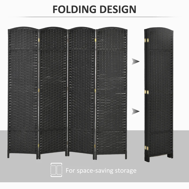Home > Folding Room Divider Screen 4 Panel 5.6 ' Tall Privacy Screen Freestanding Room Partition For Home Office, Black
