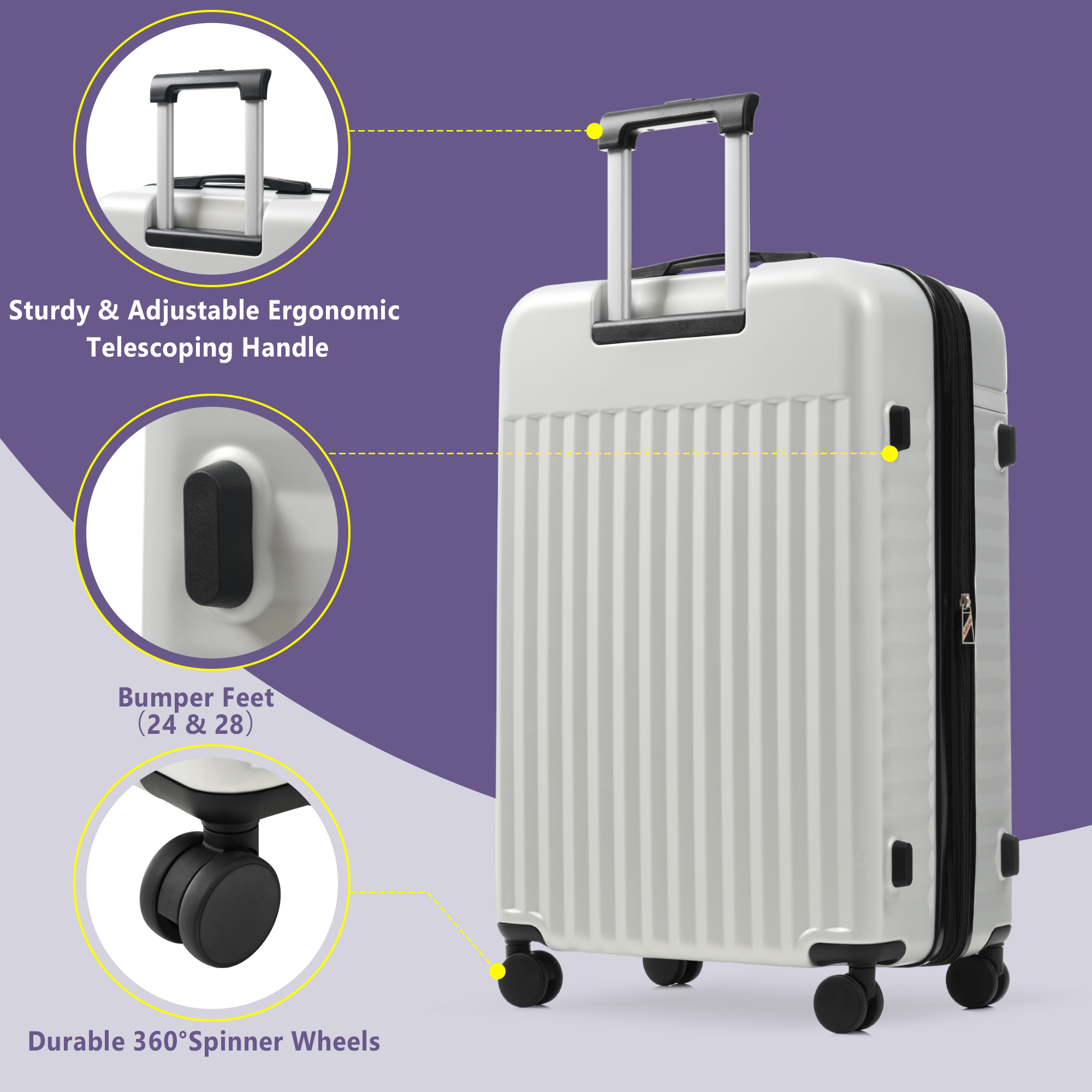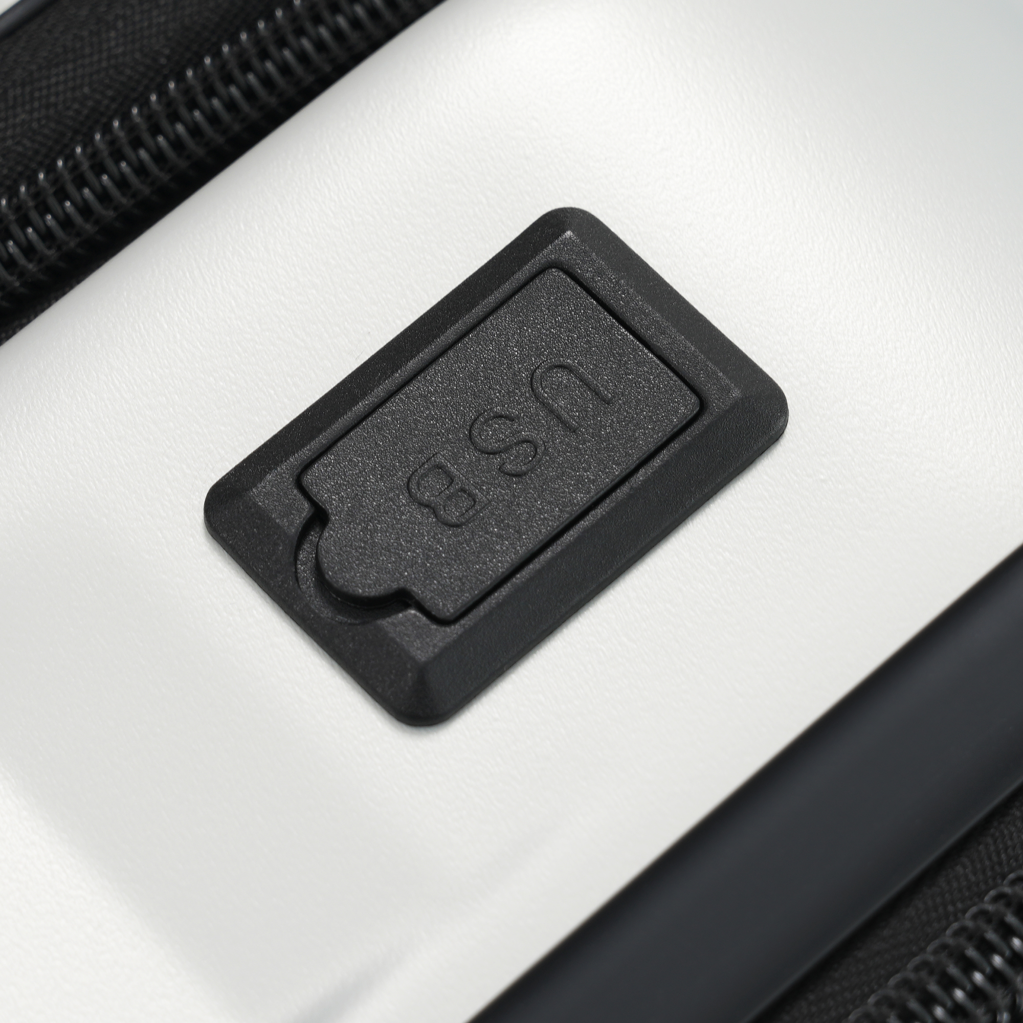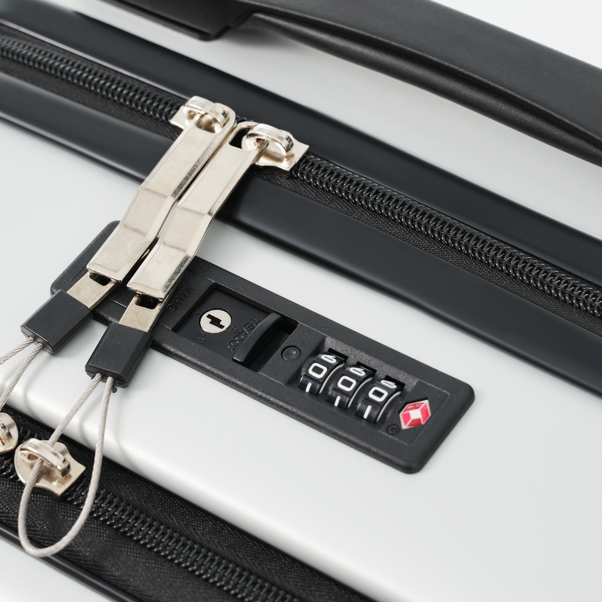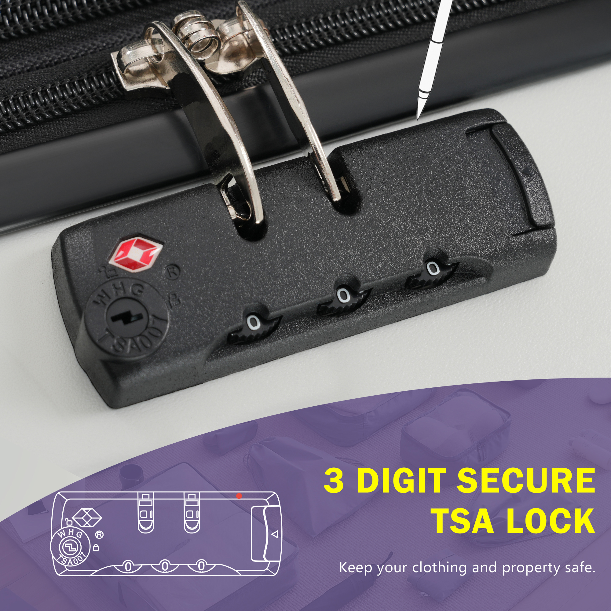 Accessories Introduction: 20-inch Exclusive Accessories: Front-opening design with multiple internal compartments USB port with built-in charging cable 24-inch Suitcase Accessories: Side carry handle Lightweight foot Expansion layer Common Accessories for All 2 Sizes: 3-stage telescopic handle Double 360° spinner wheels TSA-approved lock Top carry handle Explosion-proof zipper Internal divider compartments TSA COMBINATION LOCK 20-inch luggage combination lock Push the button (in the direction of the dial) to unlock the front opening and zipper compartment. Instructions for Reset the 3 Digit Secure TSA Lock--20 inch 1) With the lock in the original combination 0-0-0. 2) Press down the reset button [A] with a pen or other tool until you hear a "click" sound. 3) Set your own combination by tumning the dials [B]. For example,8-8-8. 4) Push the button [C] in the direction of the arrow until you hear the"click"sound again,confirming that you have set your personal combination. Instructions for Reset the 3 Digit Secure TSA Lock--24 inch 1. The initial password of lock is 0-0-0. 2.Press the reset hole with the tip of the pen. 3.Set the new 3-digit code while pressing. 4.Now you can open the lock with the new password.