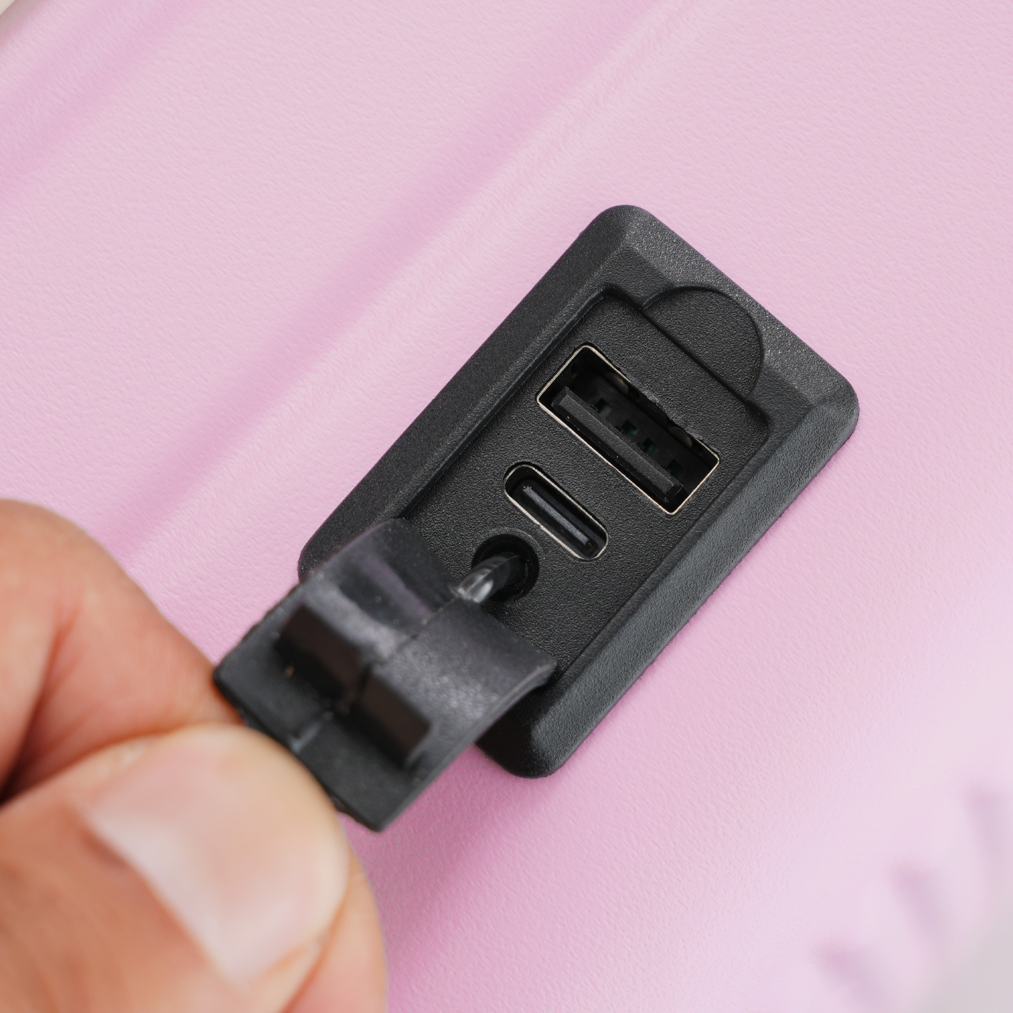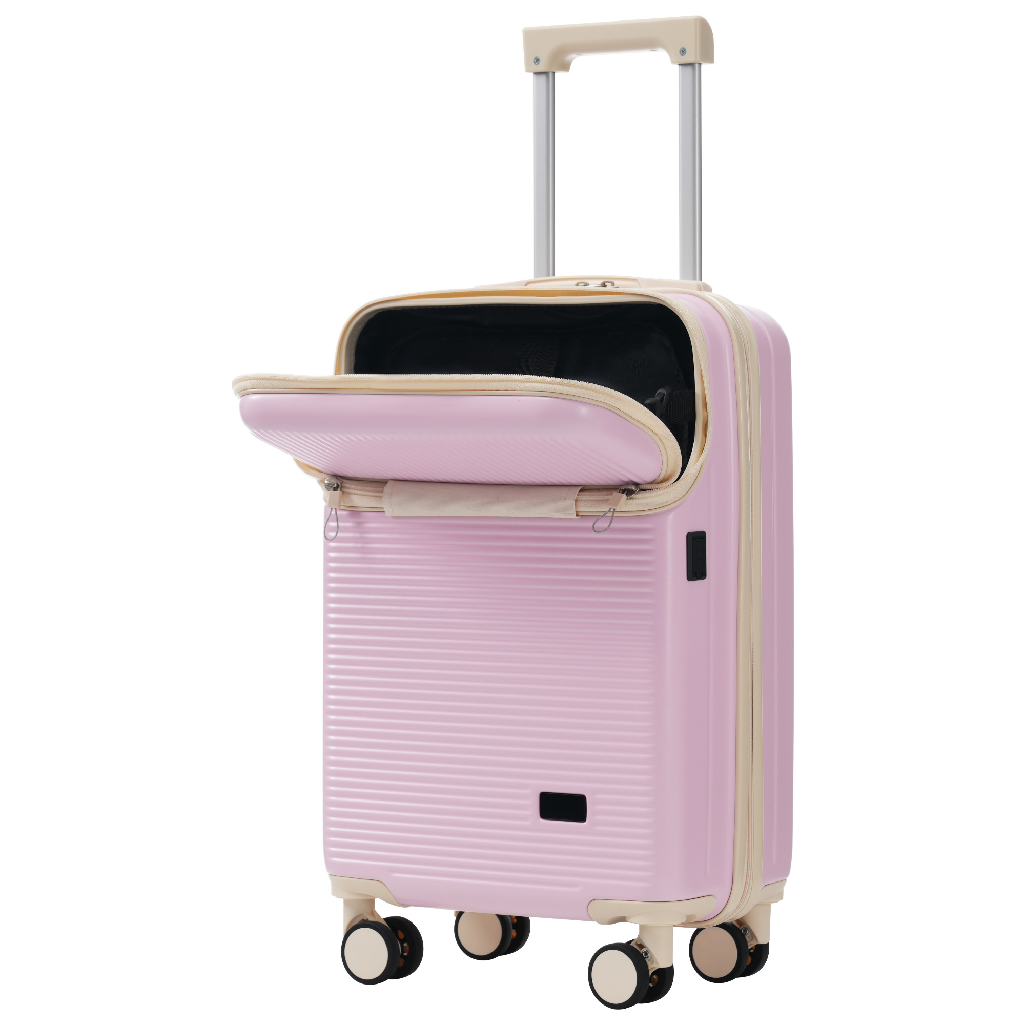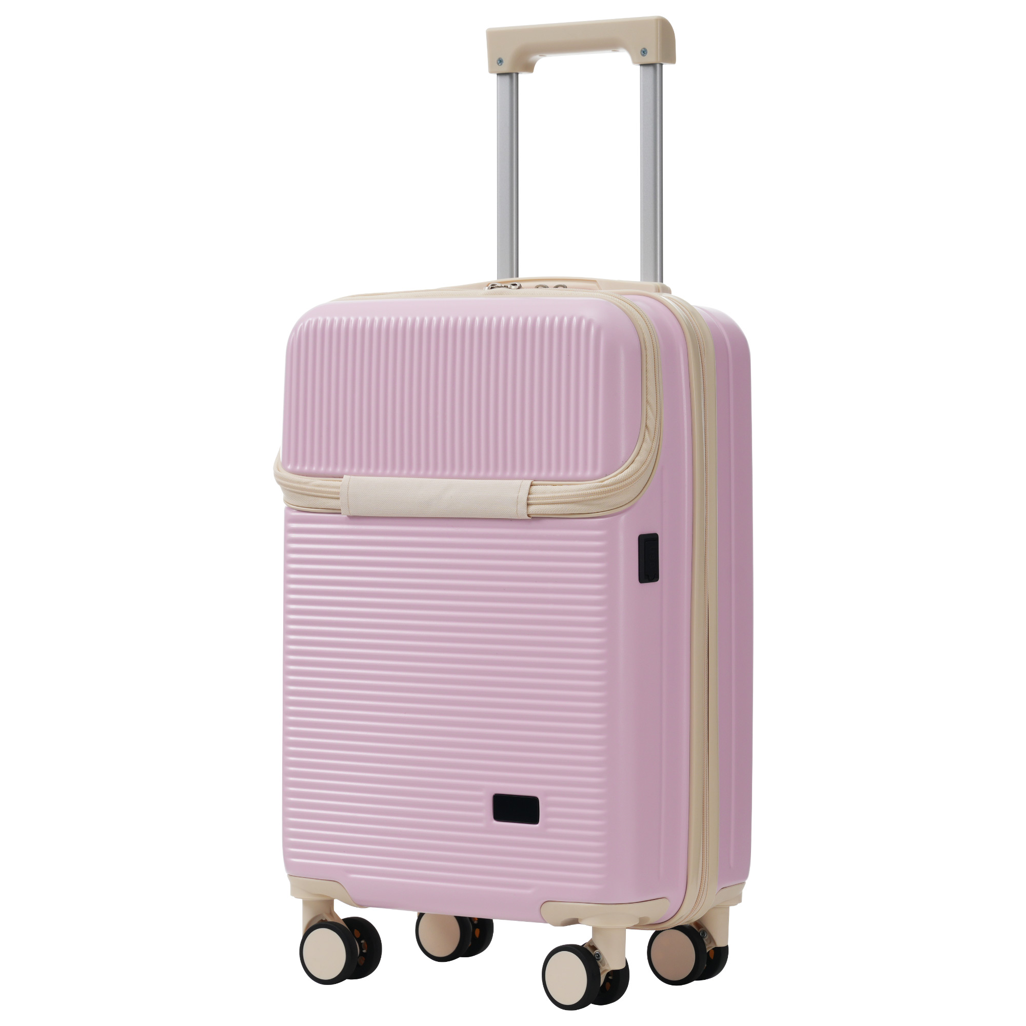 • 2.This 20-inch suitcase features a front half-opening design, facilitating quick and easy access to a computer or other commonly used devices. The front compartment of the hard-shell carry-on luggage set includes a compartment for storing computers, zippered compartments, and mesh pockets, providing ample storage for a variety of items. It also features a built-in data cable that can be connected to a power bank inside the luggage. (Note:The 20-inch suitcase cannot be expanded)