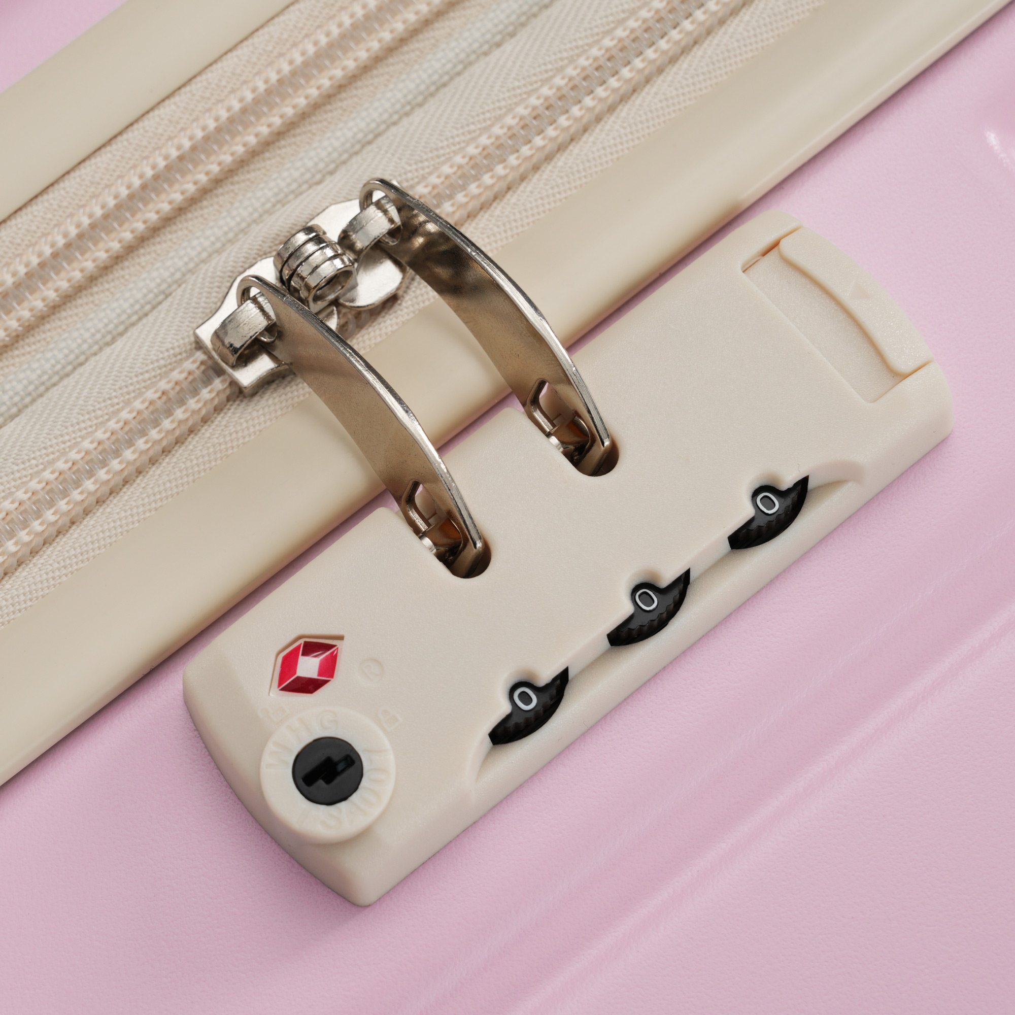 Instructions for Reset the 3 Digit Secure TSA Lock--24 & 28 inch 1. The initial password of lock is 0-0-0. 2.Press the reset hole with the tip of the pen. 3.Set the new 3-digit code while pressing. 4.Now you can open the lock with the new password. Instructions for Reset the 3 Digit Secure TSA Lock--20 inch The original combination is 0-0-0. To set your own combination, please follow these steps: 1) With the lock in the 0-0-0 position. 2) Press down the reset button [A] with a pen or other tool until you hear a "click"sound. 3) Set your own combination by turning the dials [B]. For example, 8-8-8. 4) Push the button [C] in the direction of the arrow until you hear the "click"sound again, confirming that you have set your personal combination.