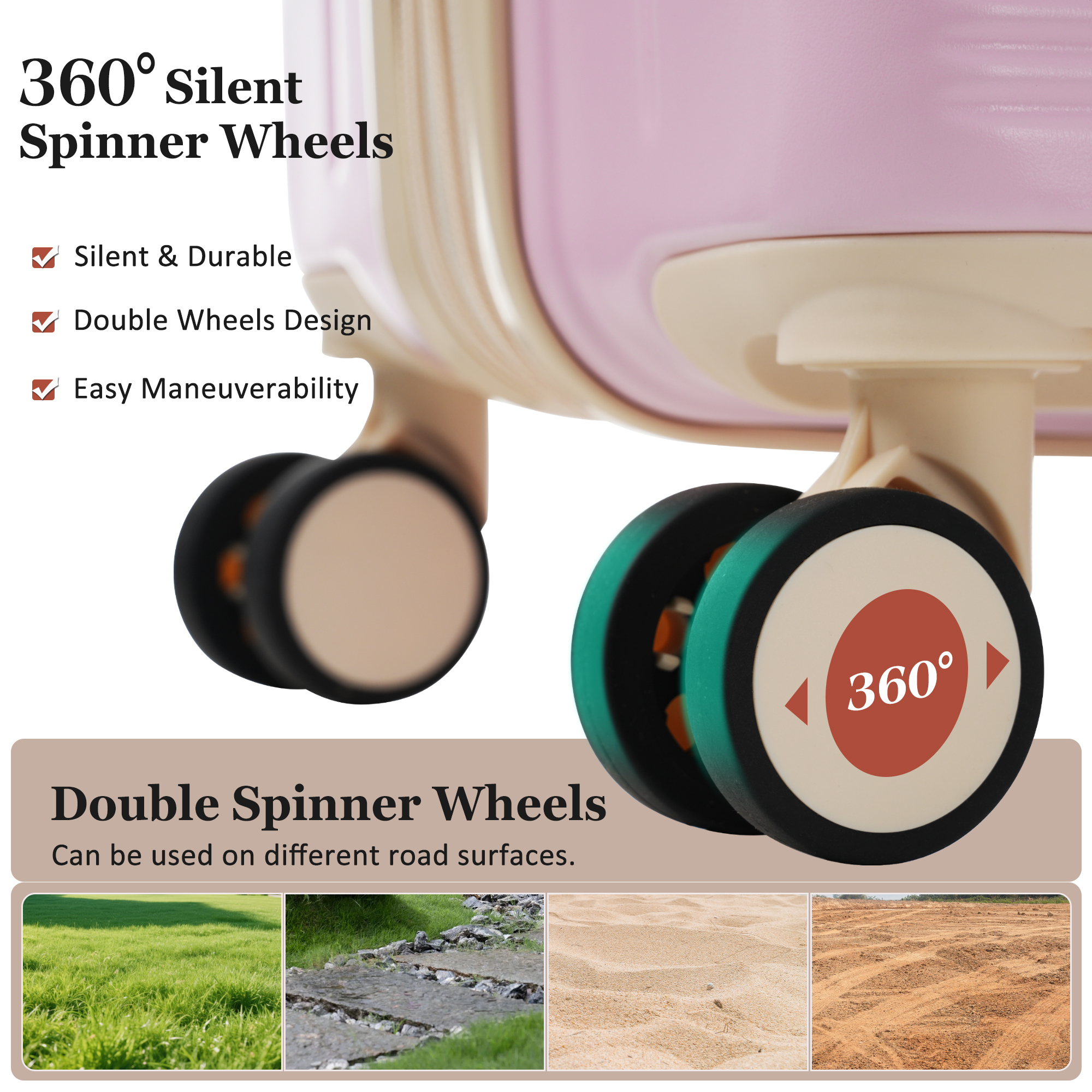 • 4.This suitcase features a fashionable appearance design,It is also equipped with double spinner wheels ensuring 360° free rotation to make their travel luggage sets quieter and smoother, Embrace superior directional control for perfect maneuverability on the go.