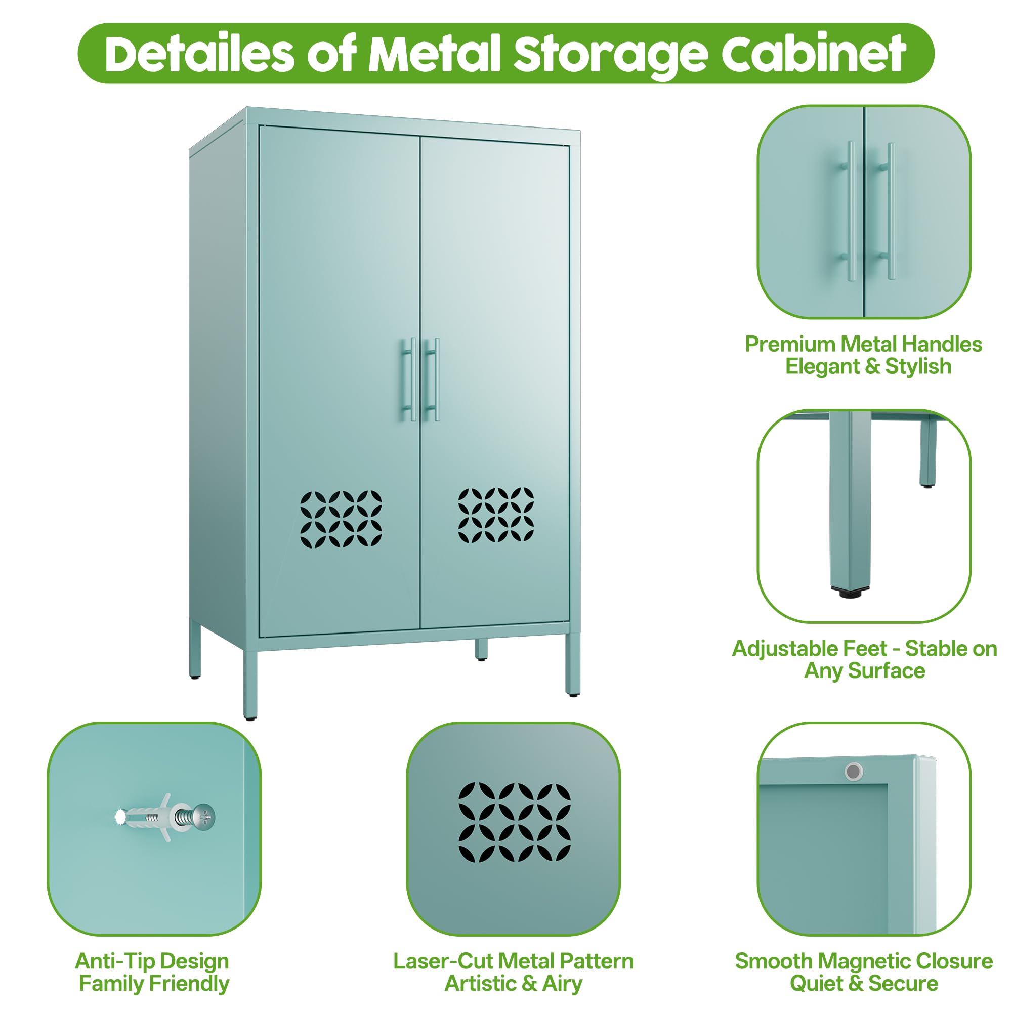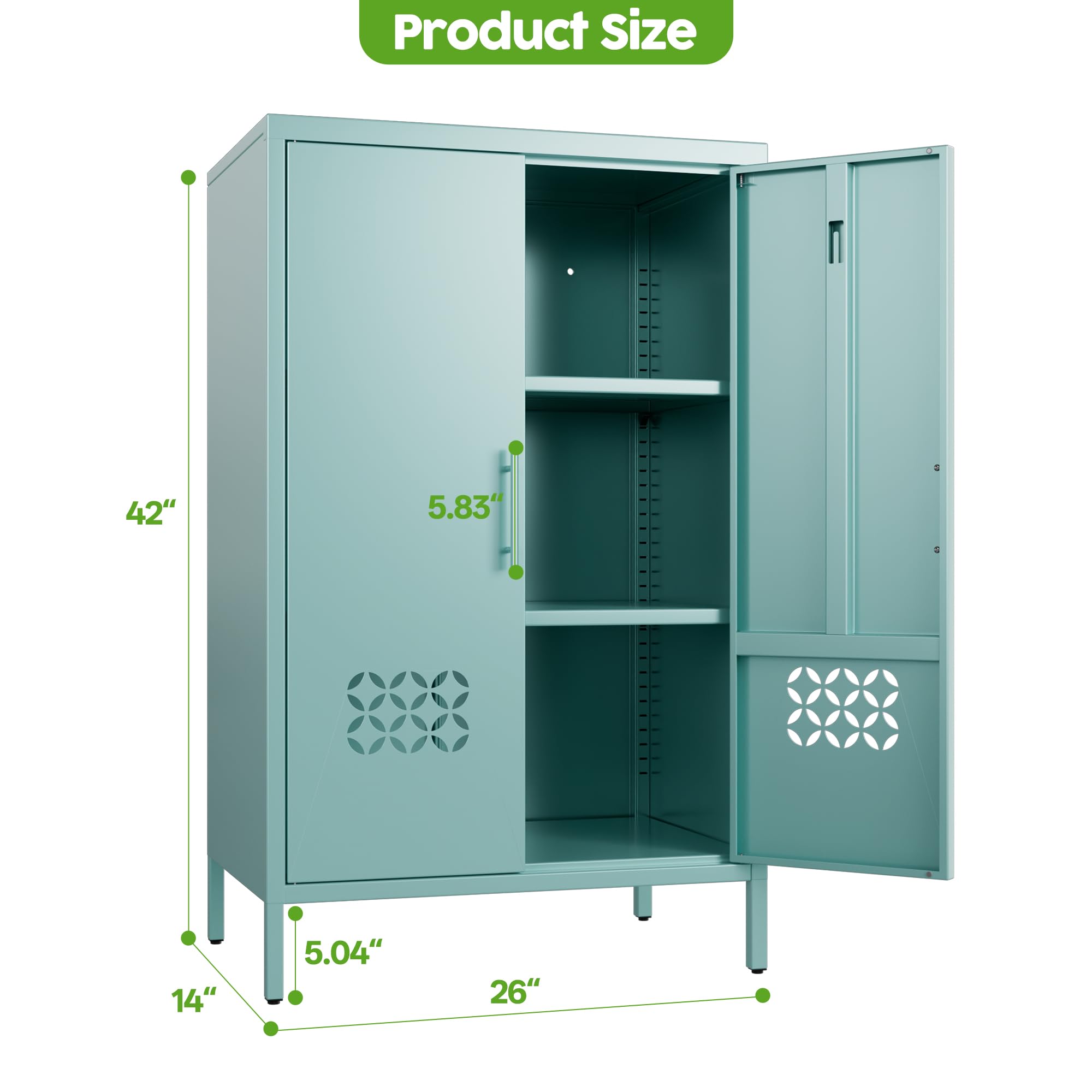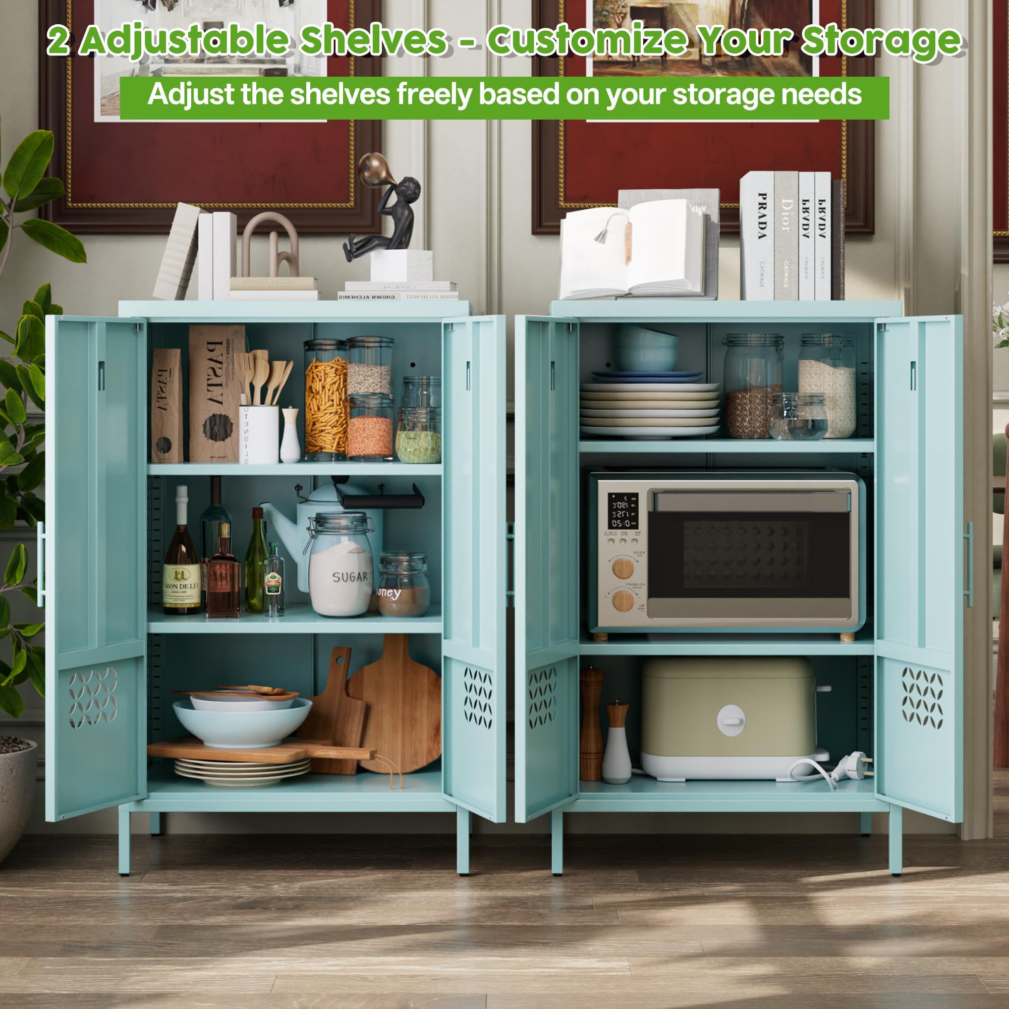 Metal Storage Cabinet, 42inch H Kitchen Pantry Storage Cabinets With 2 Shelves, For Living Room, Home, Required Assembly, Light Blue
