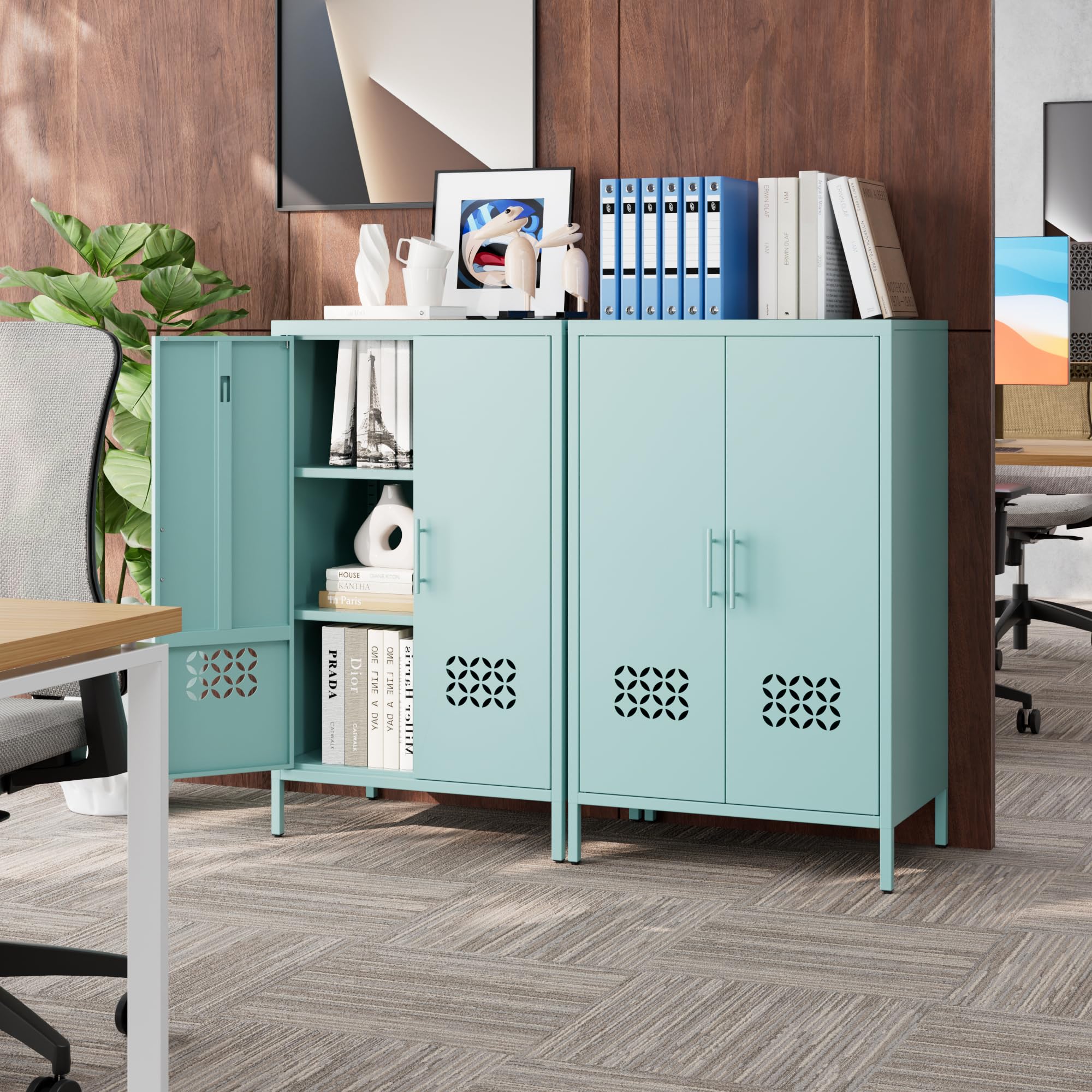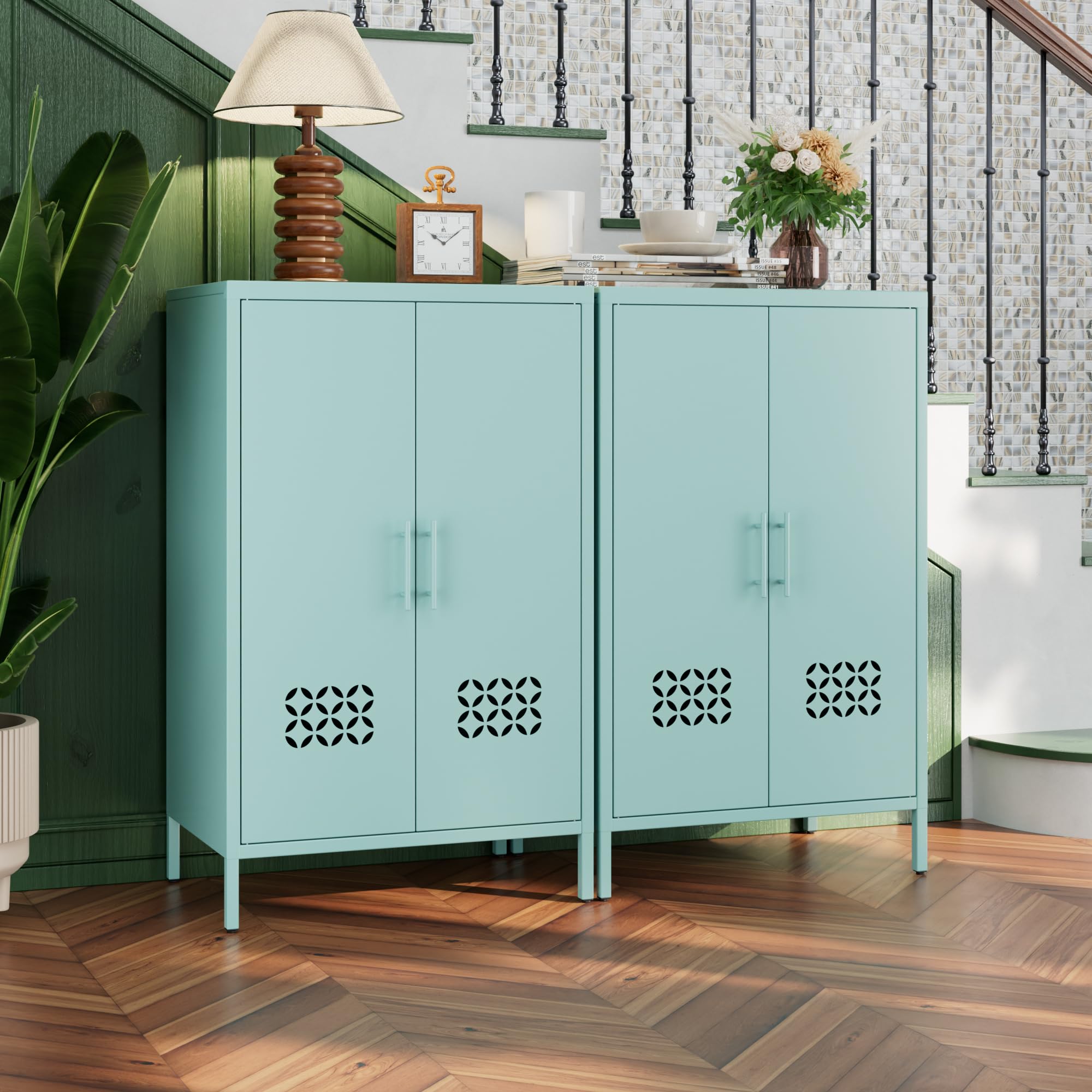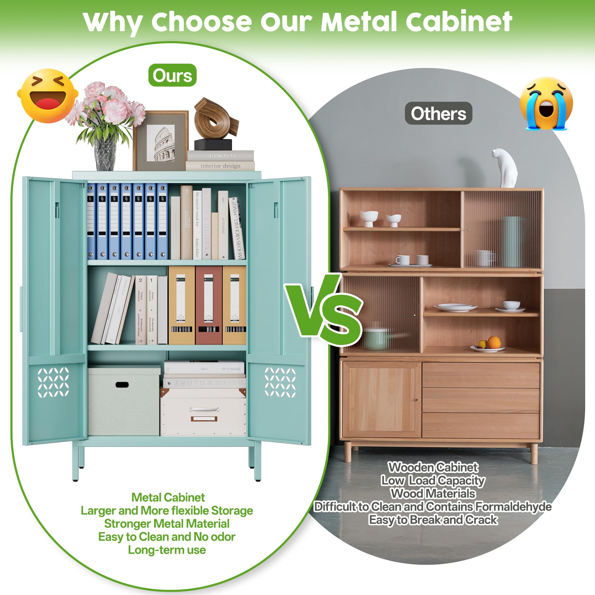 Metal Storage Cabinet, 42inch H Kitchen Pantry Storage Cabinets With 2 Shelves, For Living Room, Home, Required Assembly, Light Blue