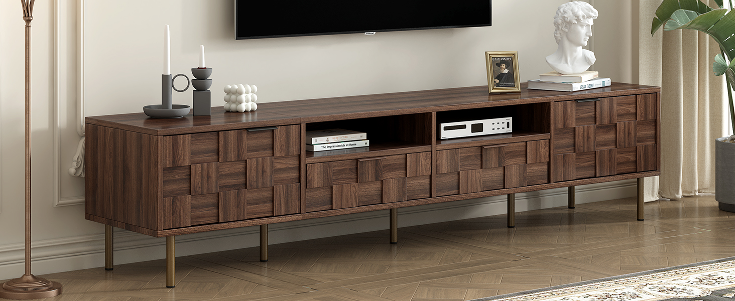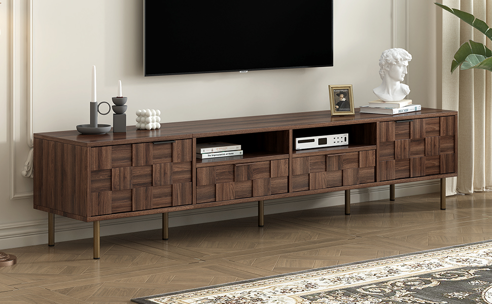 This TV cabinet is equipped with two drawers and four storage cabinets. The two closed cabinets can store seldom-used items to keep the space neat and tidy, while the two open cabinets can display your favorite ornaments or books, adding a sense of layering and visual beauty to the space.