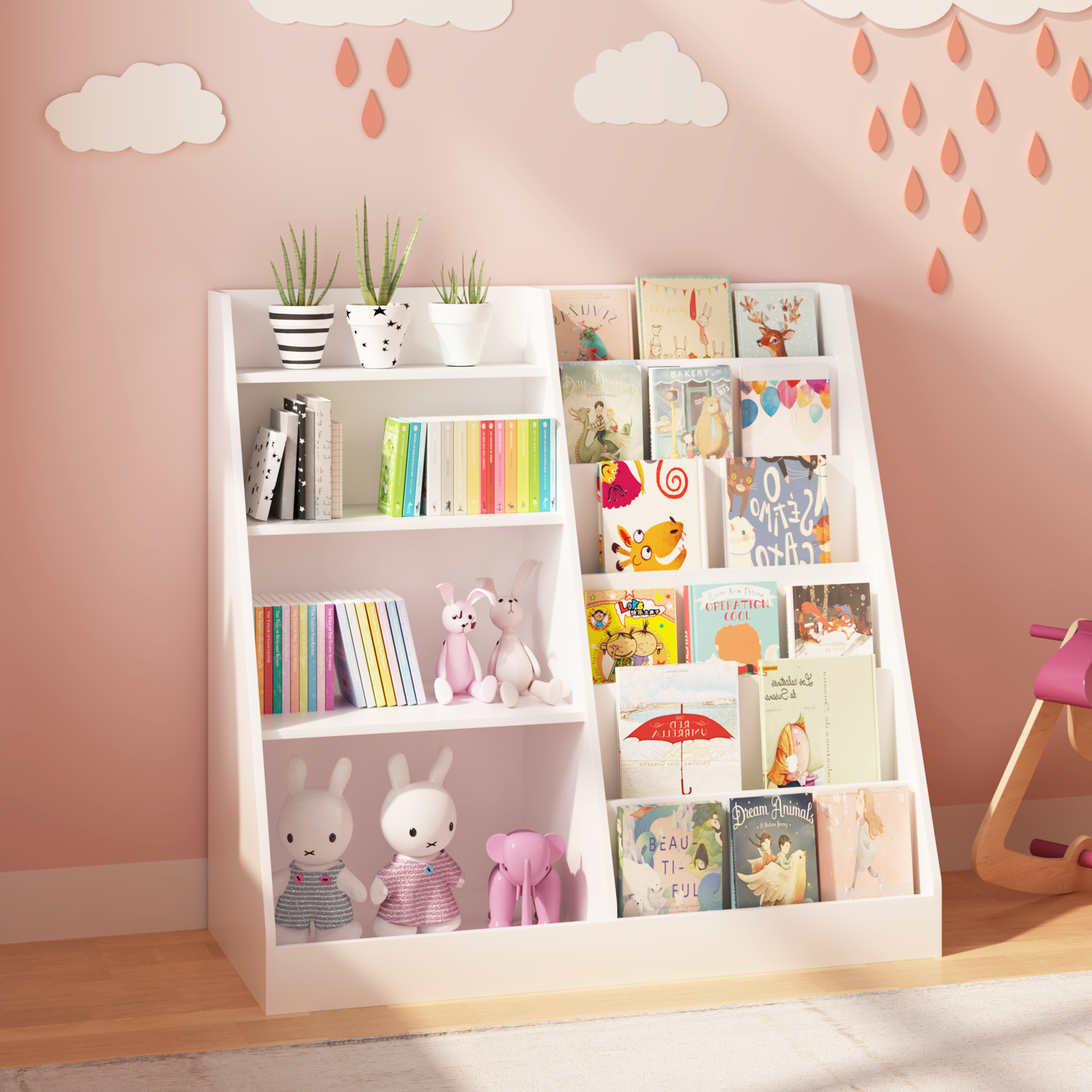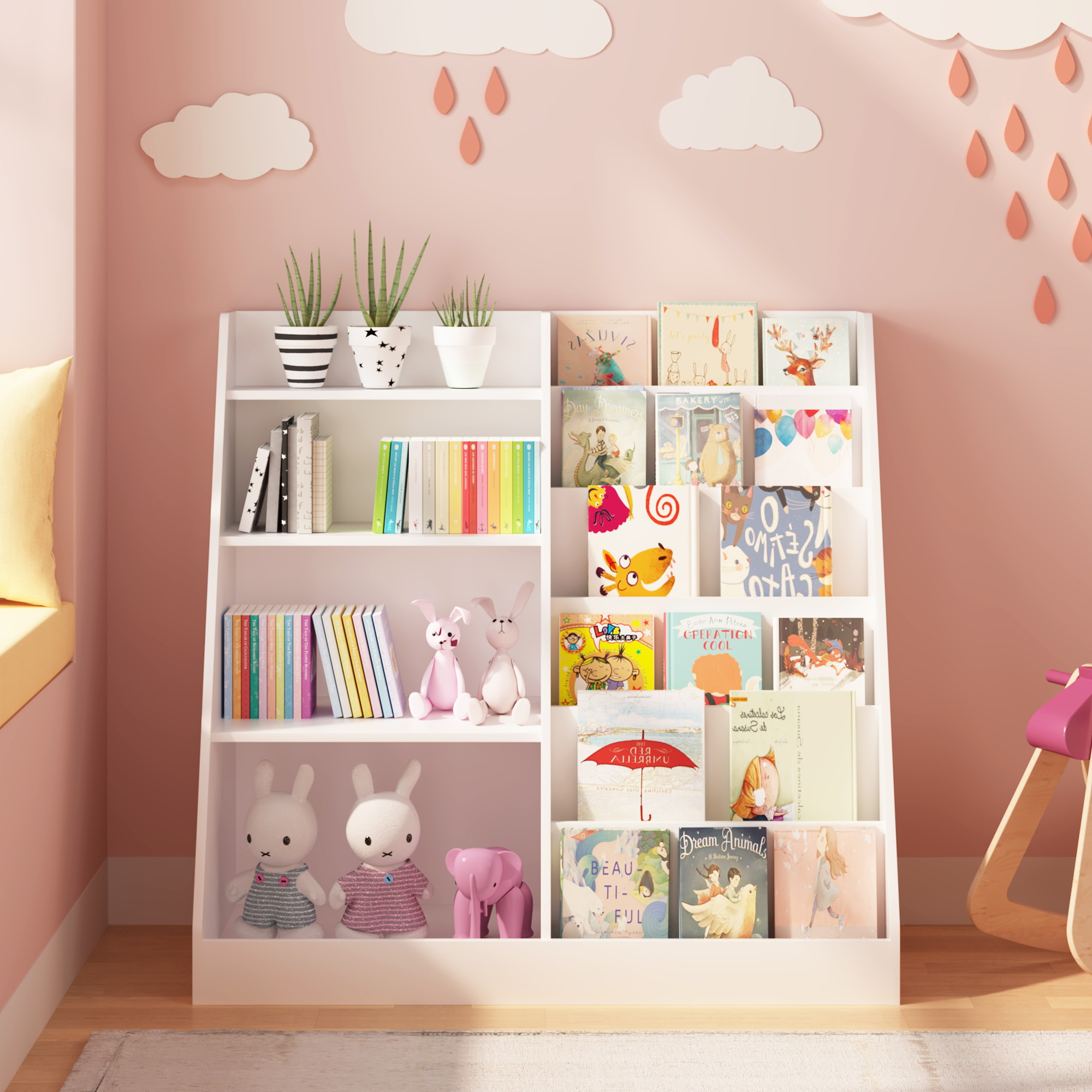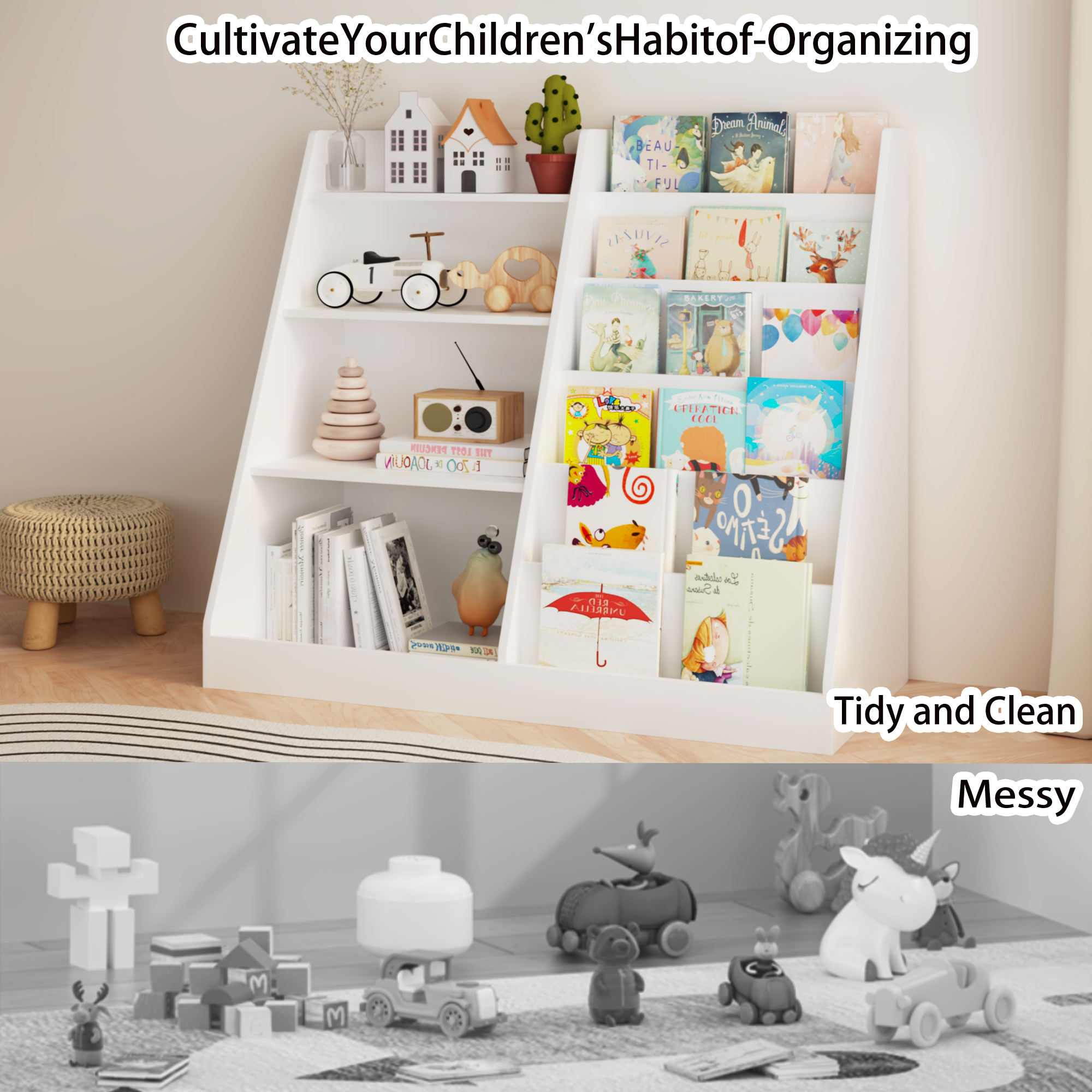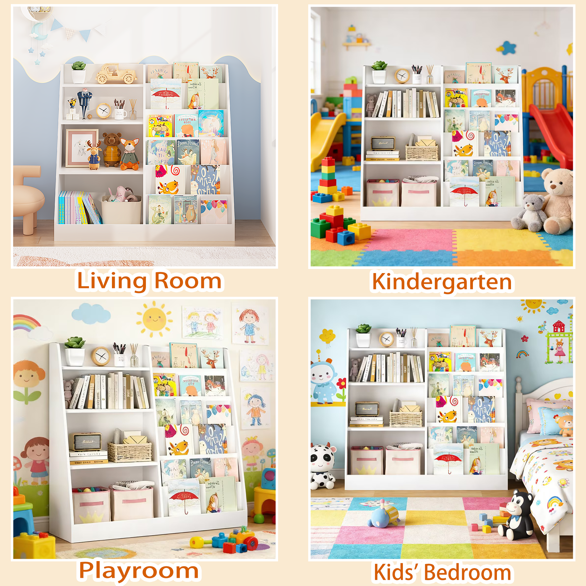 • Modern design kid's bookshelf is perfect for the living room, children's room, etc.