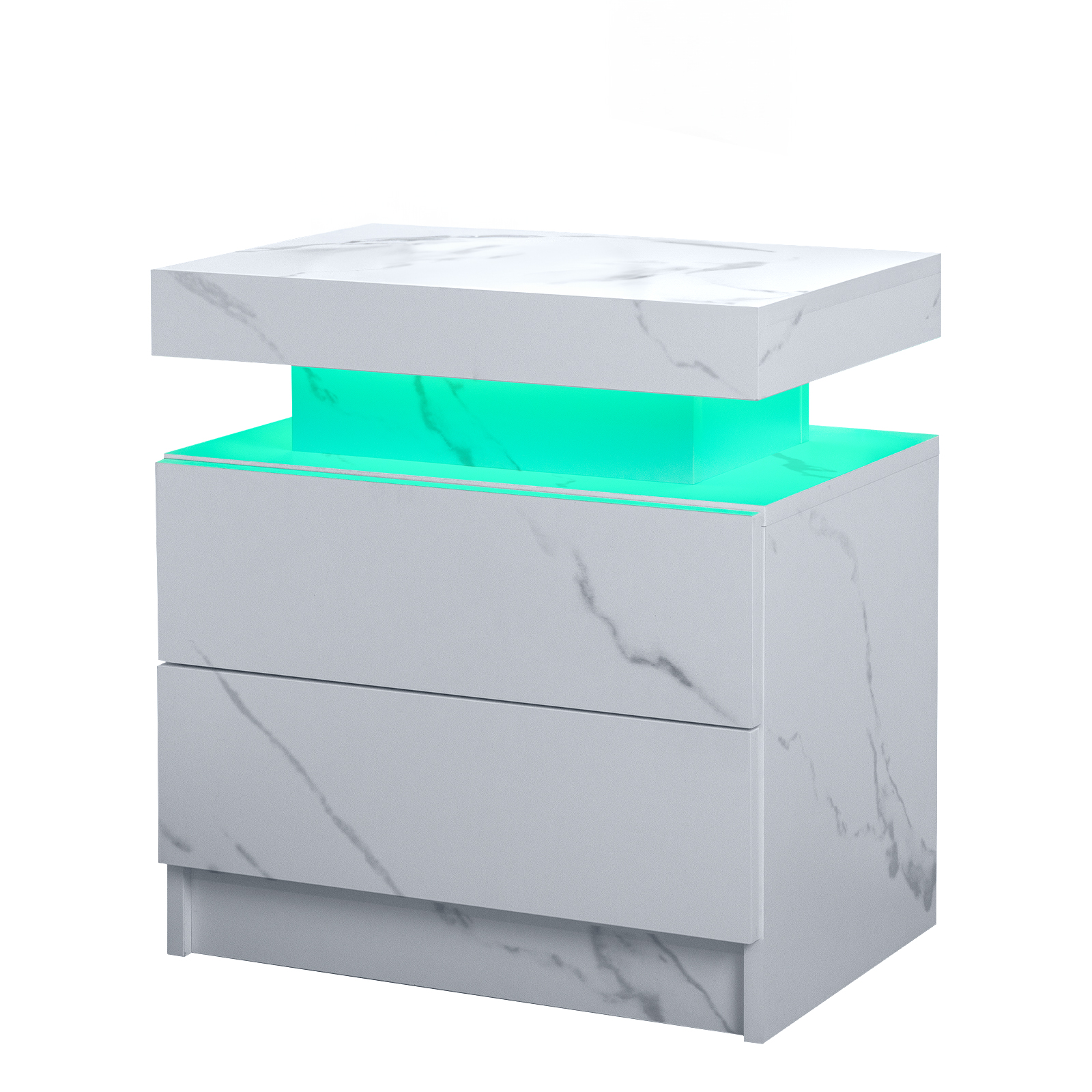 Product Name:Nightstand LED Bedside Table Cabinet Lights Modern End Side with 2 Drawers for Bedroom (White Stone)