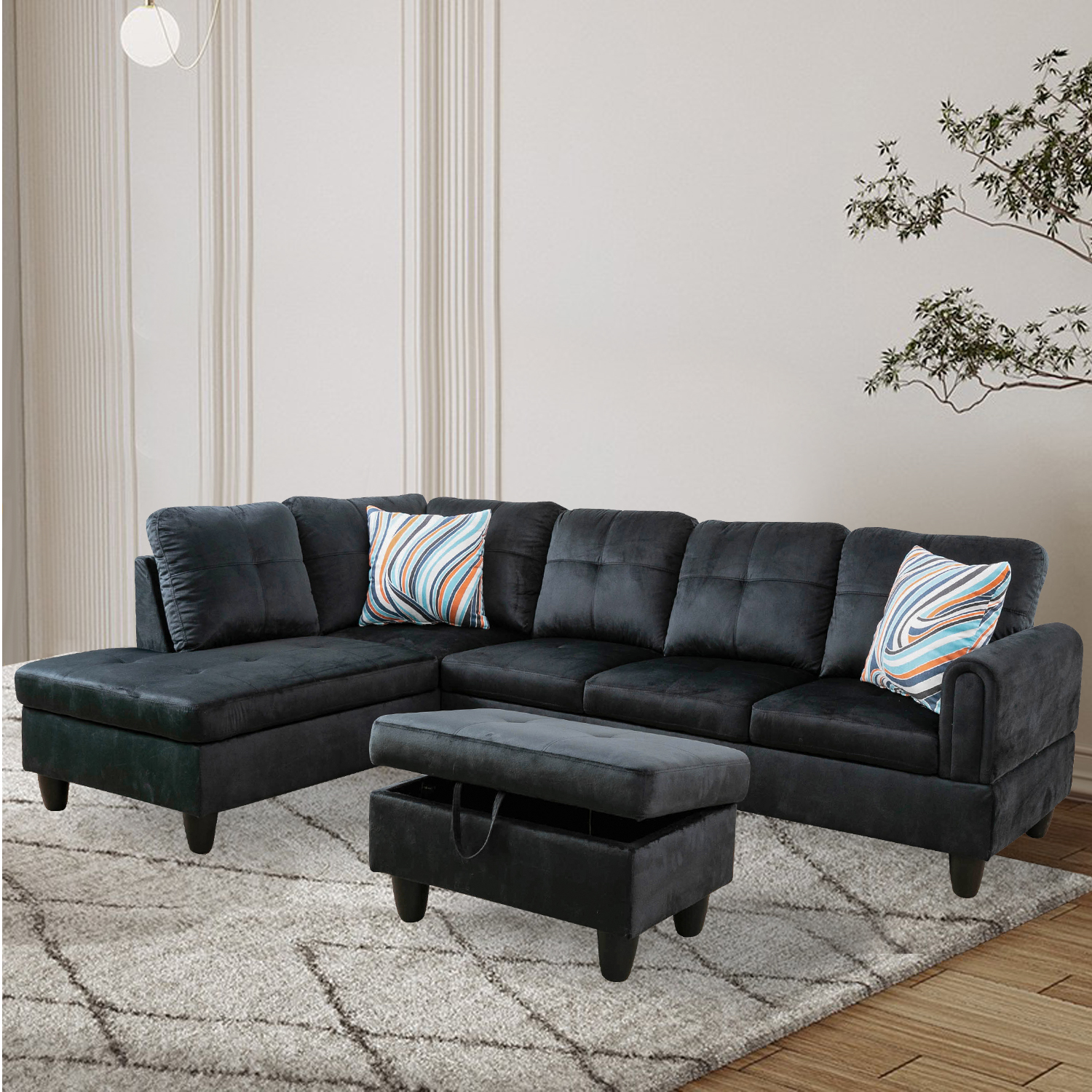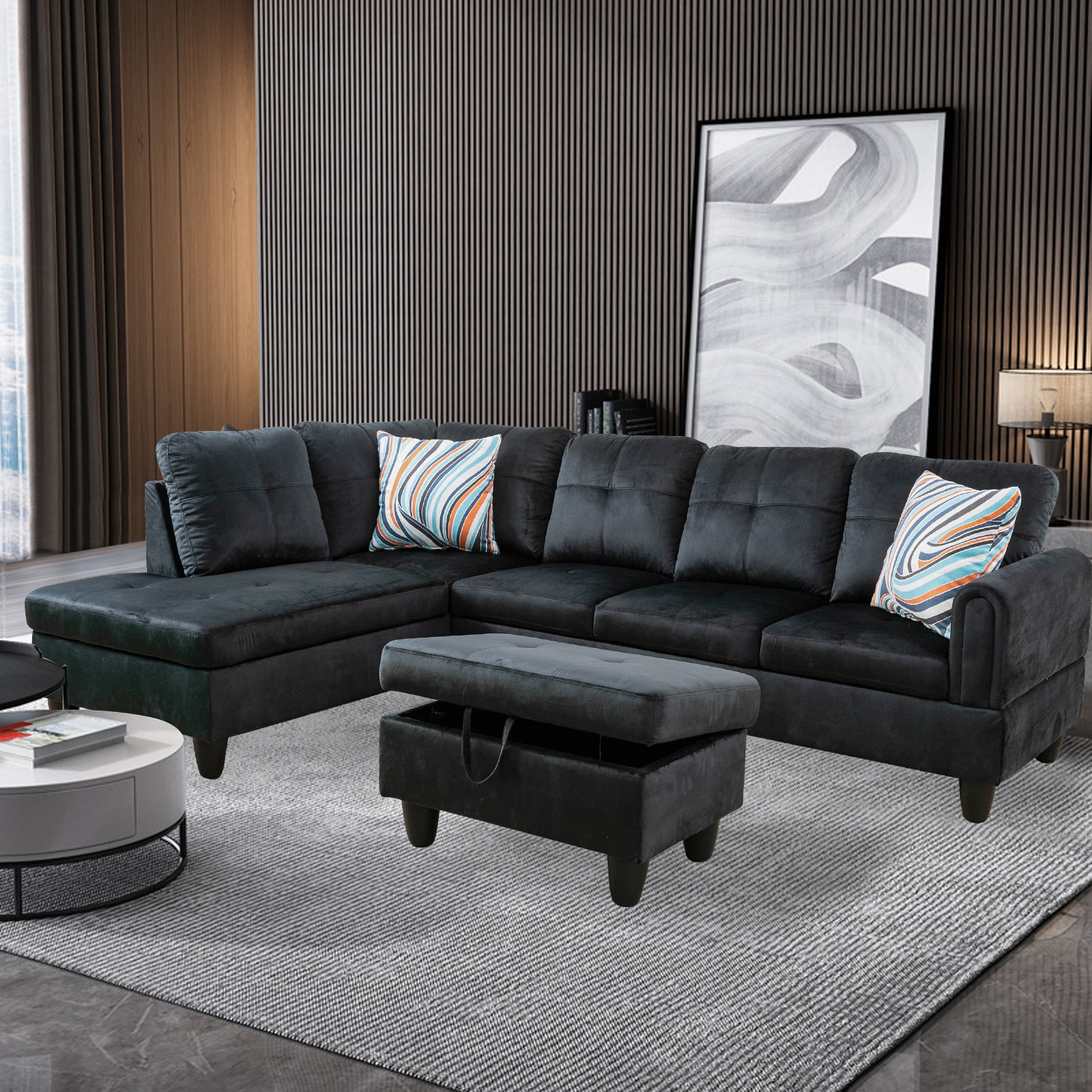 Home > Only Self Pickup--Black Flannel Living Room Sofa Set