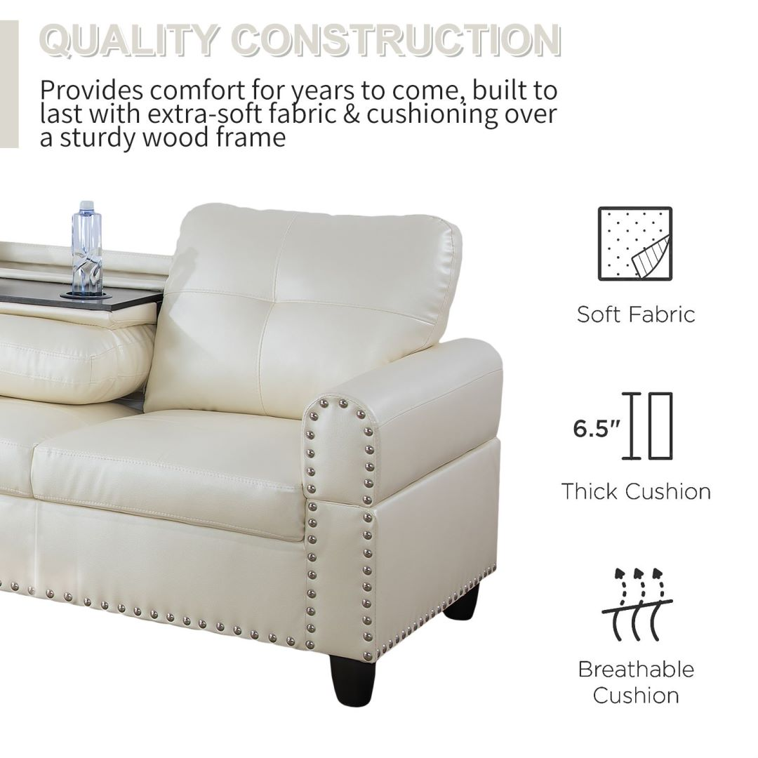Home > Only Self Pickup--White Faux Leather Synthetic Leather 3-Piece Sofa Set