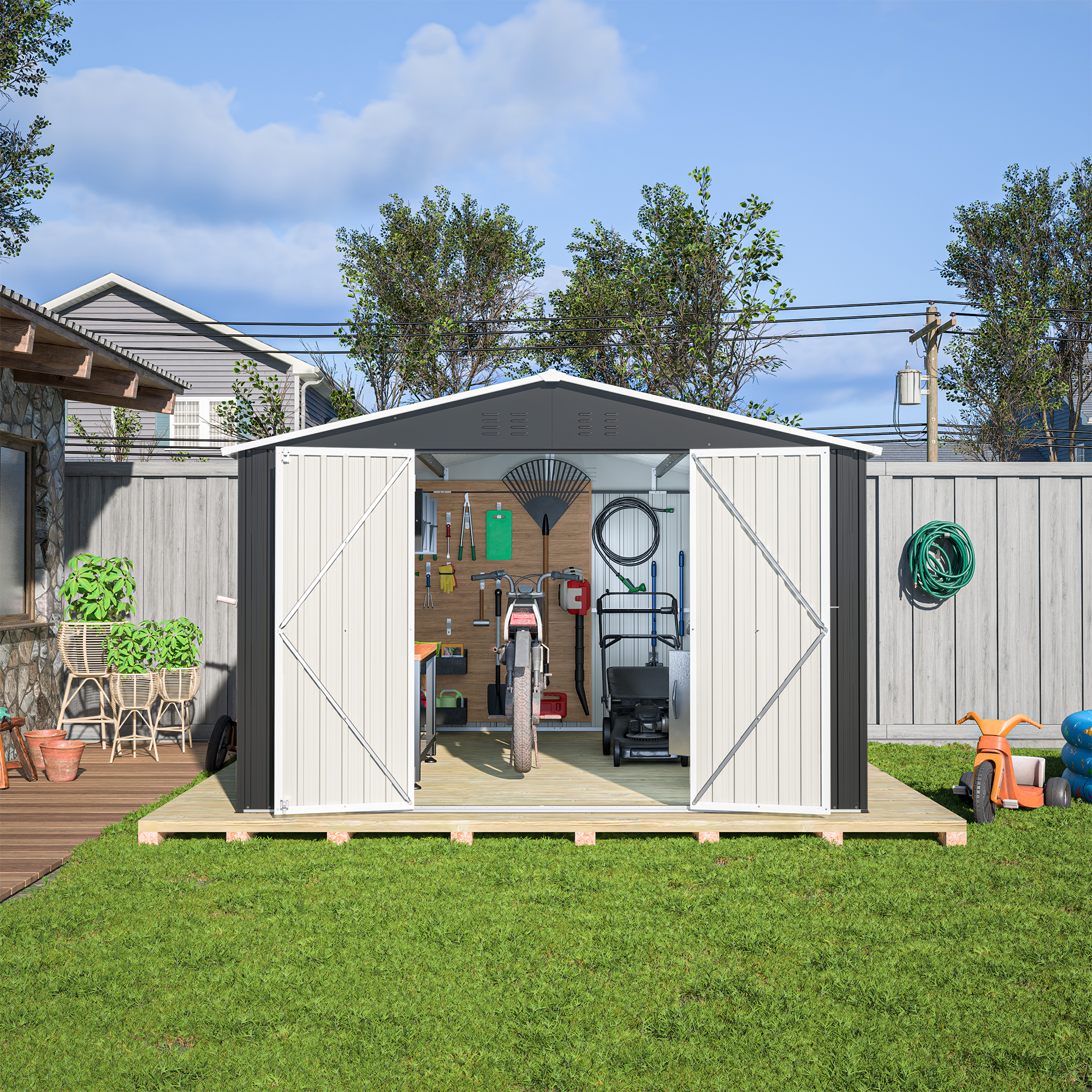 • 【Enhanced structural integrity】 Our storage shed has a reinforced structure that makes assembly easier and more stable, saves installation time, and combines practicality and durability.