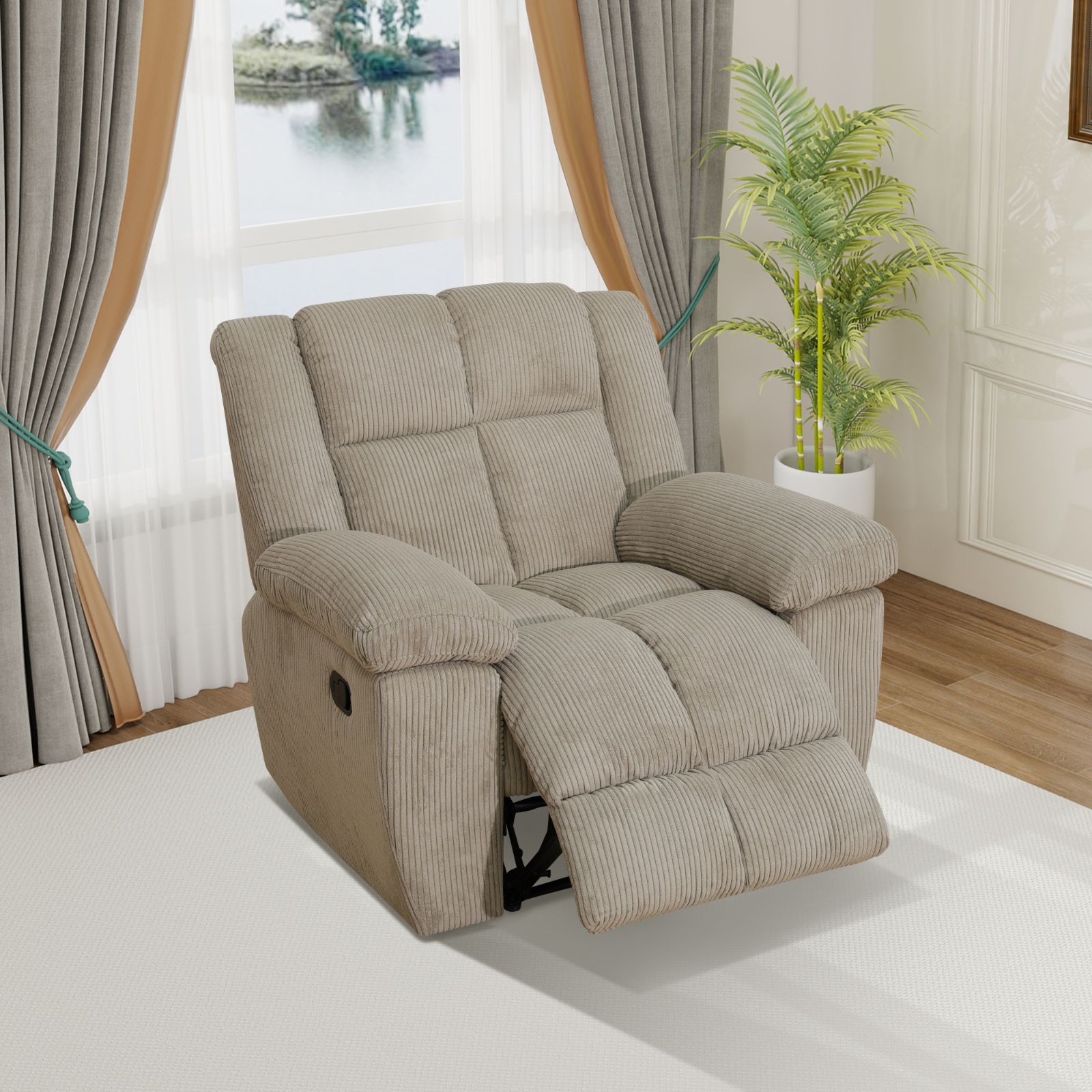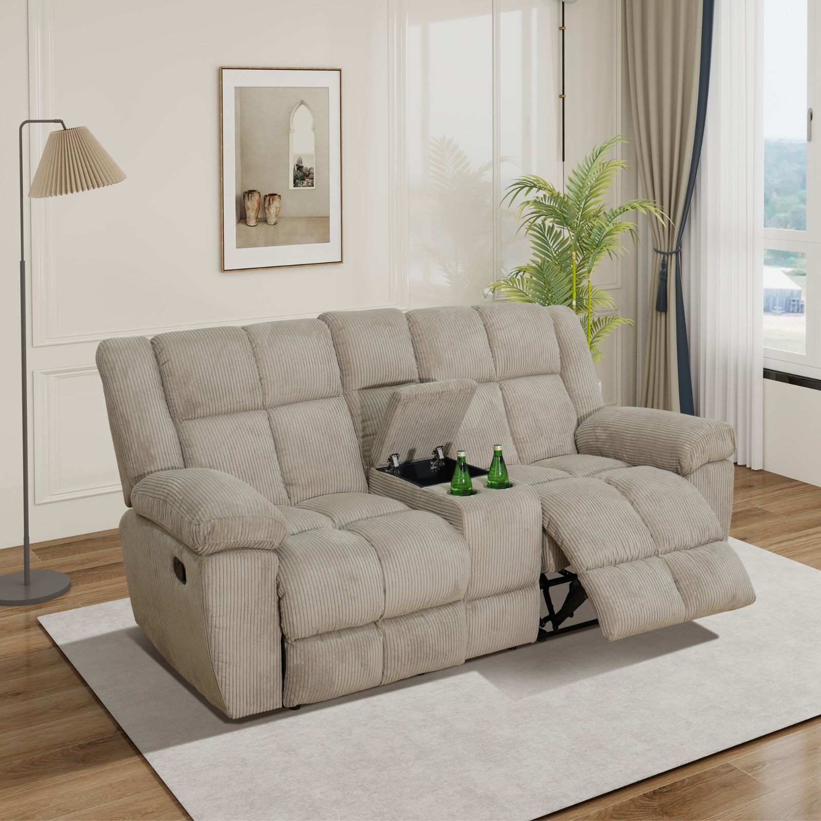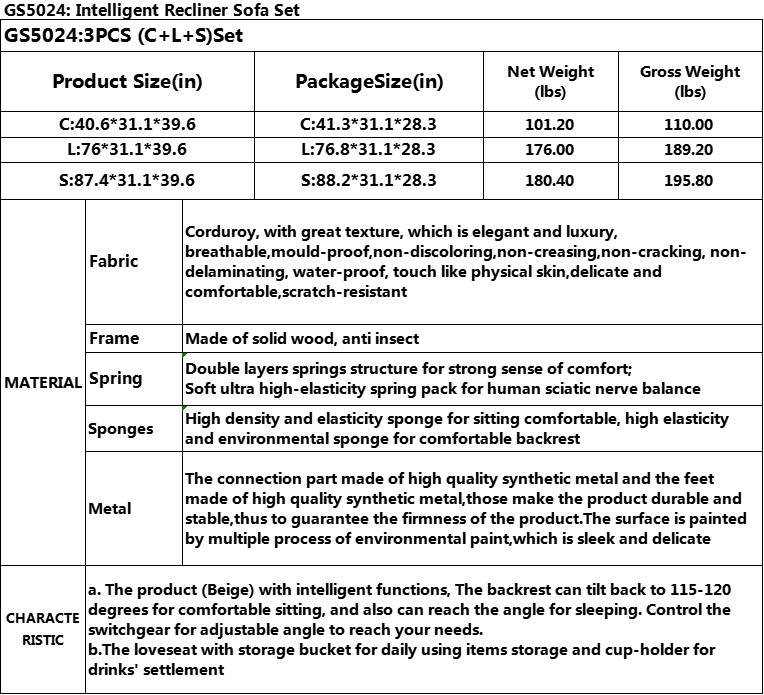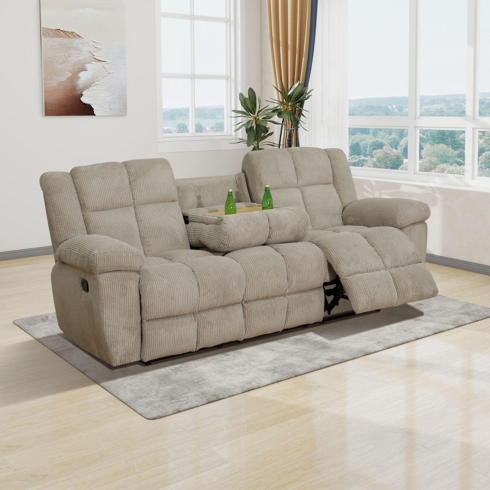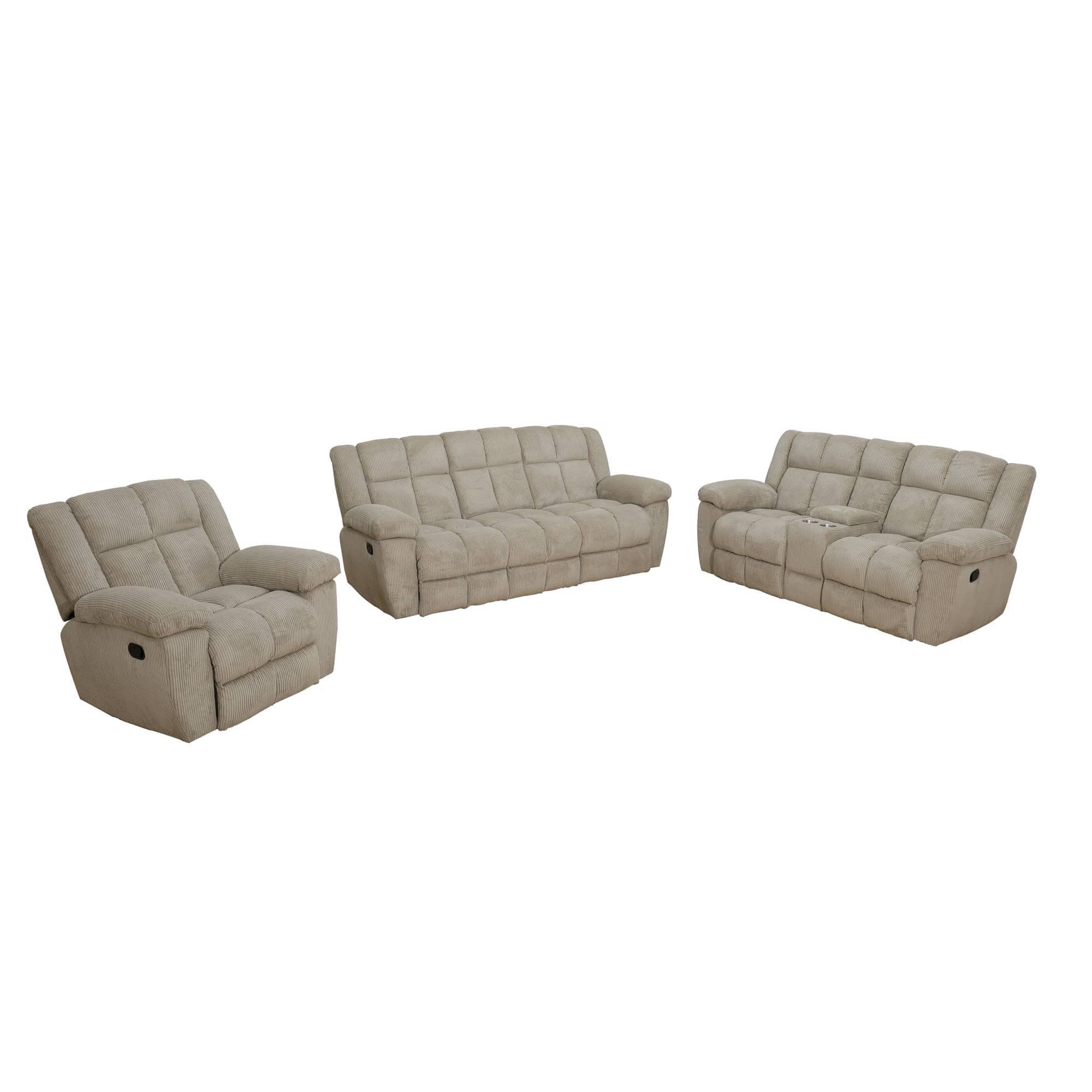 Home > Pickup Only--Beige Corduroy 3-Piece Living Room Recliner Sofa Set