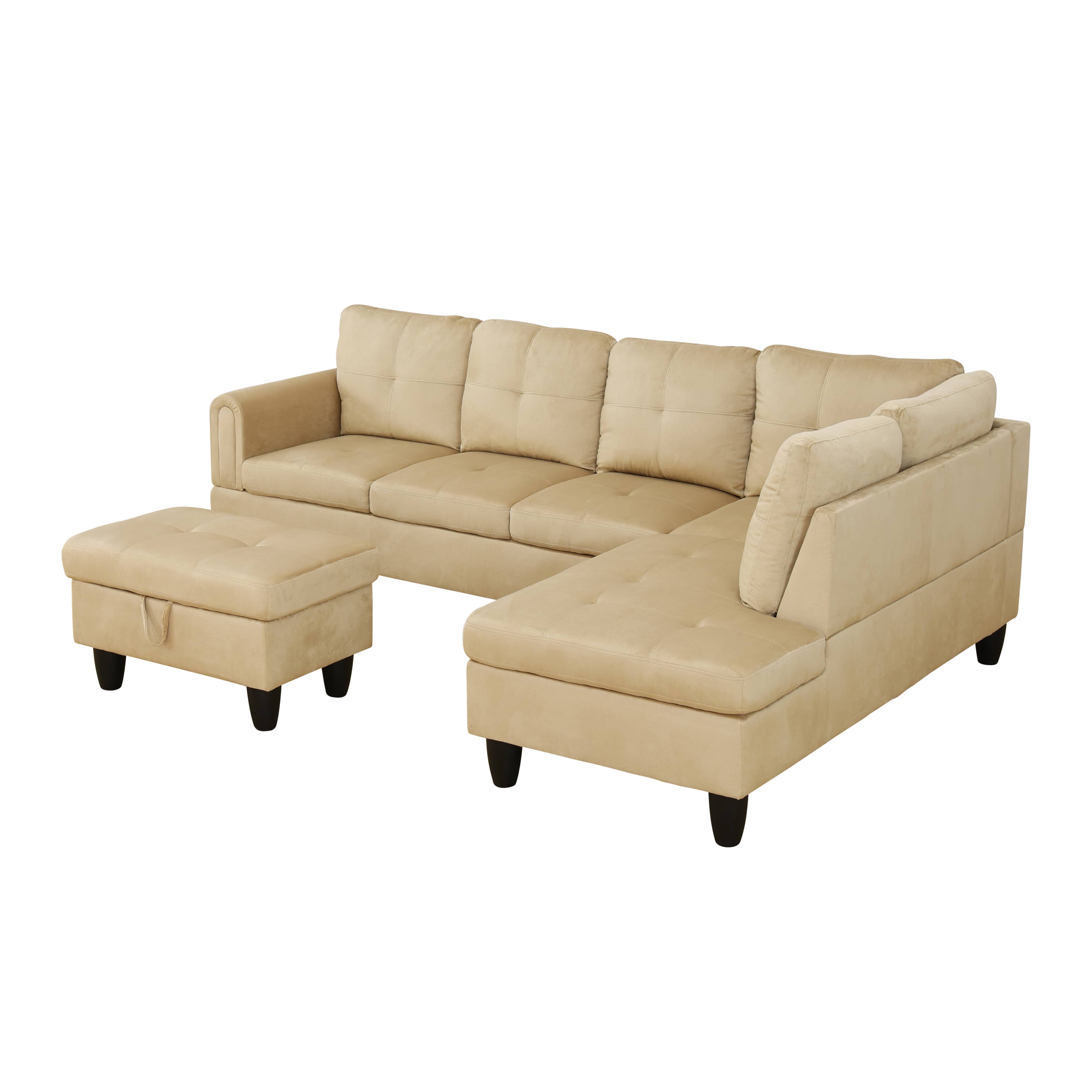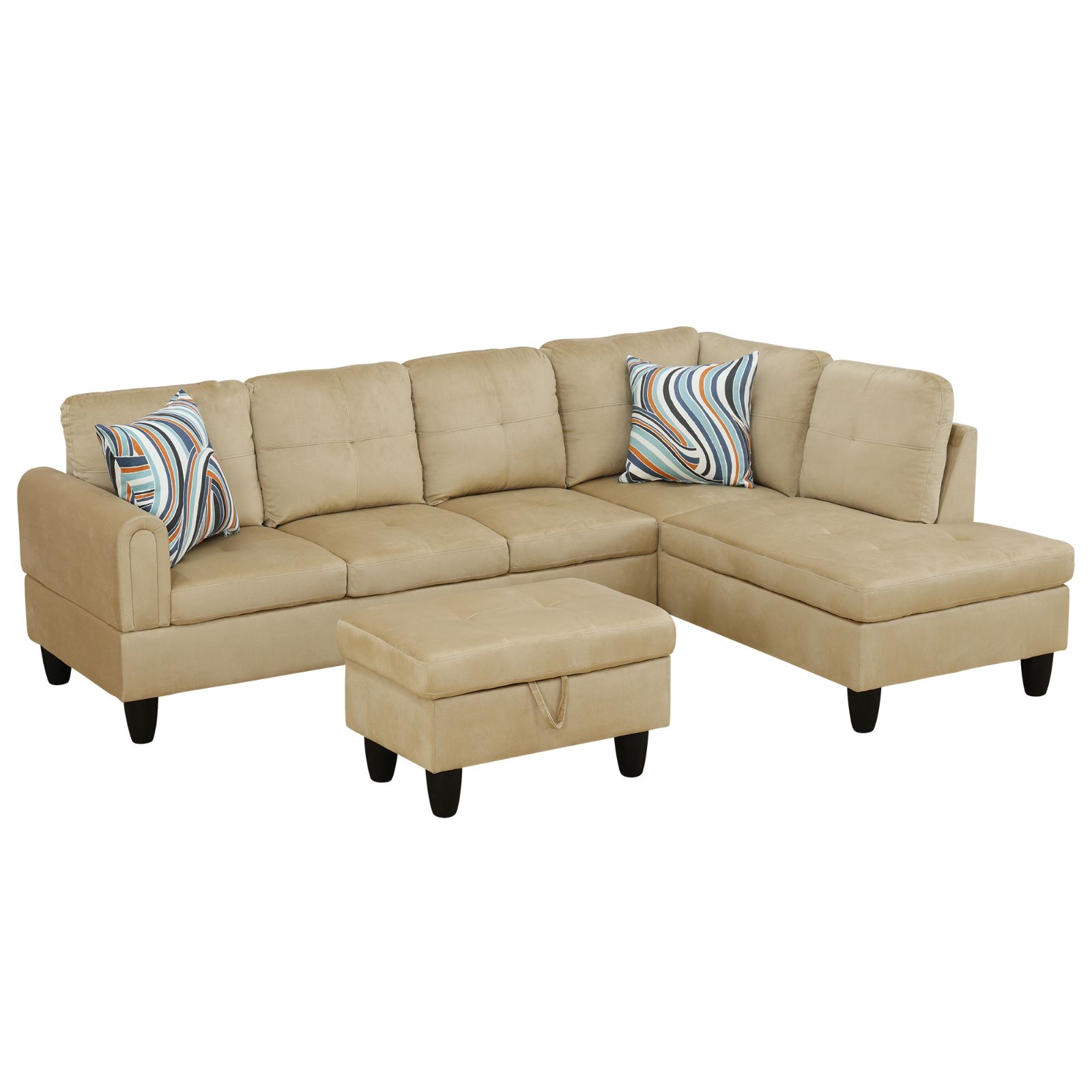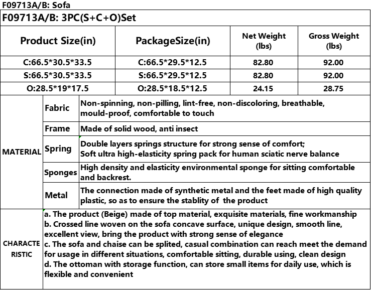 Pickup Only--Beige Flannel 3-Piece Living Room Sofa Set