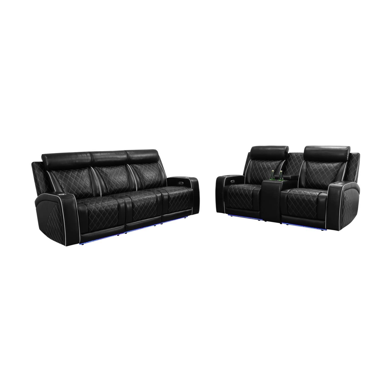 Pickup Only--Black Breathable Leather 3-Piece Living Room Functional Sofa Set