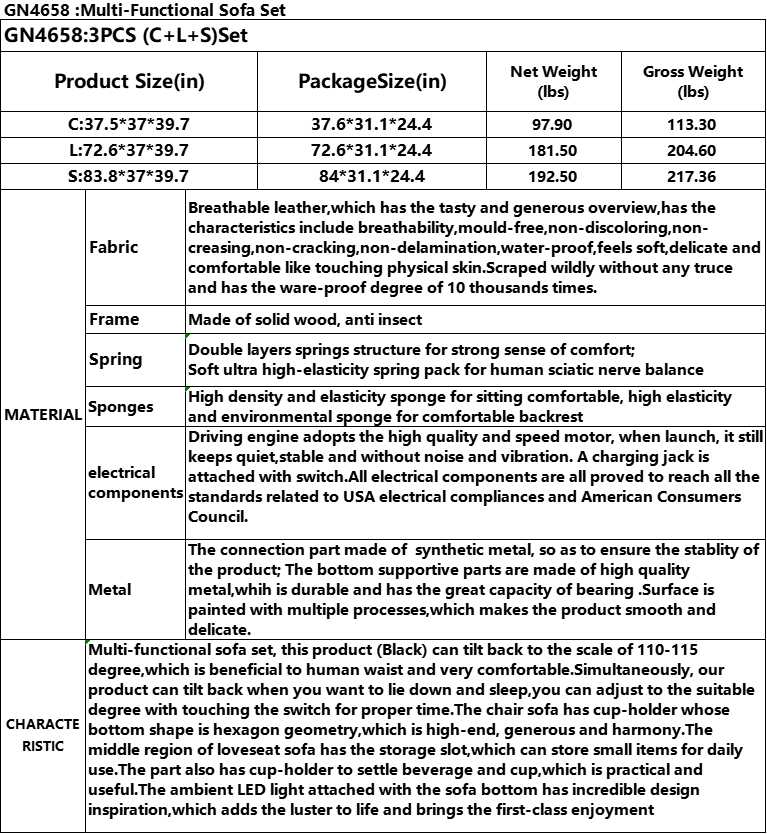 Home > Pickup Only--Black Breathable Leather 3-Piece Living Room Functional Sofa Set