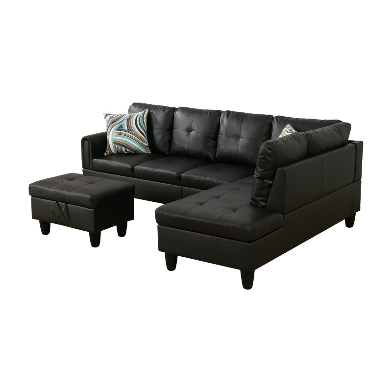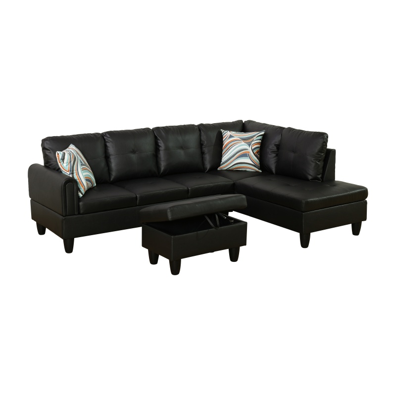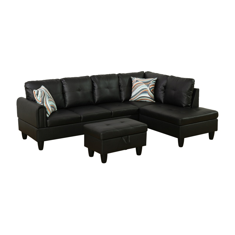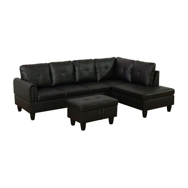 Home > Pickup Only--Black Faux Leather 3-Piece Living Room Sofa Set