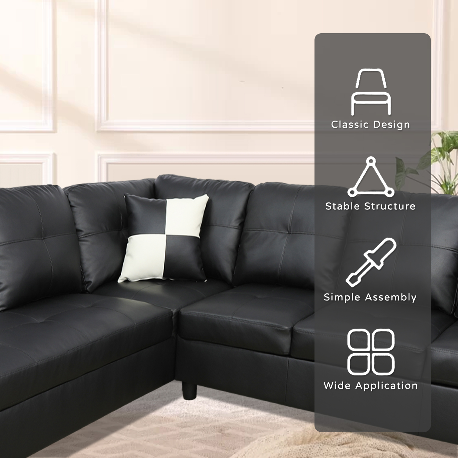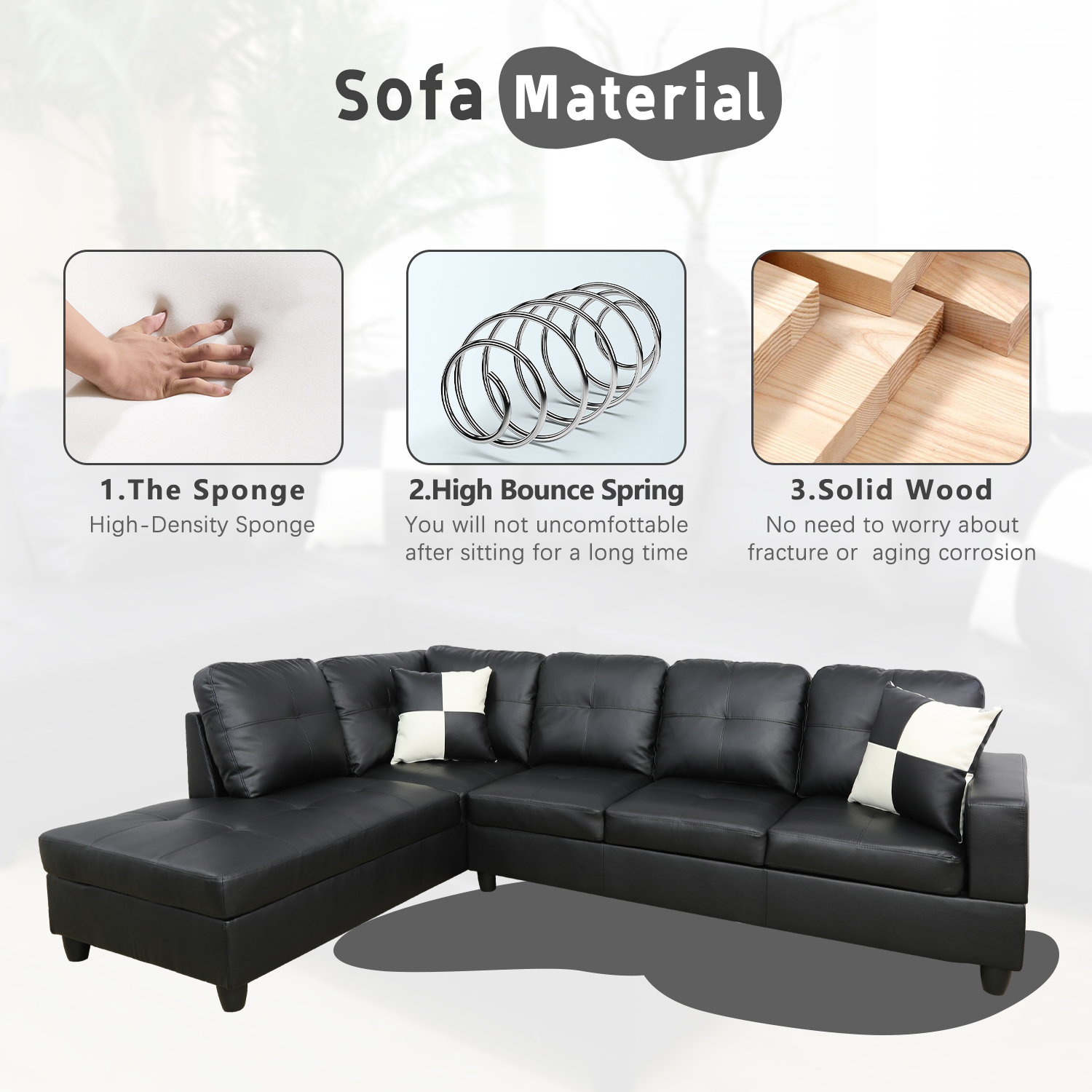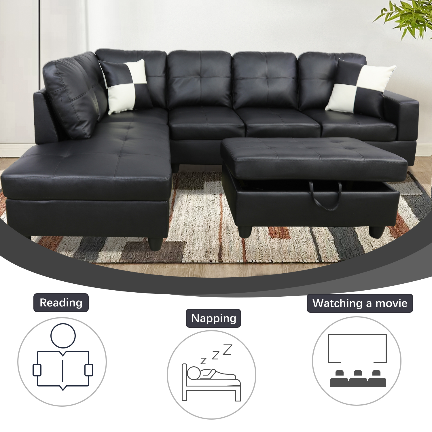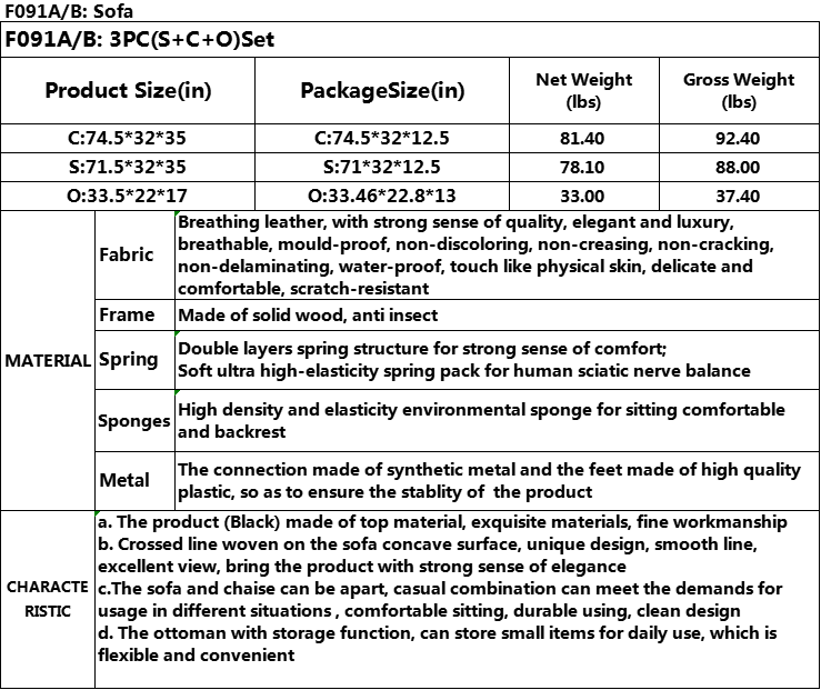 Pickup Only Black Faux Leather 3-Piece Sofa Living Room Sofa Set