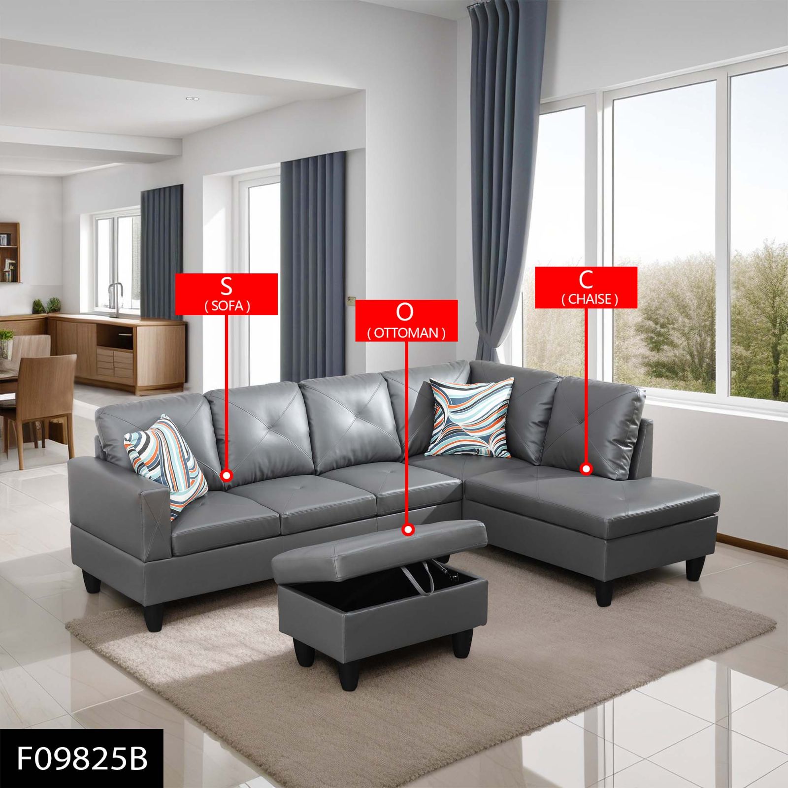 b. The sofa and chaise can be splited, free combination can meet the demand for usage in different situations, comfortable sitting, durable using, clean design