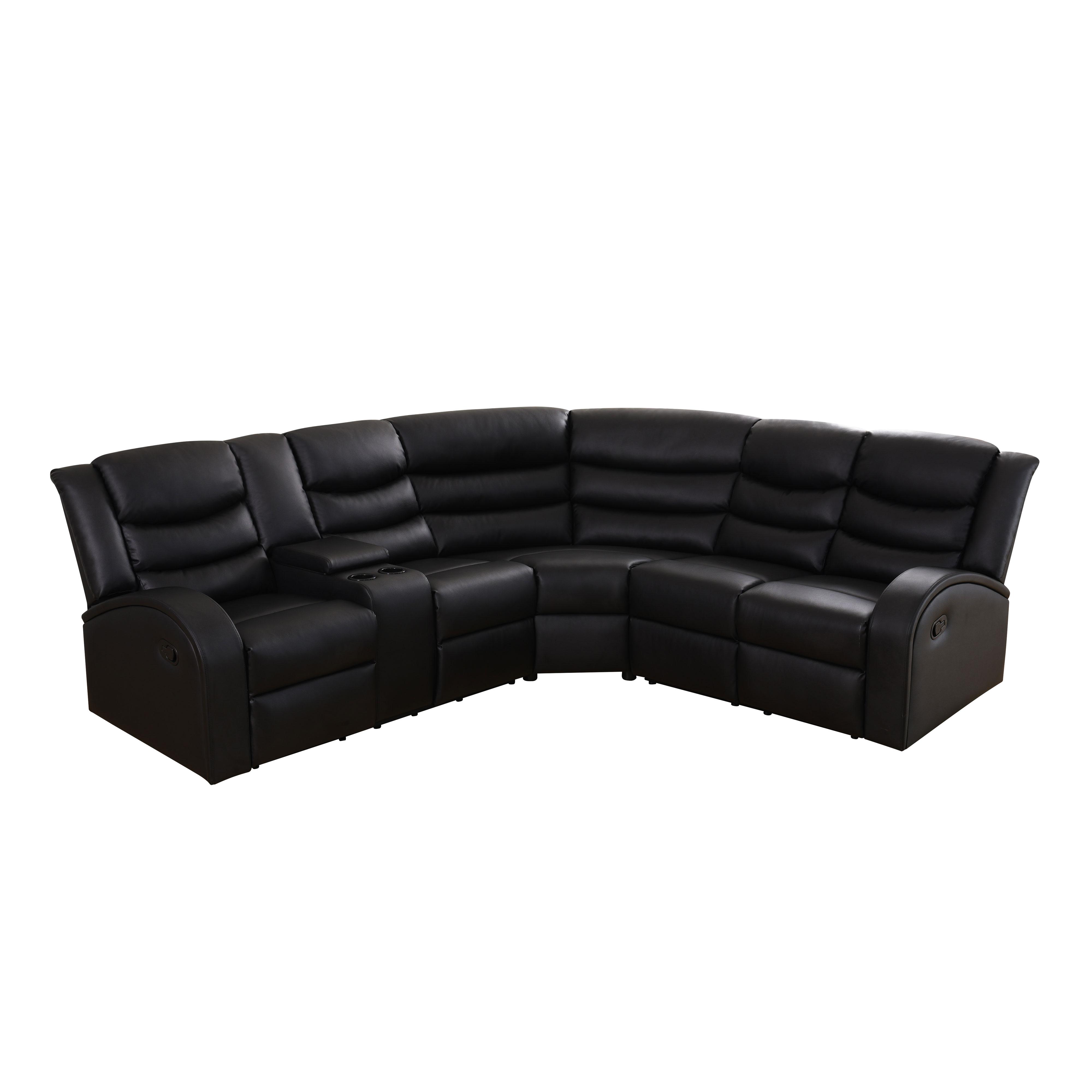 Pickup Only--Black Semi PU Breathable Leather Living Room Recliner Intelligent 3-Piece Sofa Set