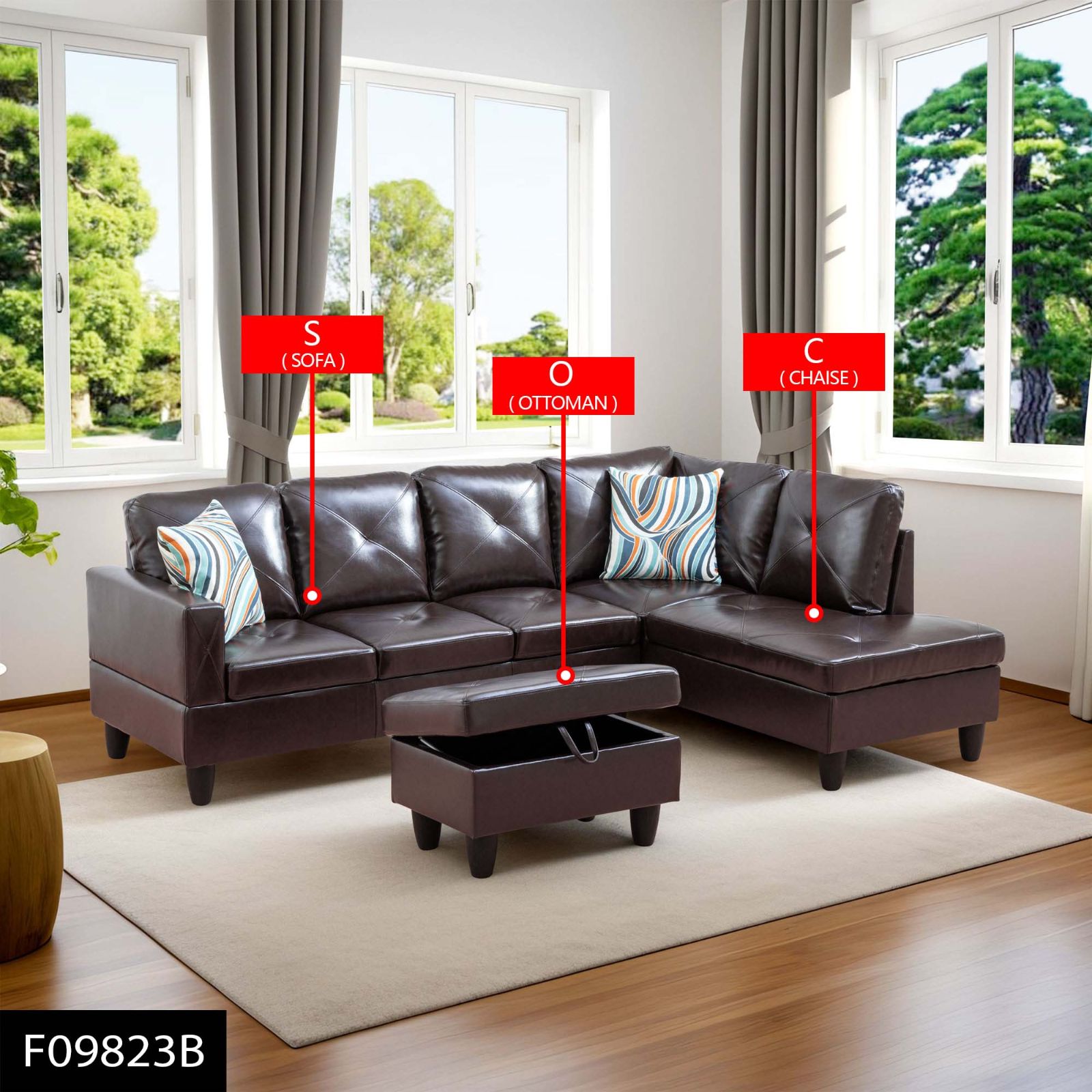 b. The sofa and chaise can be splited, free combination can meet the demand for usage in different situations, comfortable sitting, durable using, clean design