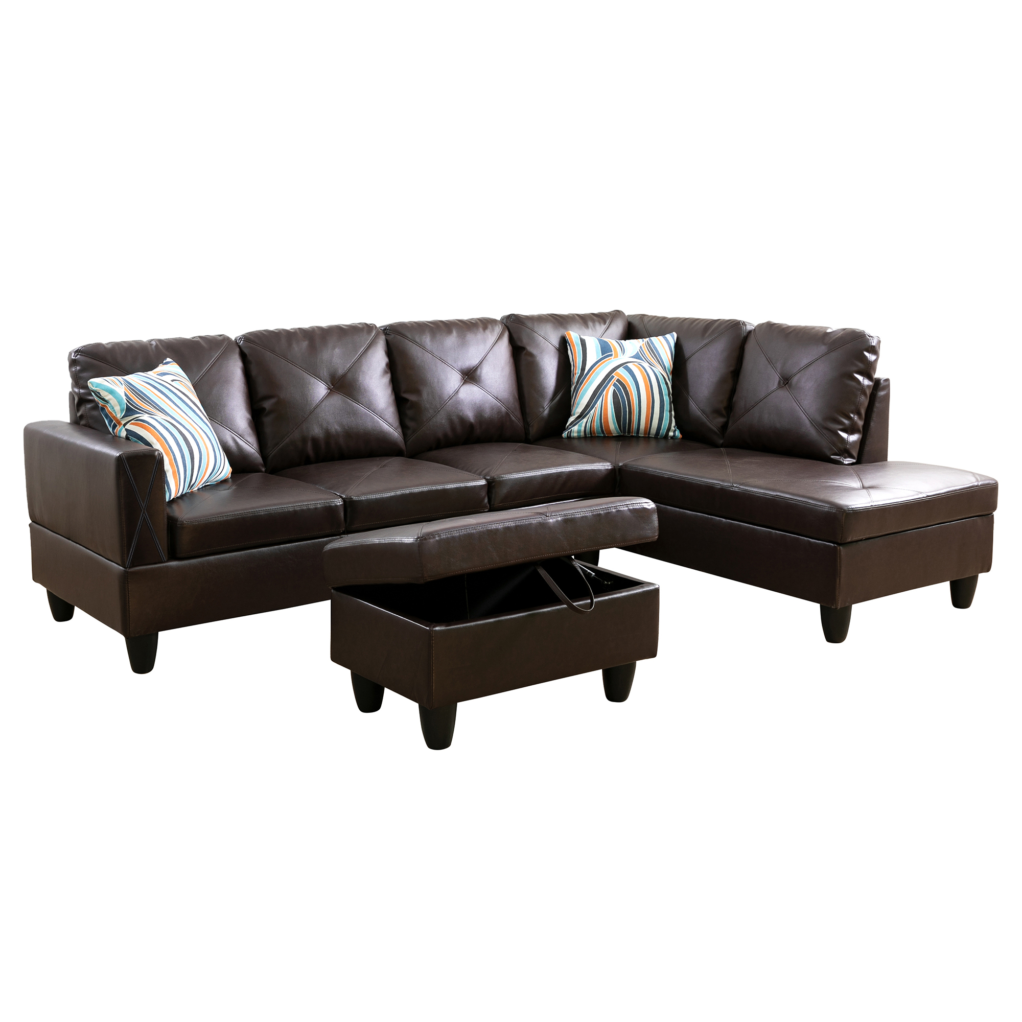 Home > Pickup Only--Brown Faux Leather 3-Piece Couch Living Room Sofa Set