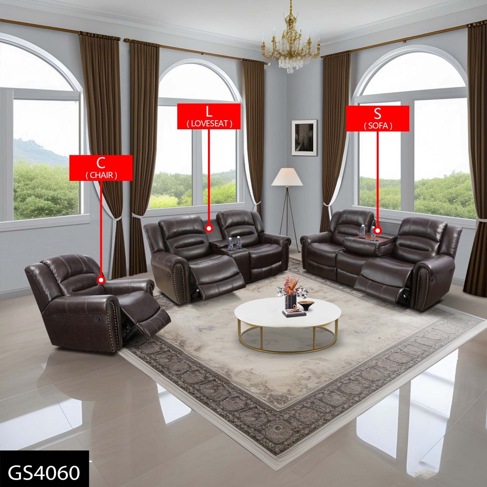 Pickup Only--Brown Semi PU Synthetic Leather 3-Piece Couch Recliner Sofa Set