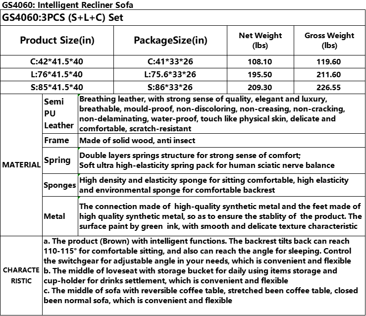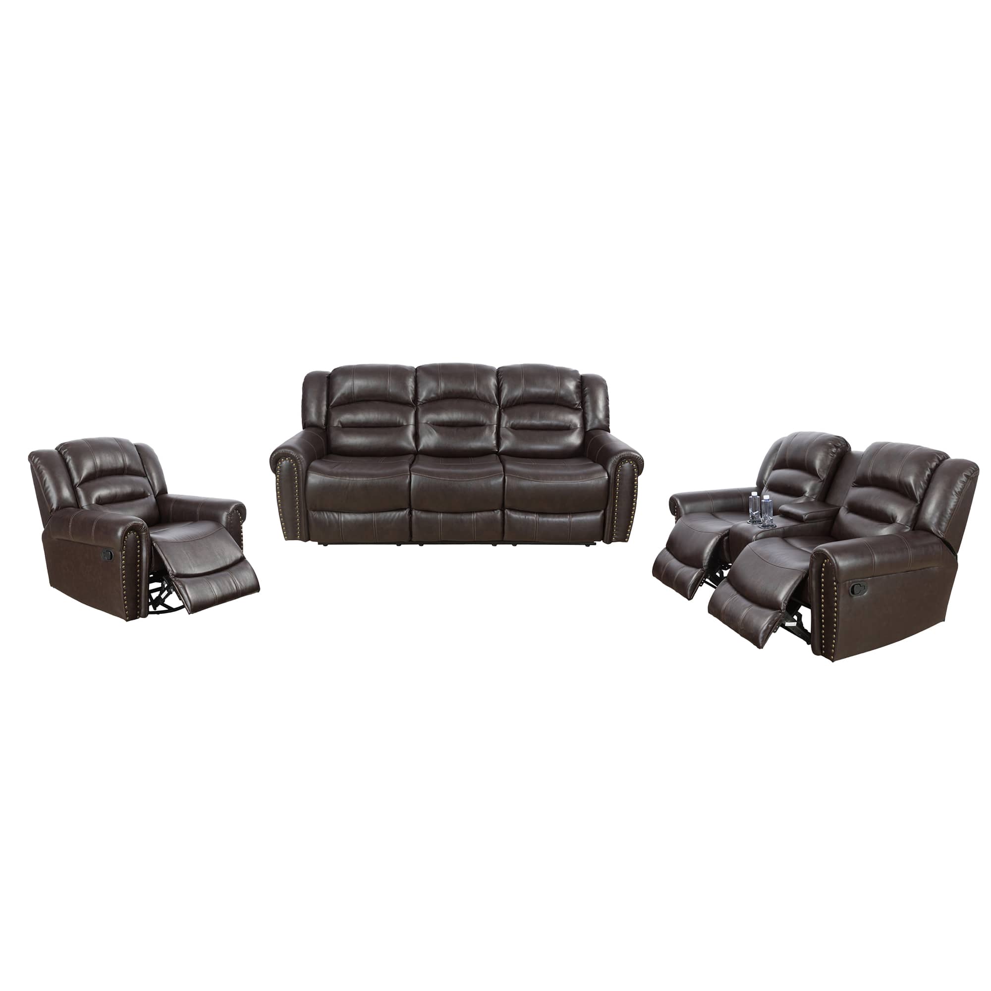 Home > Pickup Only--Brown Semi PU Synthetic Leather 3-Piece Couch Recliner Sofa Set