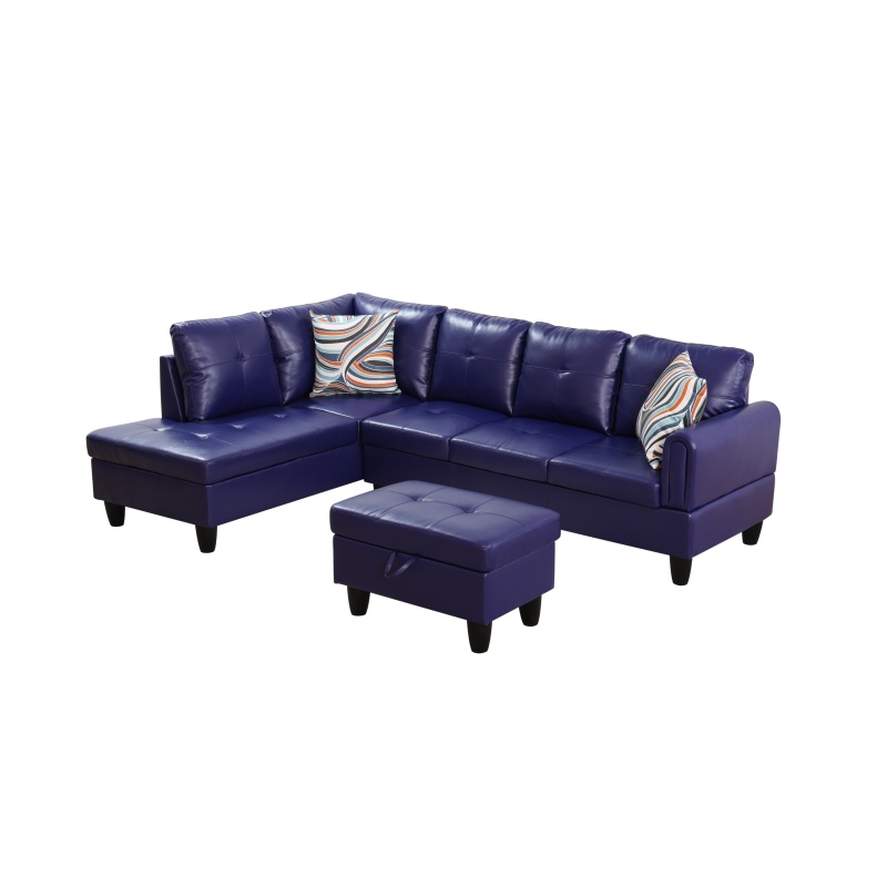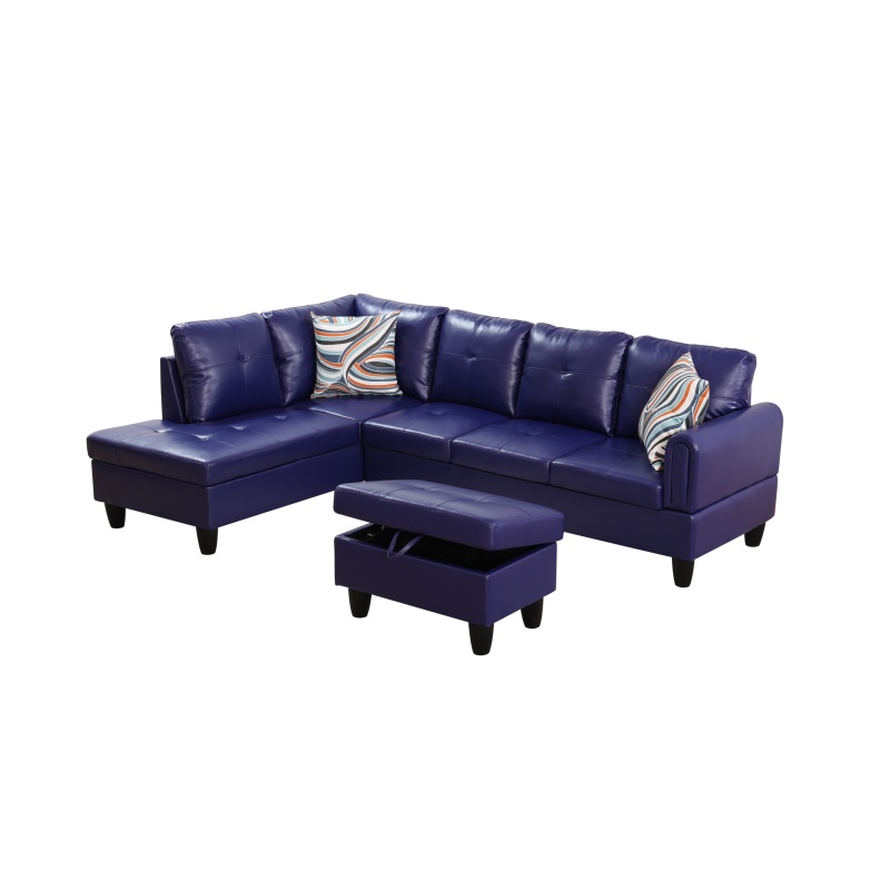 Home > Pickup Only--Dark Blue-Violet Faux Leather 3-Piece Living Room Sofa Set