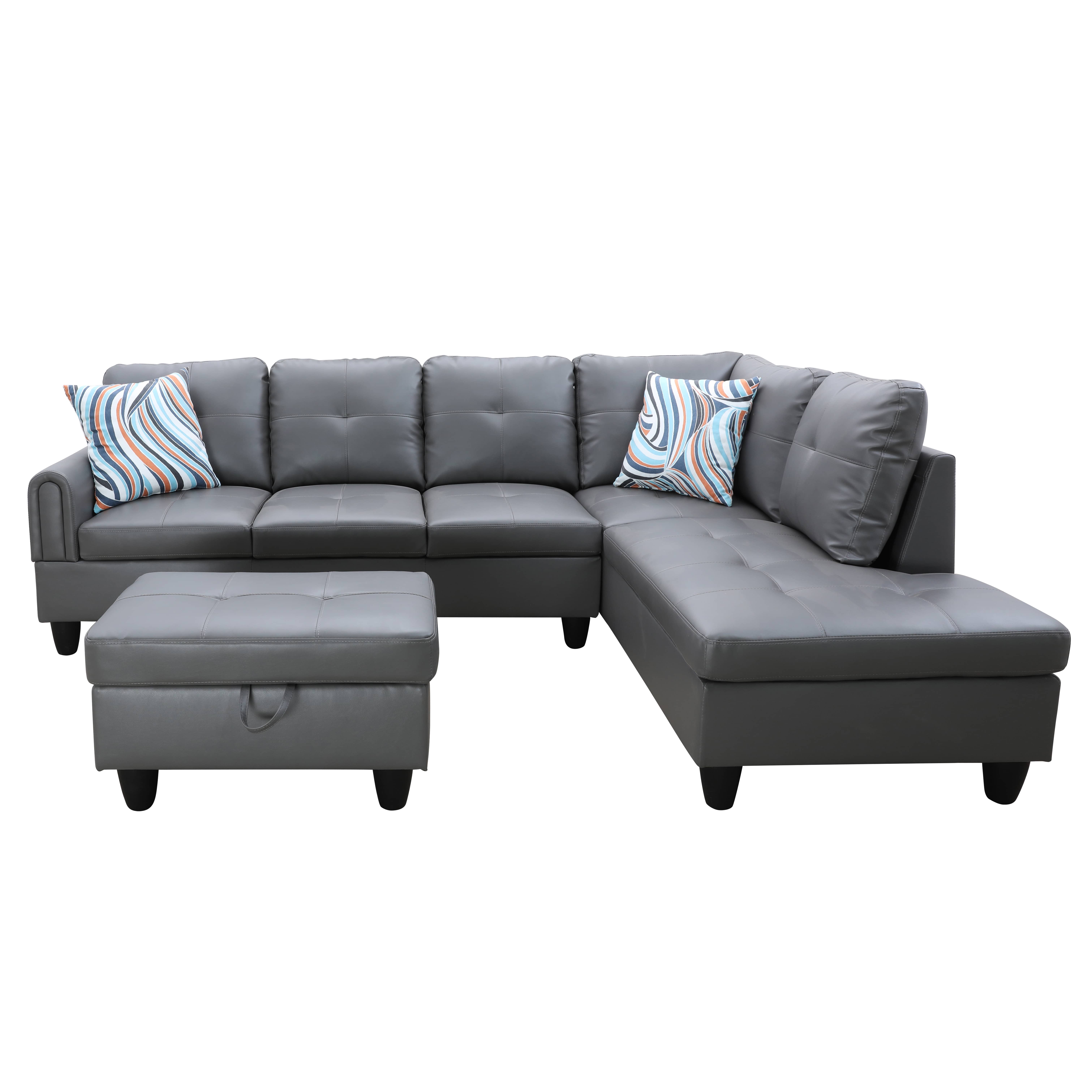 Pickup Only--Dark Grey Faux Leather 3-Piece Living Room Sofa Set