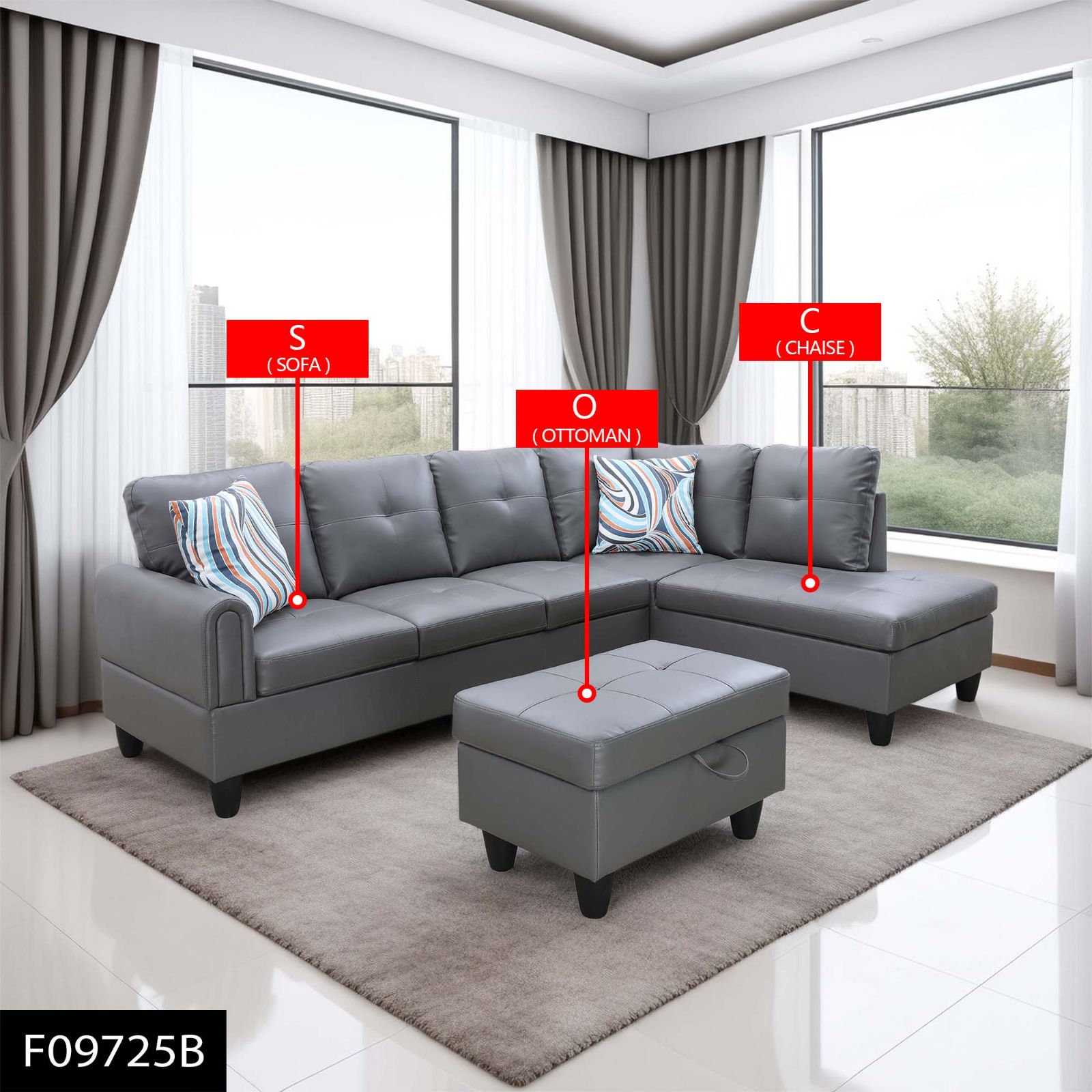 c. The sofa and chaise can be splited, casual combination can reach meet the demand for usage in different situations, comfortable sitting, durable using, clean design