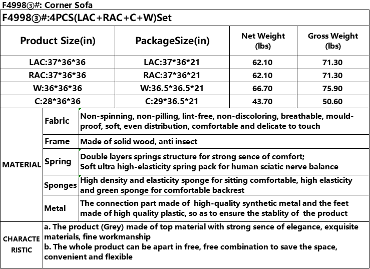 Home > Pickup Only-Grey Pineapple Fabric 4-Piece Living Room Sofa Set
