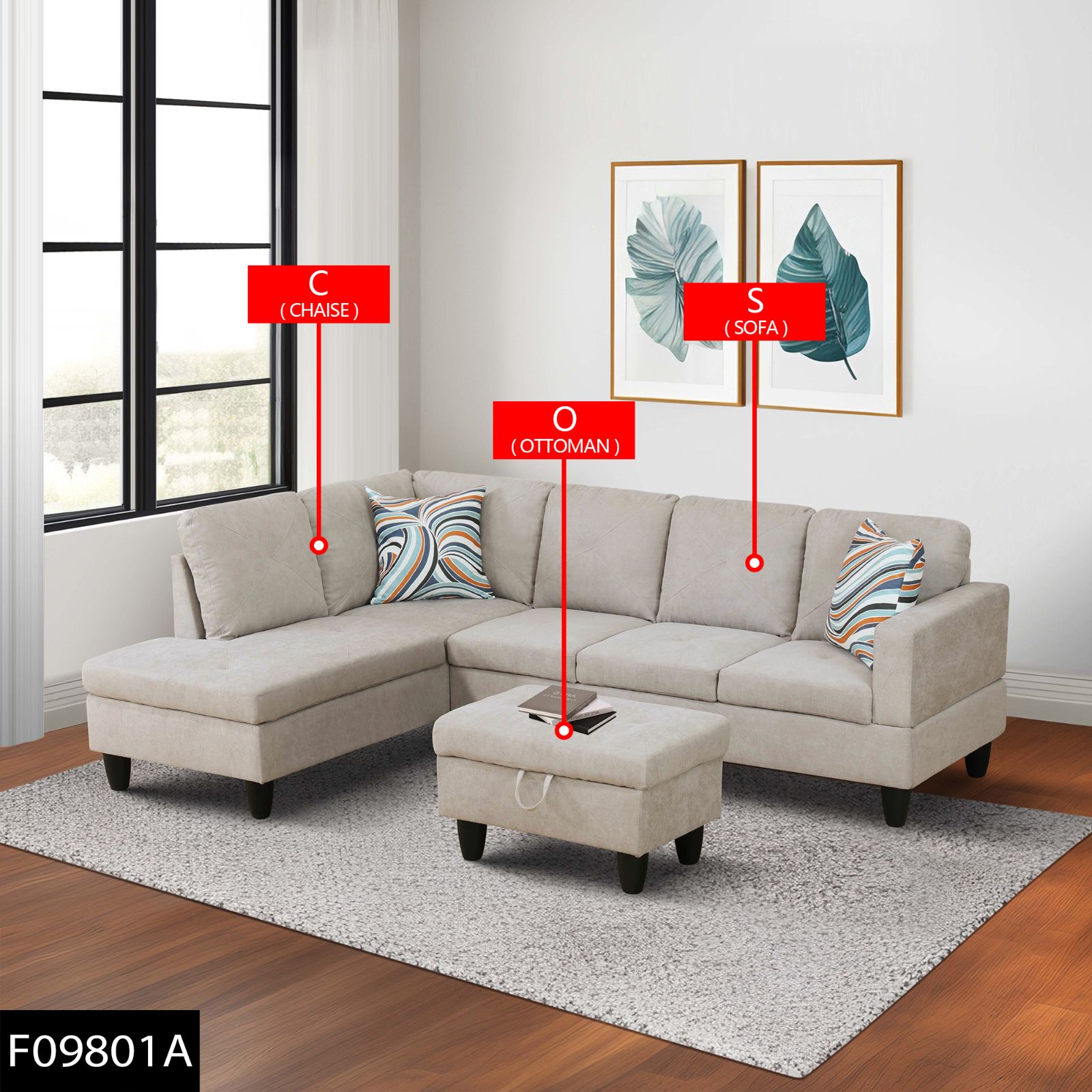 Pickup Only--Off-White Flannelette 3-Piece Living Room Sofa Set