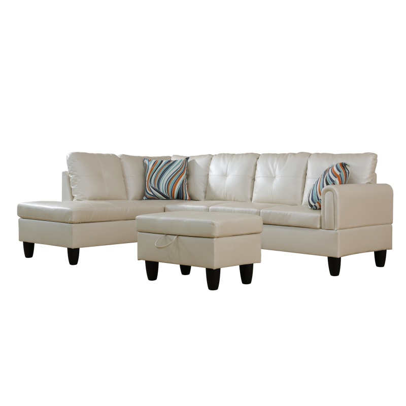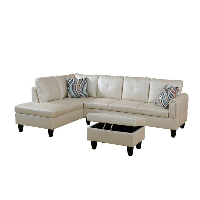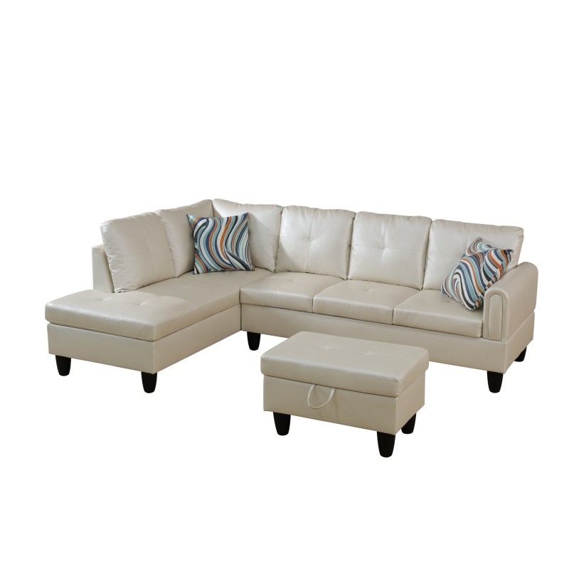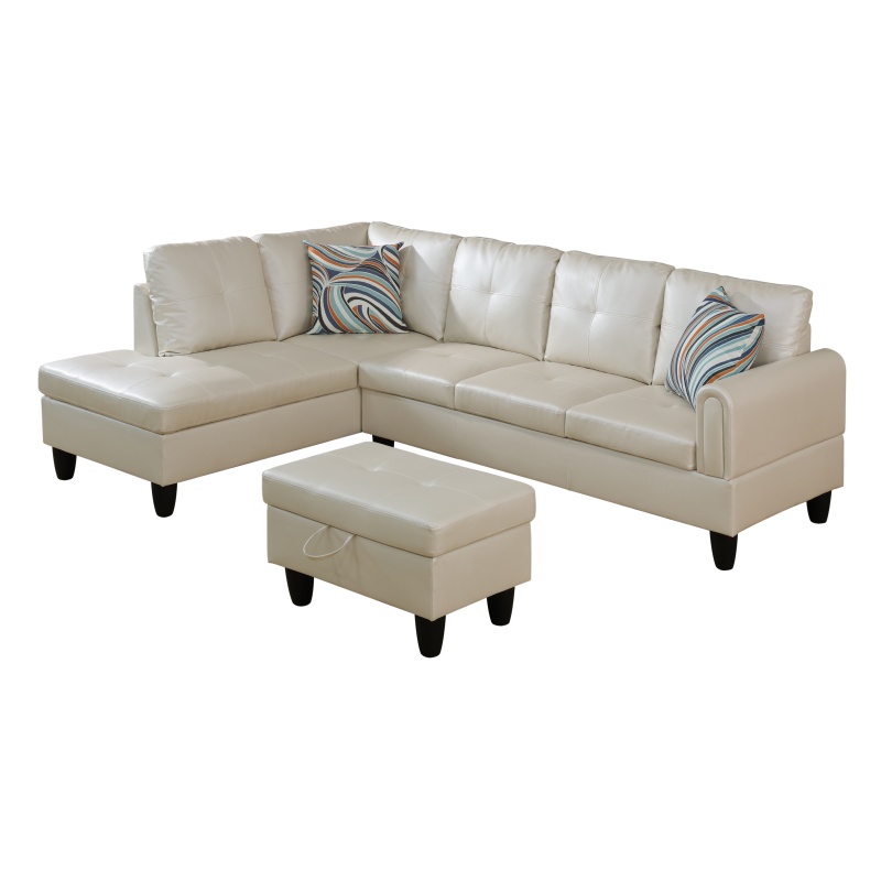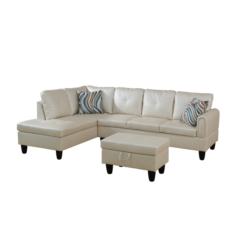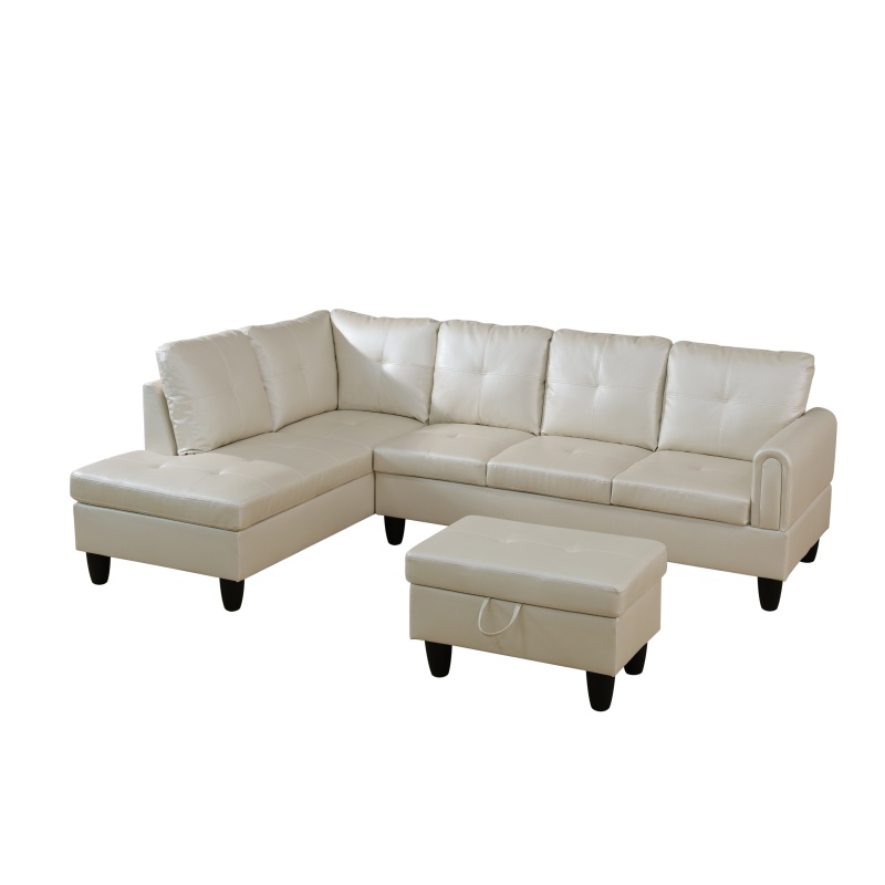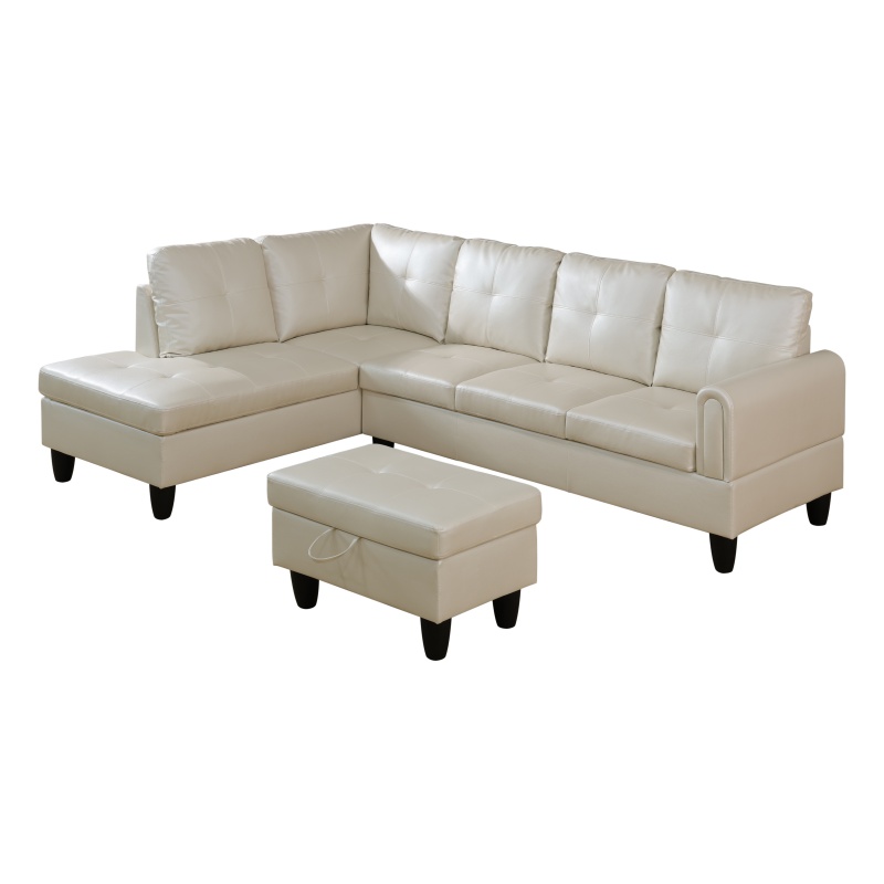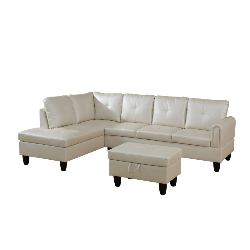Home > Pickup Only--Pearl White Faux Leather 3-Piece Living Room Sofa Set