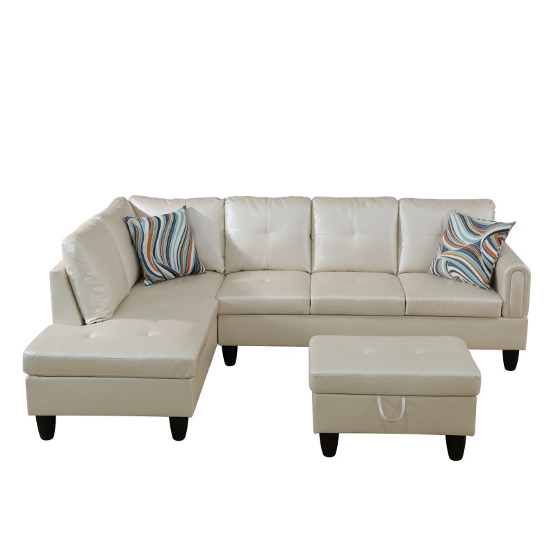Pickup Only--Pearl White Faux Leather 3-Piece Living Room Sofa Set