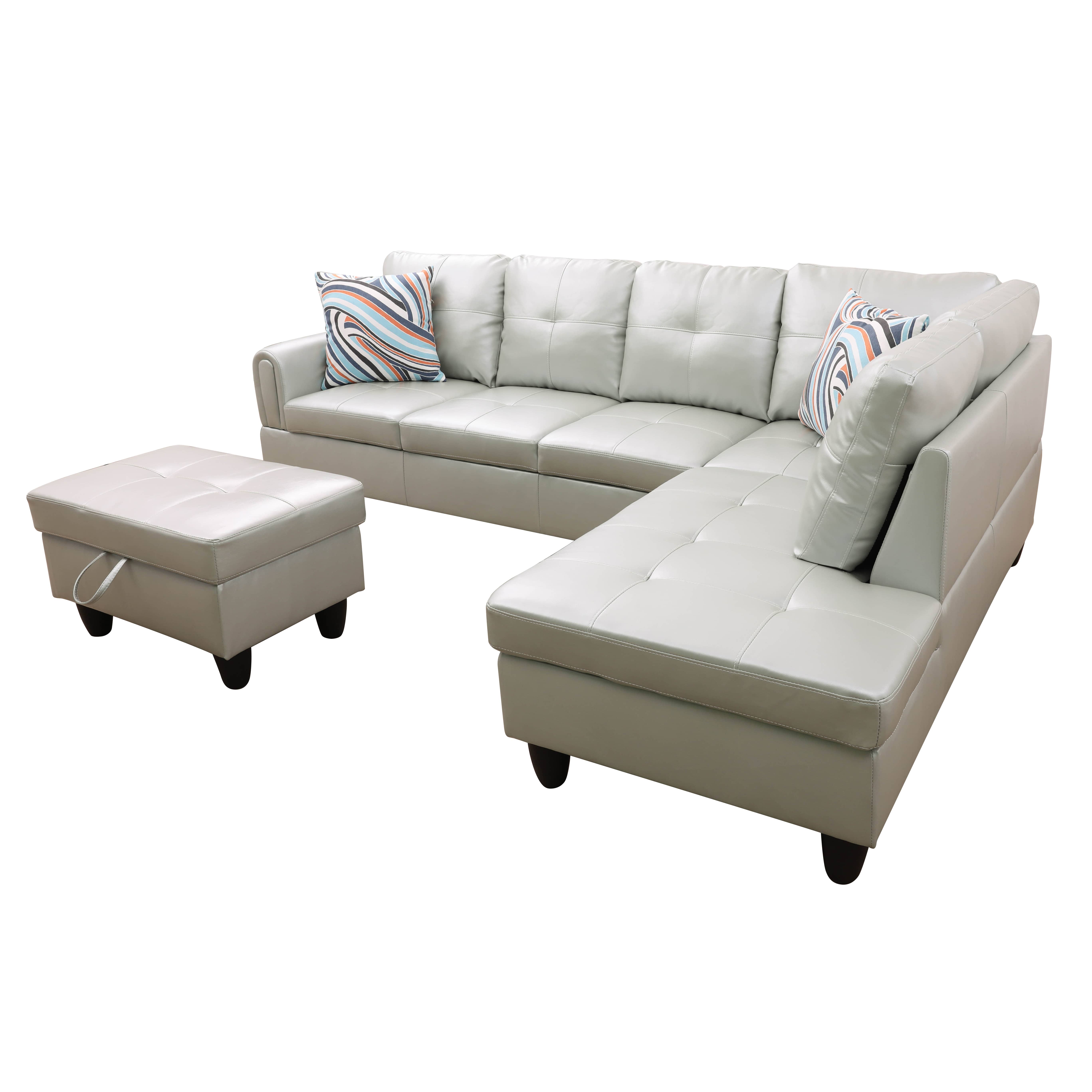 Home > Pickup Only--Silver Green Faux Leather 3-Piece Living Room Sofa Set