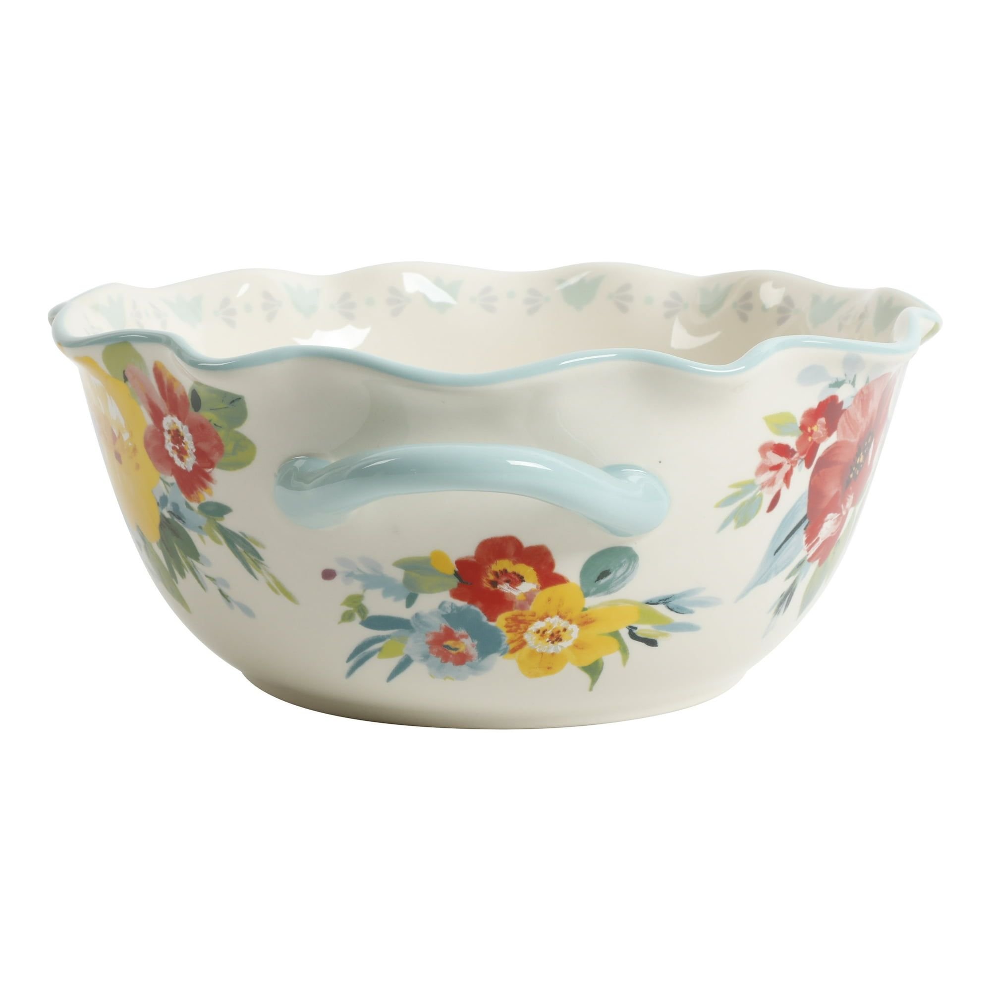 Sweet Romance Blossom Ceramic 9.9-inch Serving Bowl with Handles